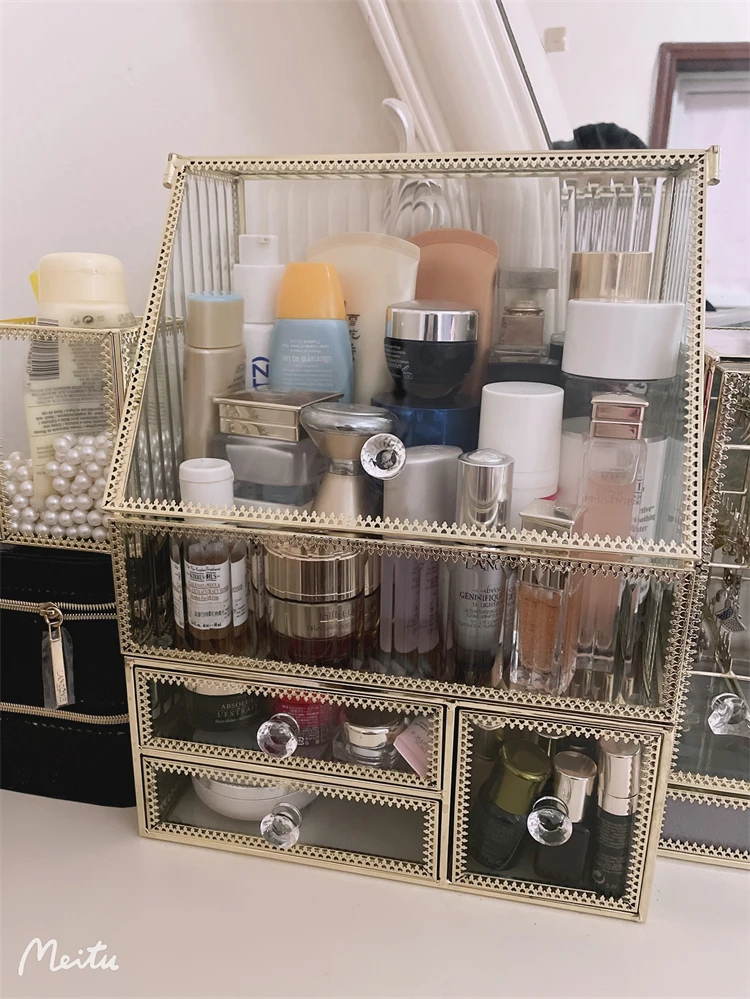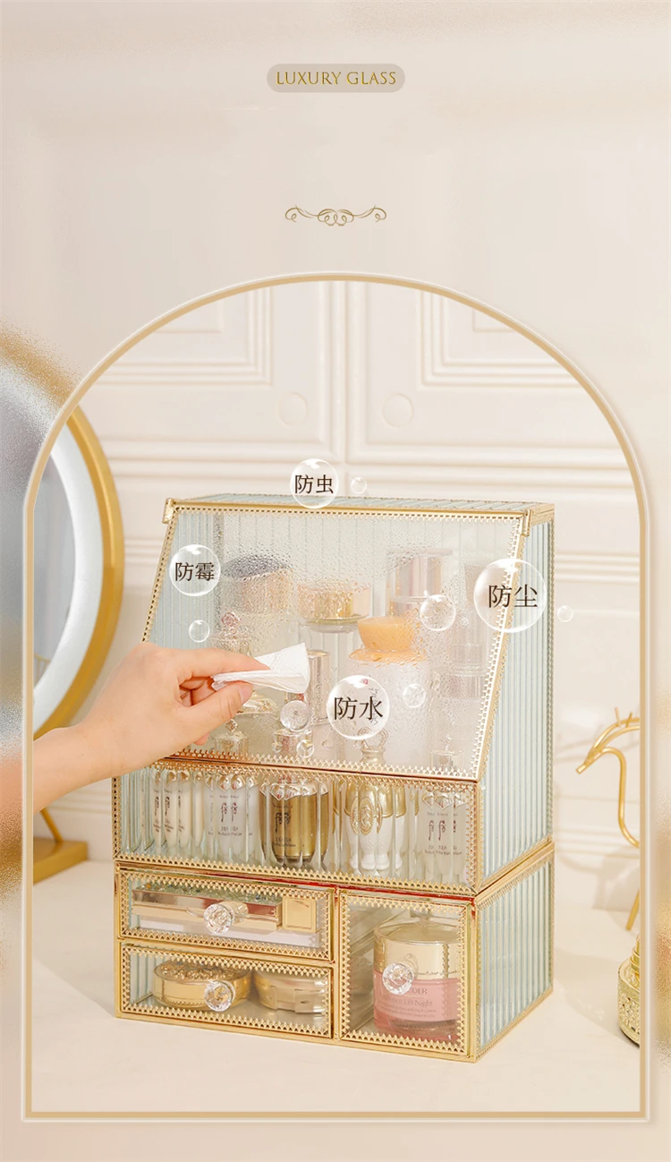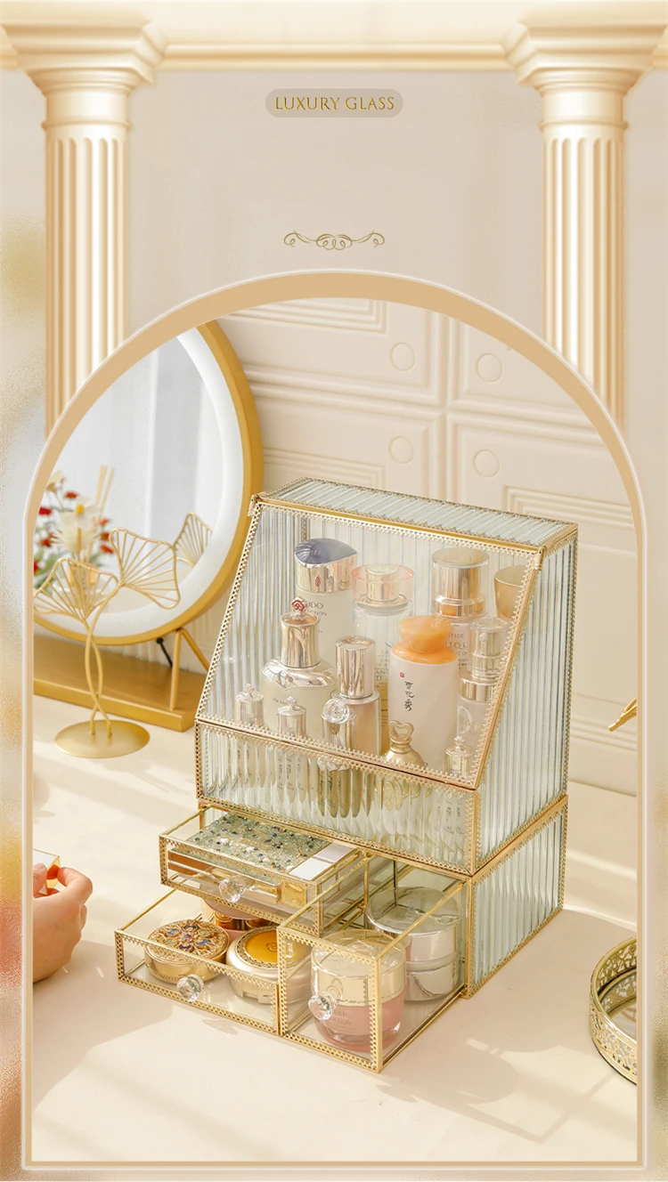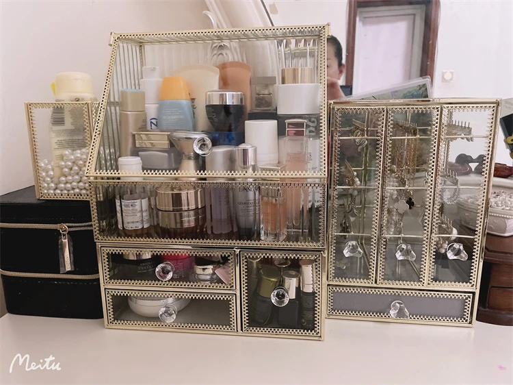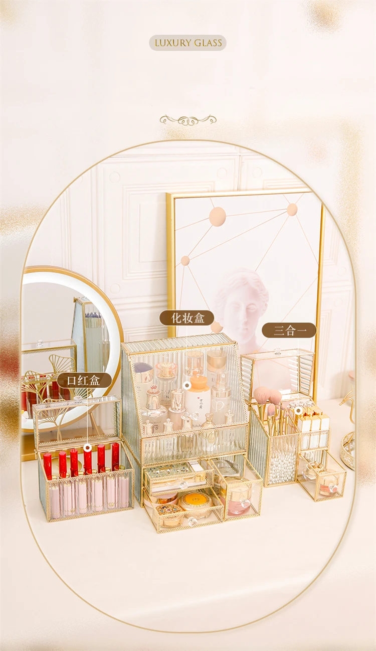 Women Wedding Anniversary Necklace Storage Box Dustproof Lipstick Jewellery Organizer Desktop Cosmetic Drawer Display Shelves f