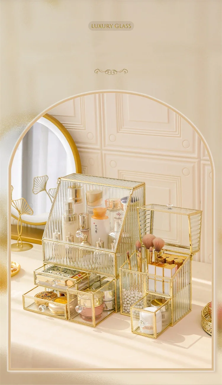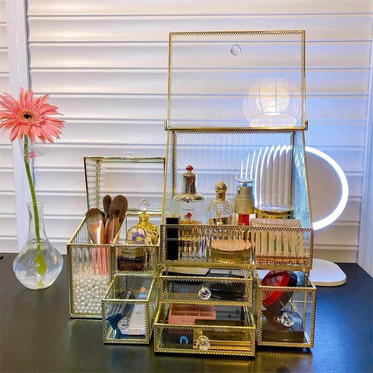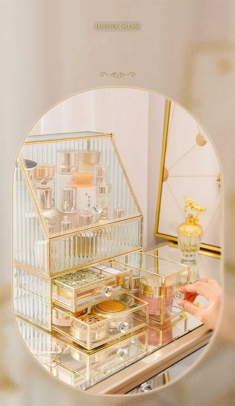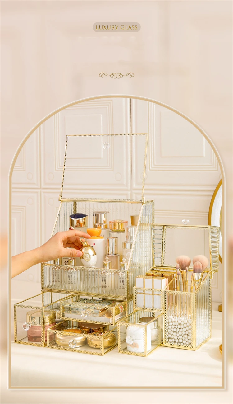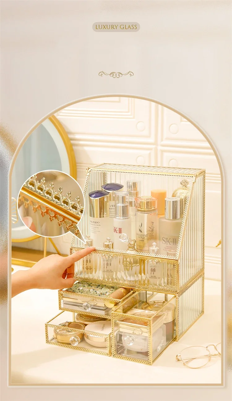 Women Wedding Anniversary Necklace Storage Box Dustproof Lipstick Jewellery Organizer Desktop Cosmetic Drawer Display Shelves f