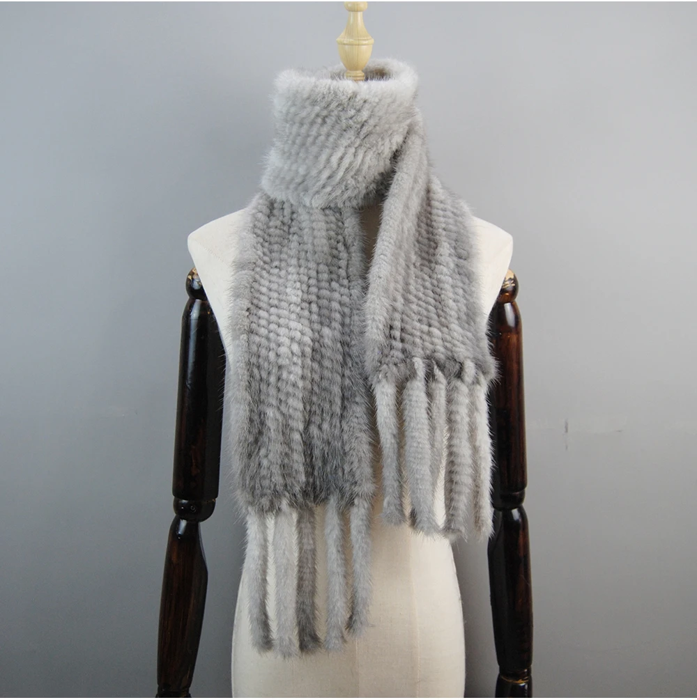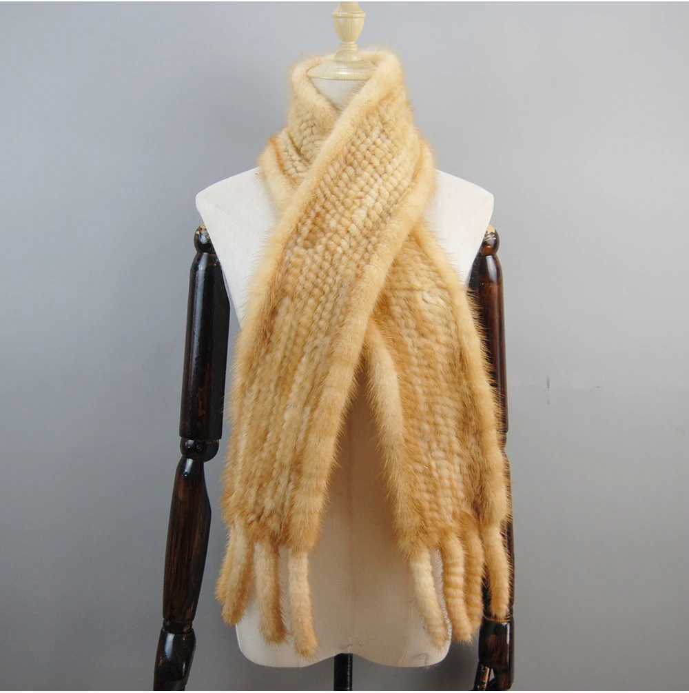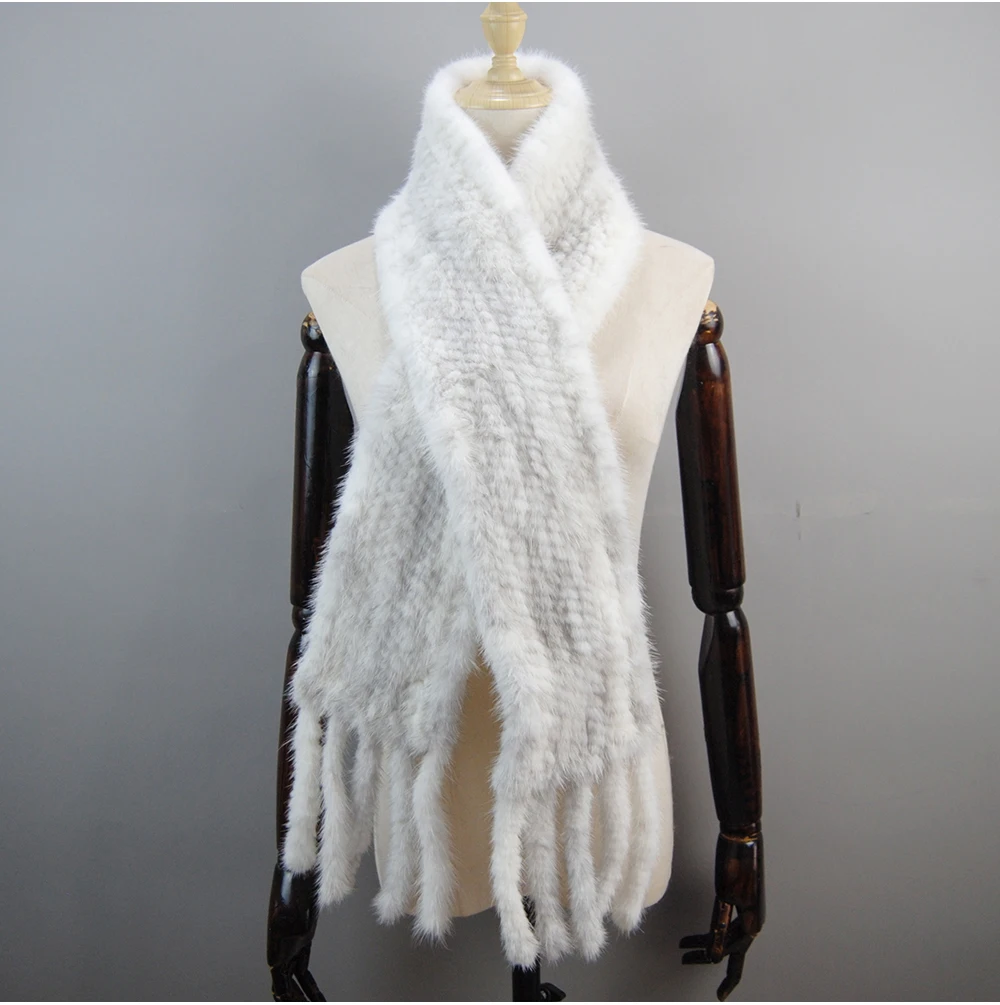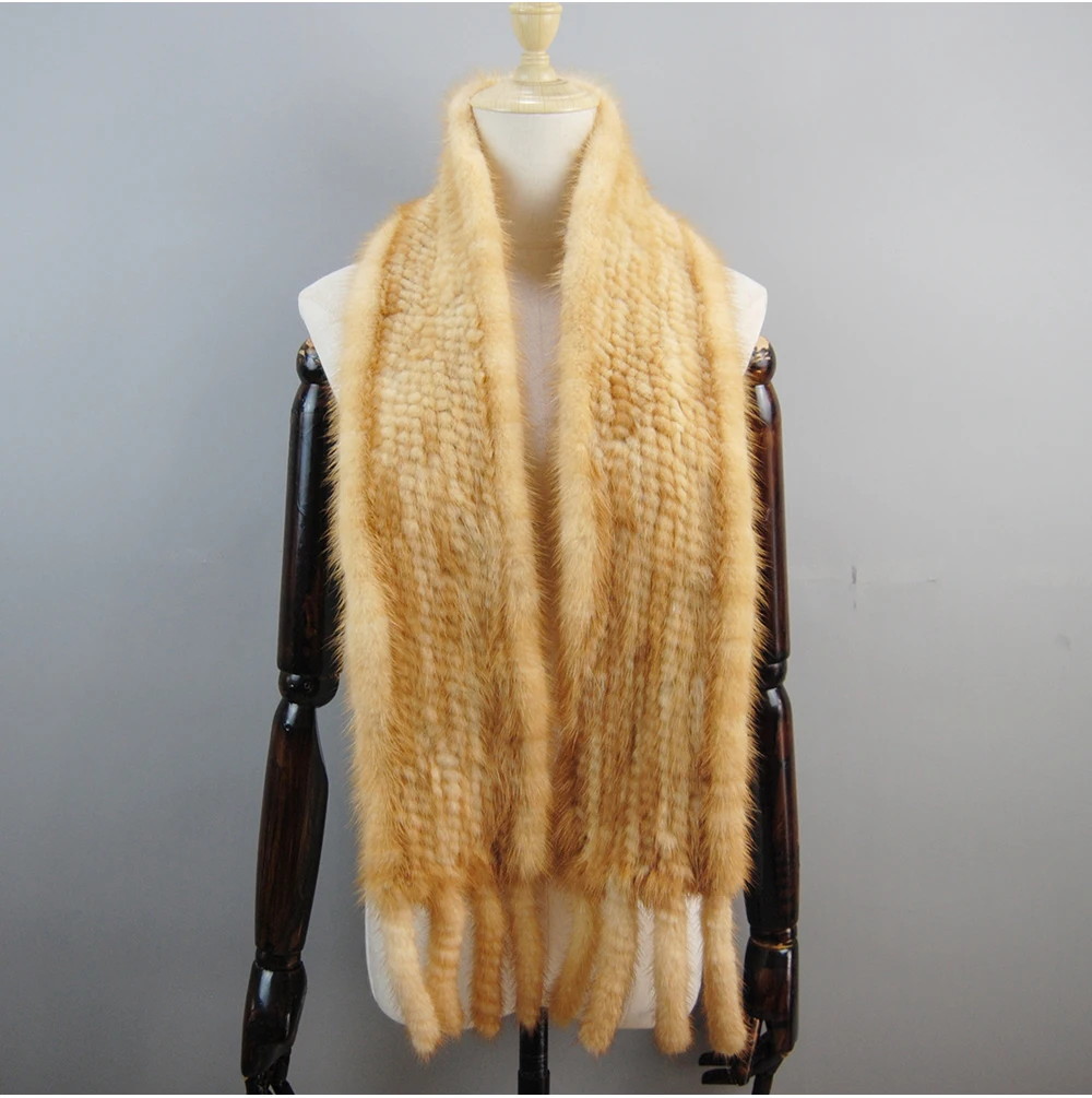 Women Winter Warm Real Mink Fur Scarf 100% Genuine Real Mink Fur Muffler Lady Fashion Quality Natural Real Mink Fur Knit Scarves
