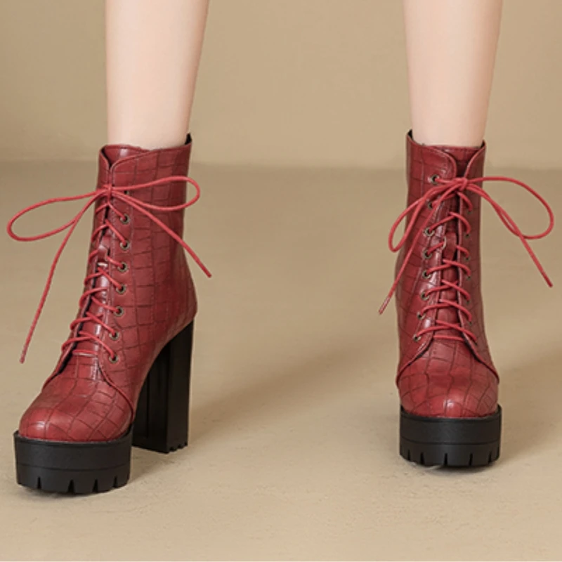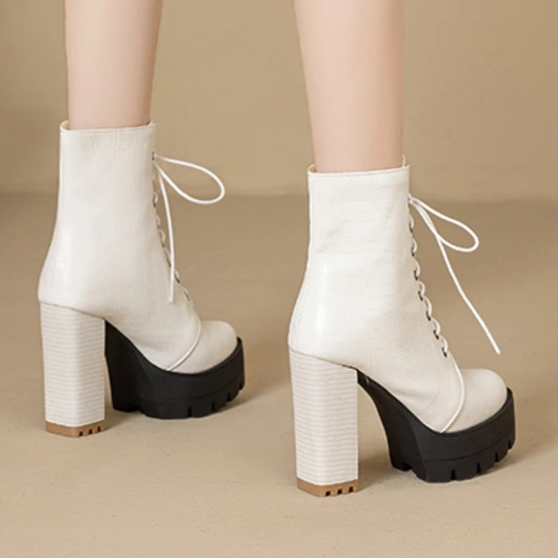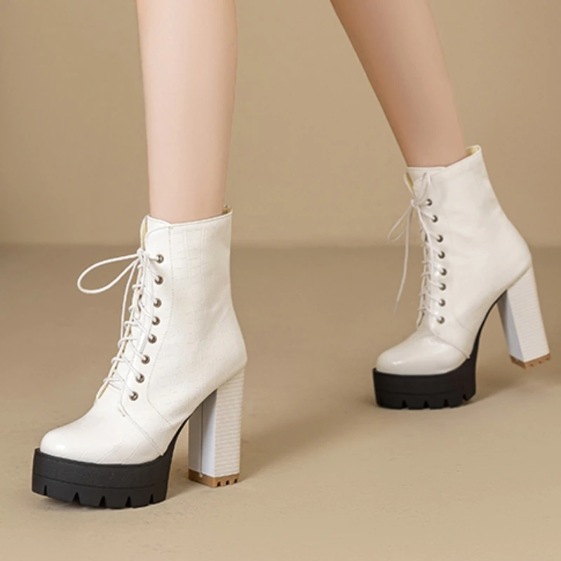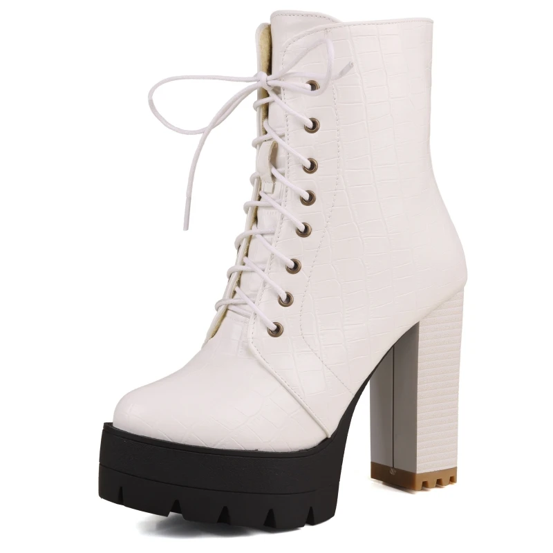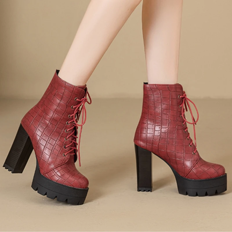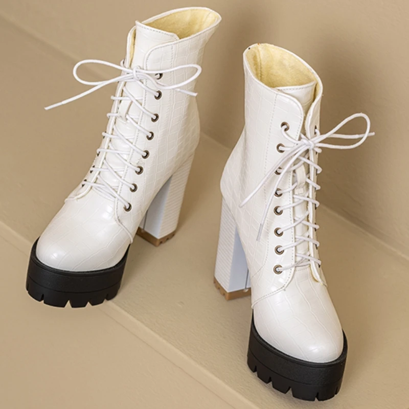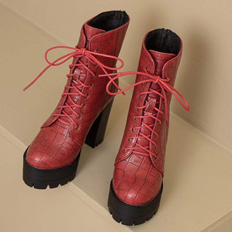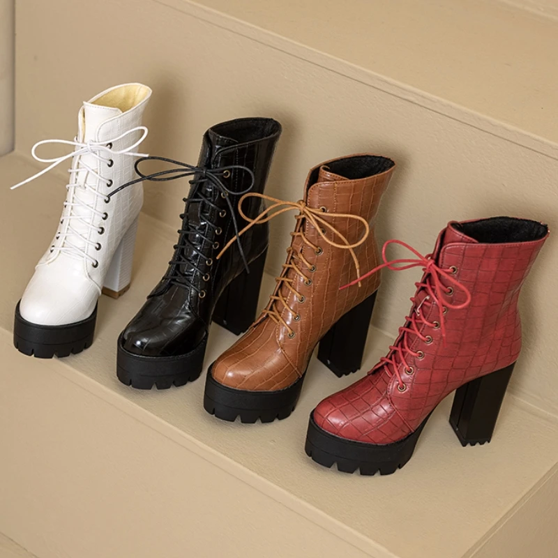 Women's Ankle Boots Platform Winter High Heels Gothic Short Boot For Women Red Black White Party Shoes Female Large Size Fashion