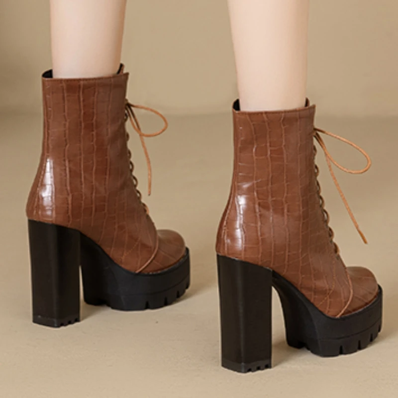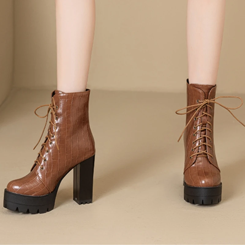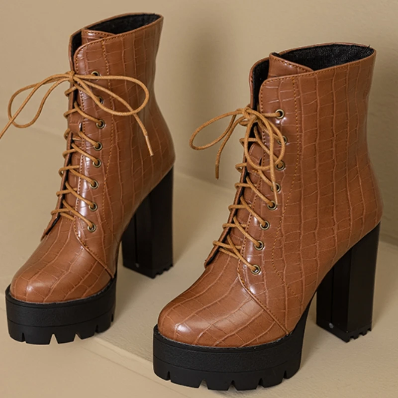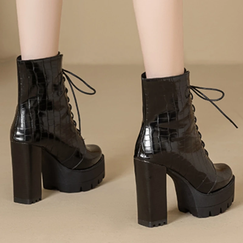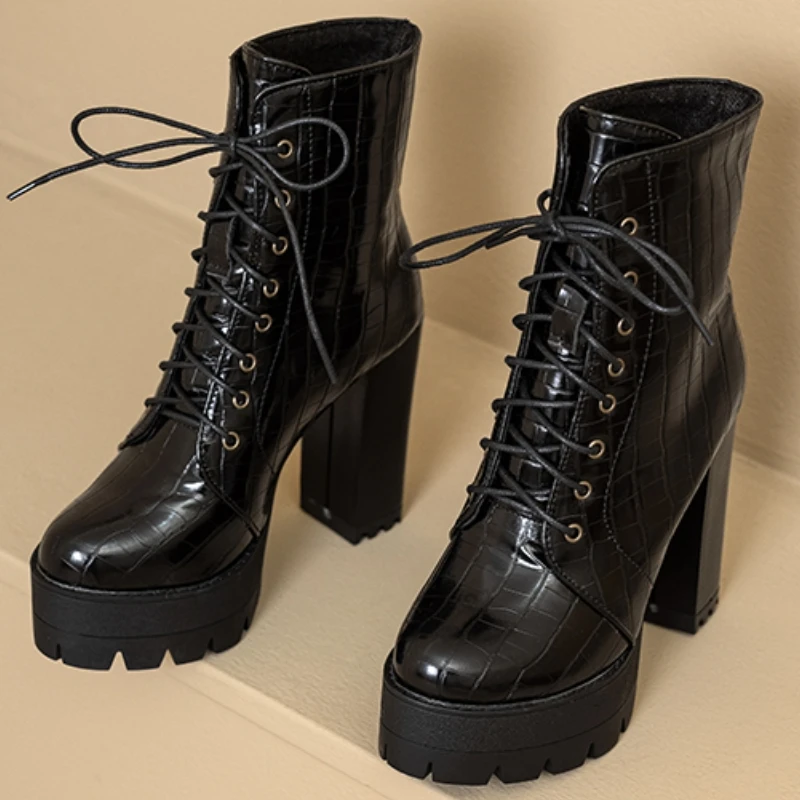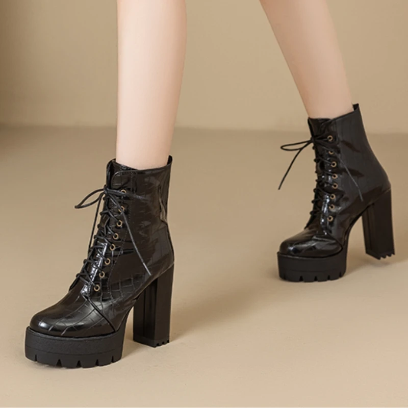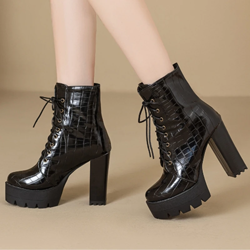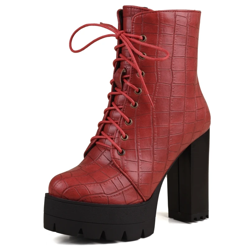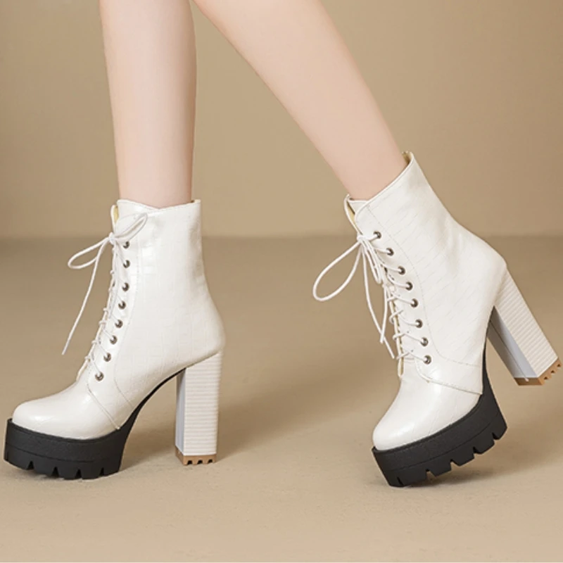 Women's Ankle Boots Platform Winter High Heels Gothic Short Boot For Women Red Black White Party Shoes Female Large Size Fashion