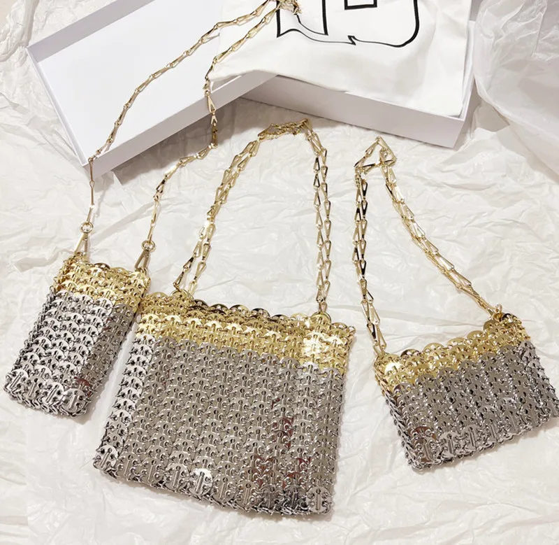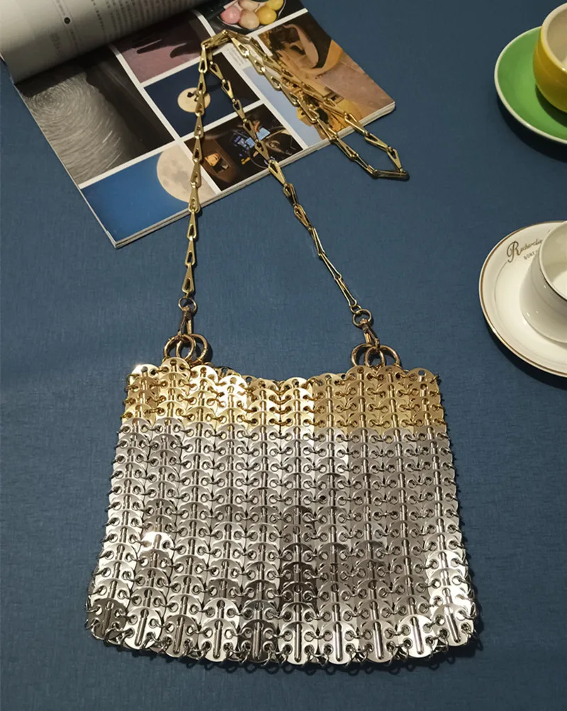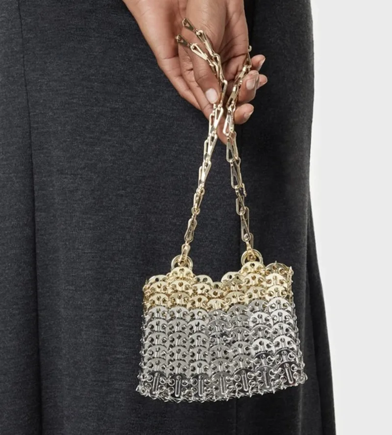 Women's Bag Designer Handbag Aesthetic Bags Hand Woven Metal Gold Silver Splicing Clutch Luxury Holiday Shoulder Bag Tote Bag