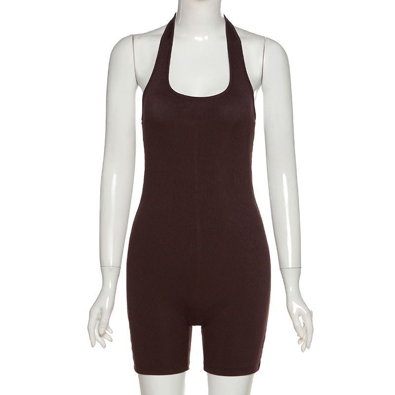 Women's Clothing slim women's clothing solid color backless halter neck leisure sports jumpsuit