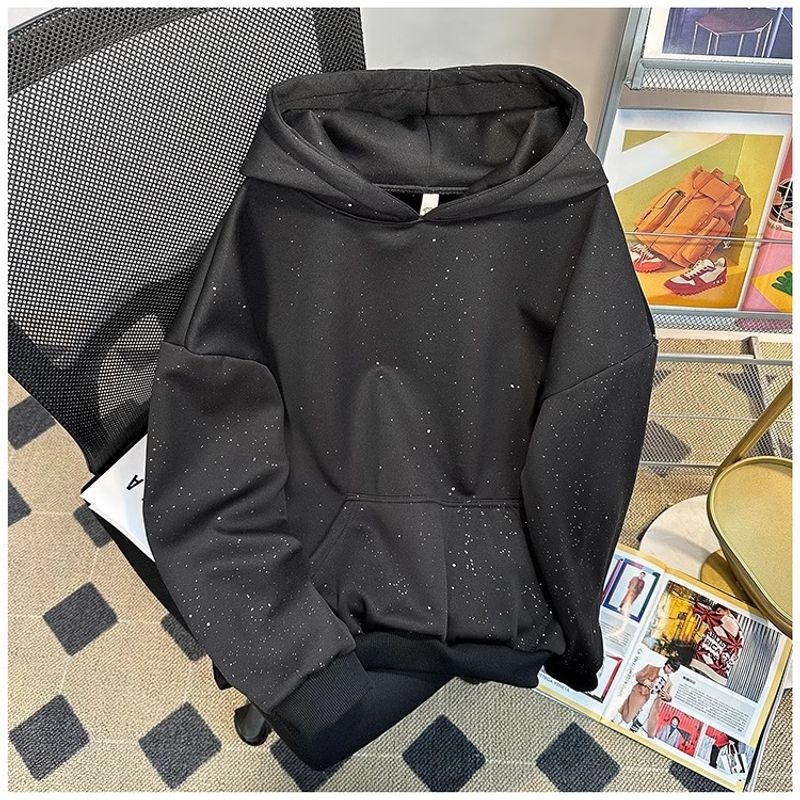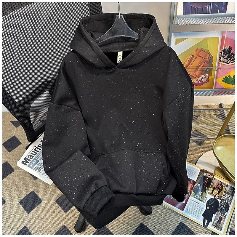 Women's Clothing Starry hooded heavy black sweater for men and women spring and autumn couples retro tops all match coat