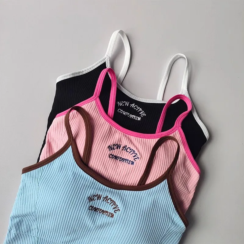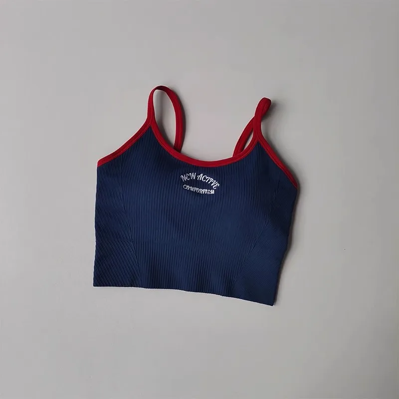 Color blocking fixed integrated embroidered sports vest. Colorful small suspender to decorate collarbone