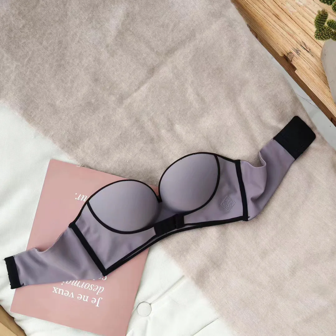 Women's Cotton Bra Sexy Solid Color Underwear Fashion Push Up Comfort Brassiere Strapless Breathable Underwear Female Lingerie
