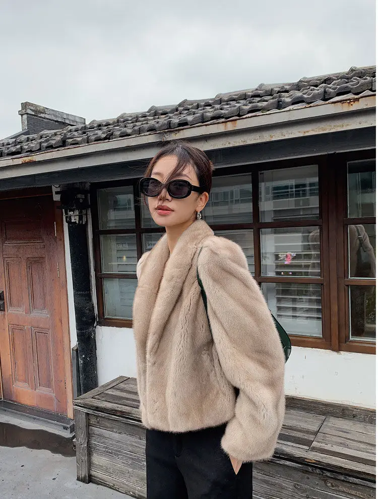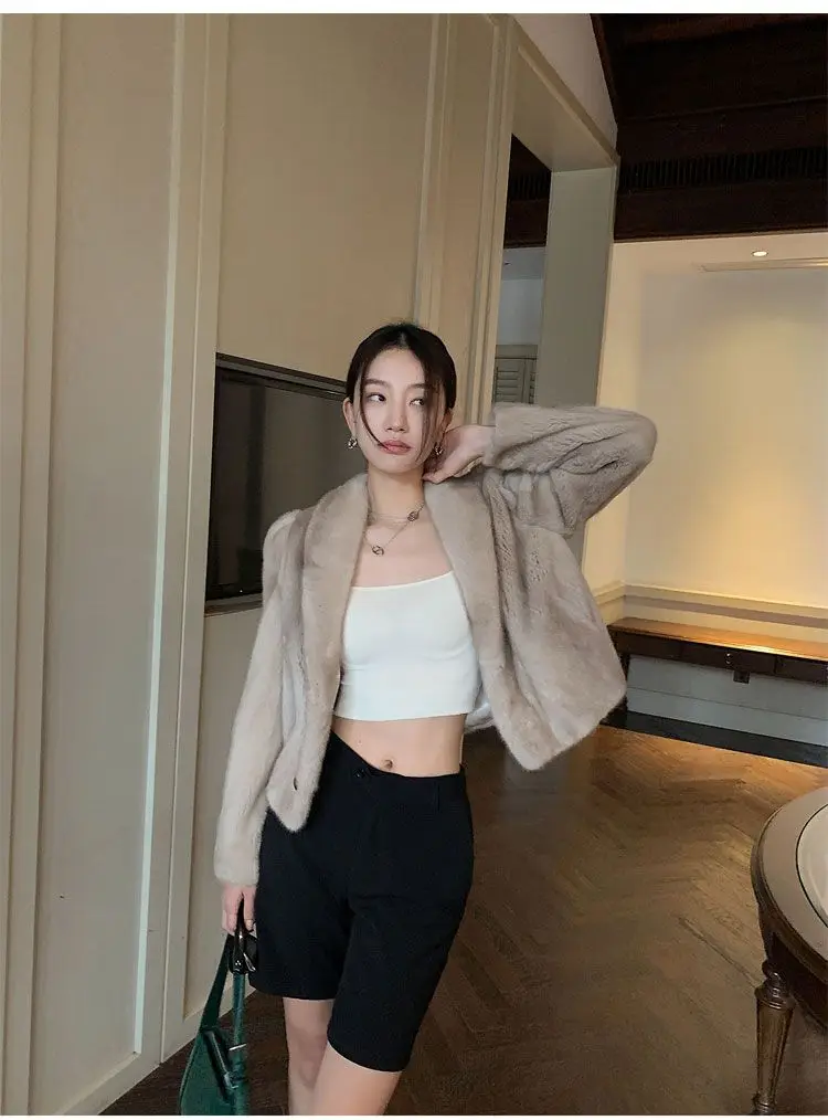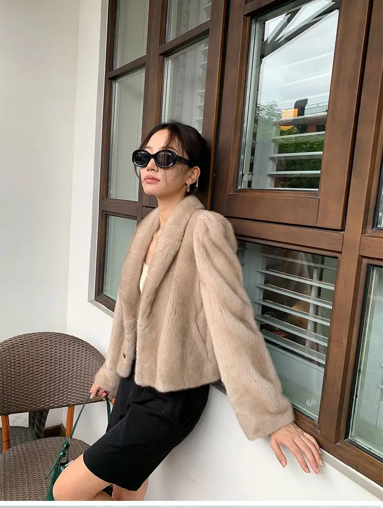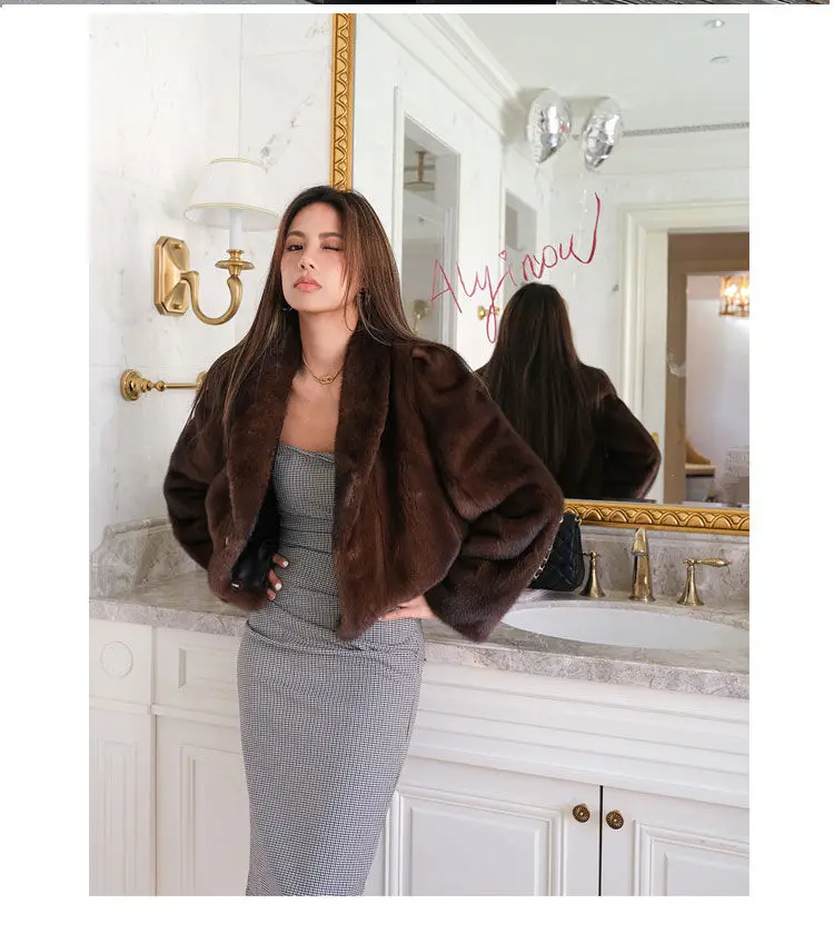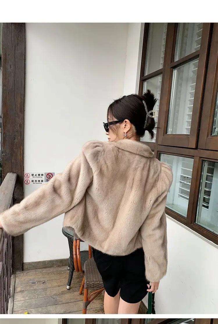 Women's Environment-Friendly Mink Fur Coat, Female Short Temperamental Vintage Outwear, Casual V-neck Coat, Winter Fashion