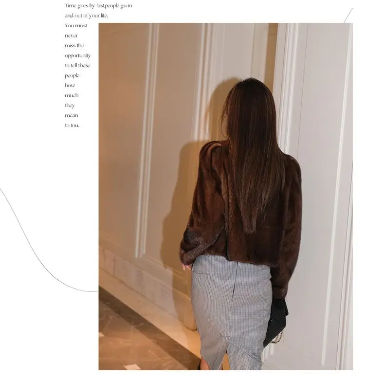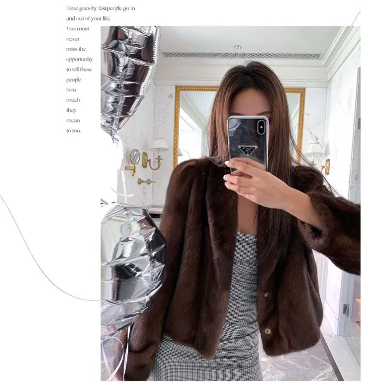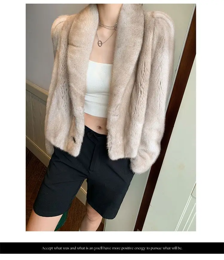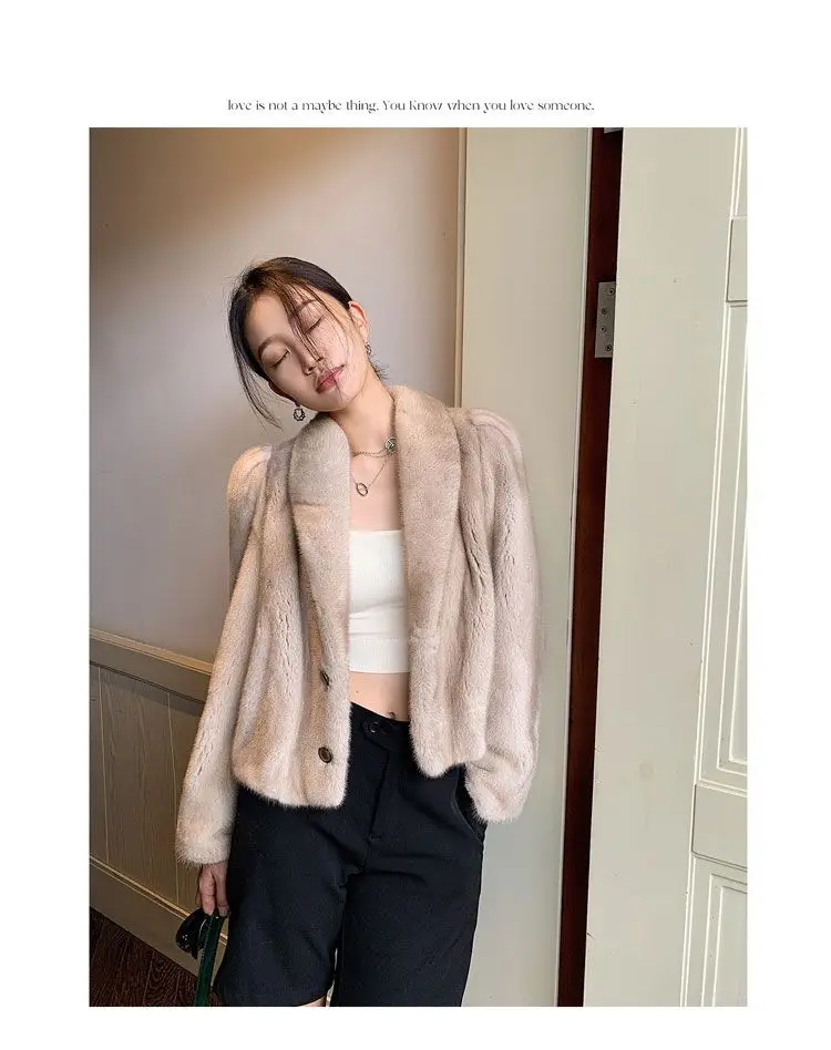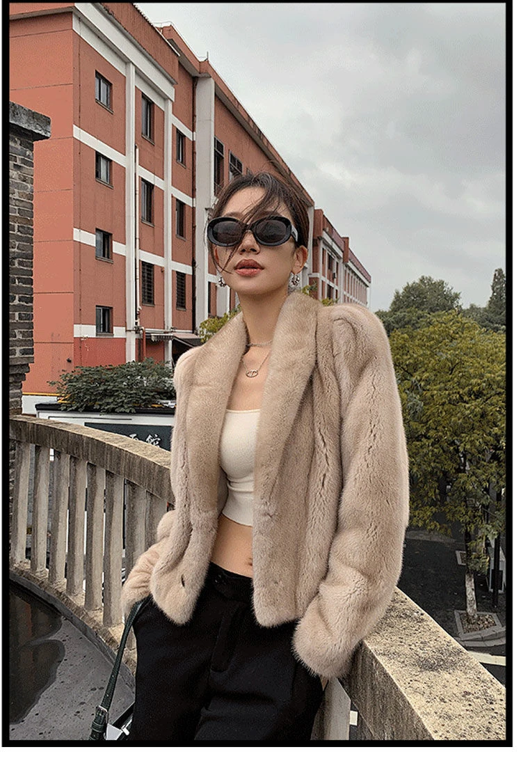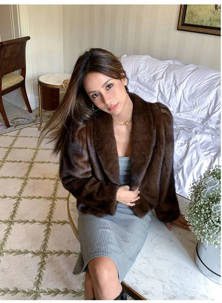 Women's Environment-Friendly Mink Fur Coat, Female Short Temperamental Vintage Outwear, Casual V-neck Coat, Winter Fashion