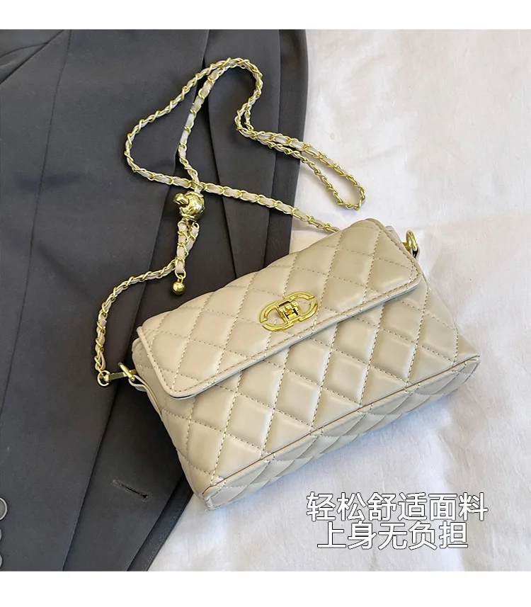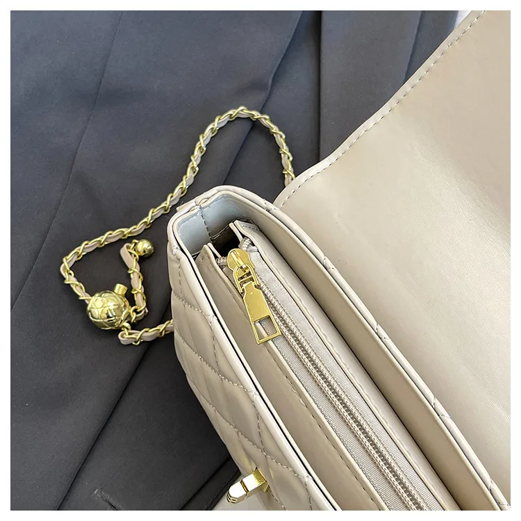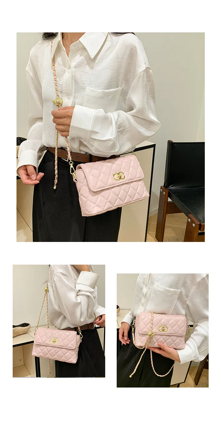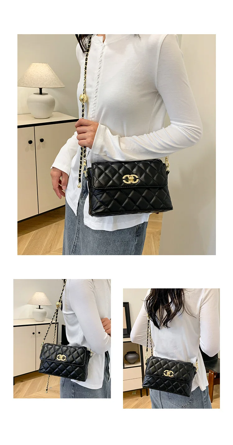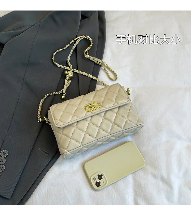 Women's Quilted Crossbody Bag with Adjustable Chain Strap & Gold Ball. Versatile Day-to-Night Shoulder Purse, Perfect for Dating
