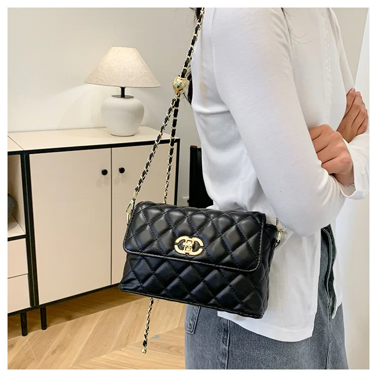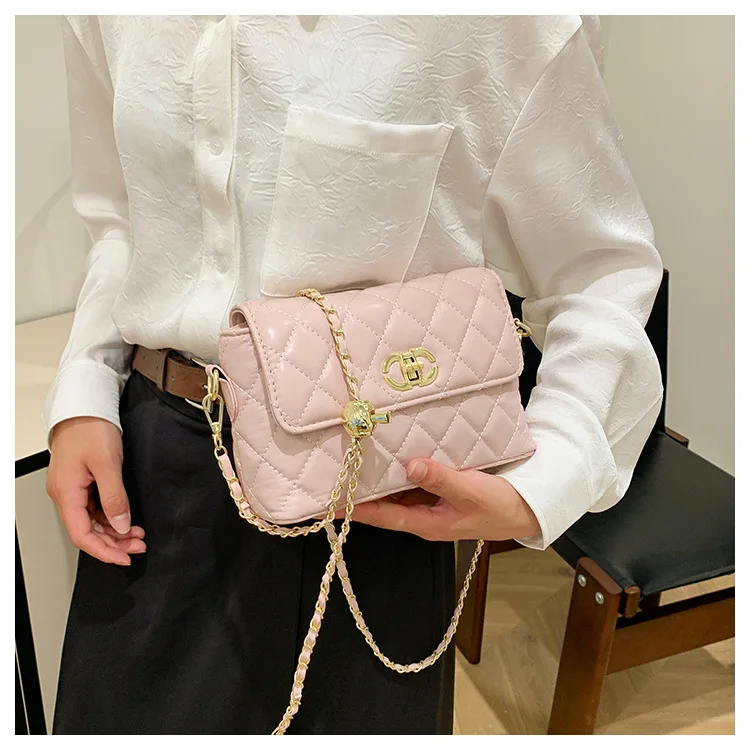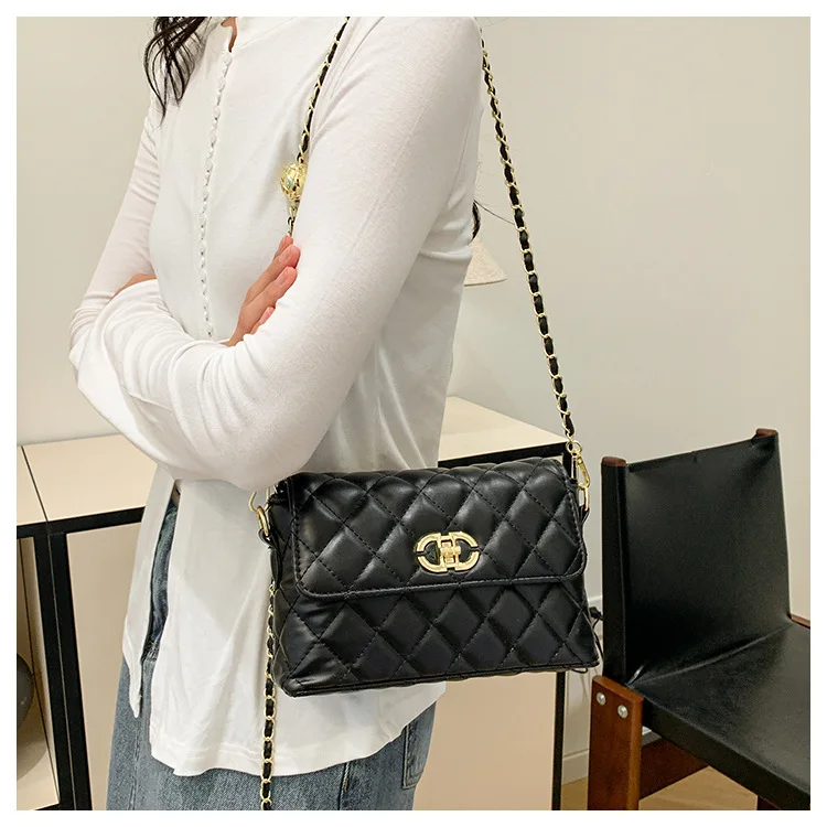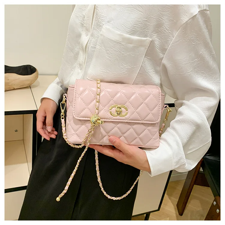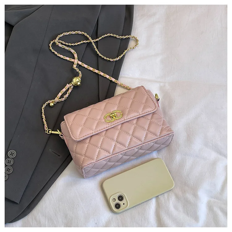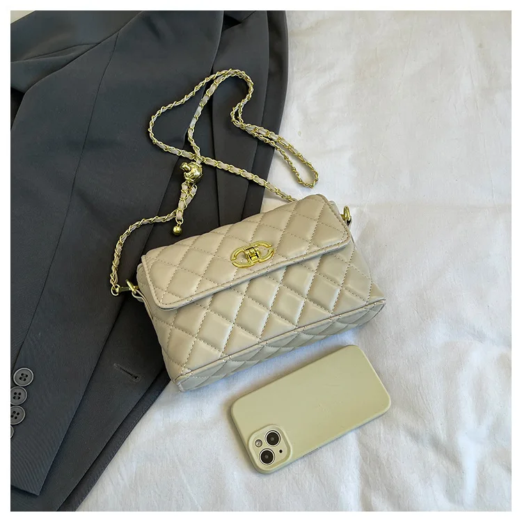 Women's Quilted Crossbody Bag with Adjustable Chain Strap & Gold Ball. Versatile Day-to-Night Shoulder Purse, Perfect for Dating