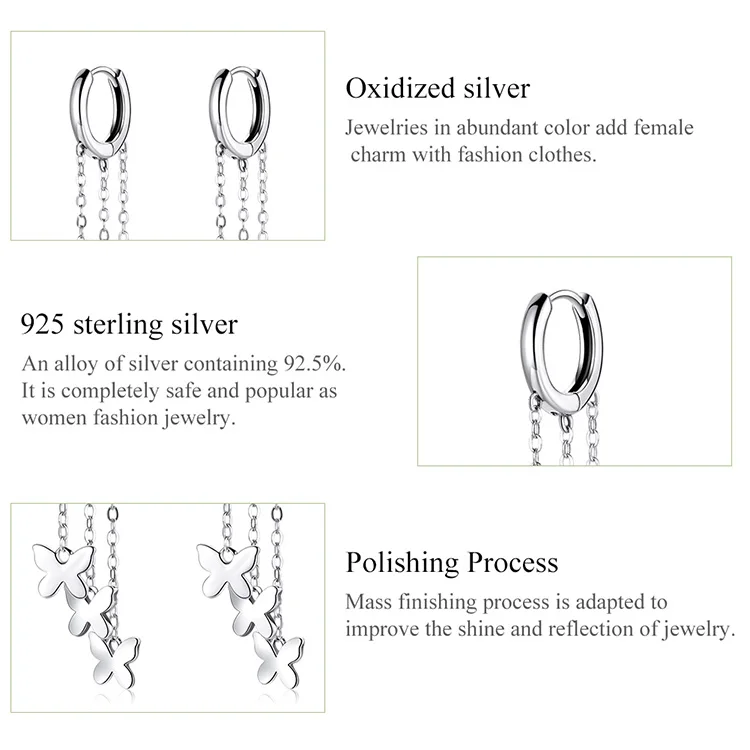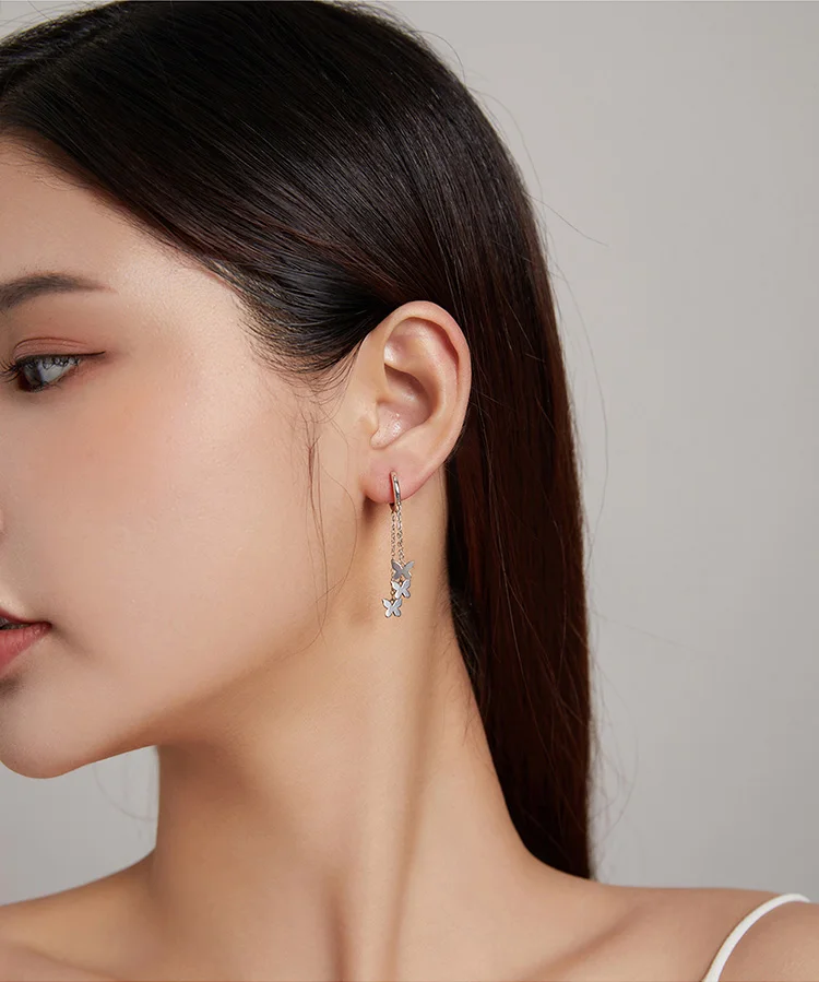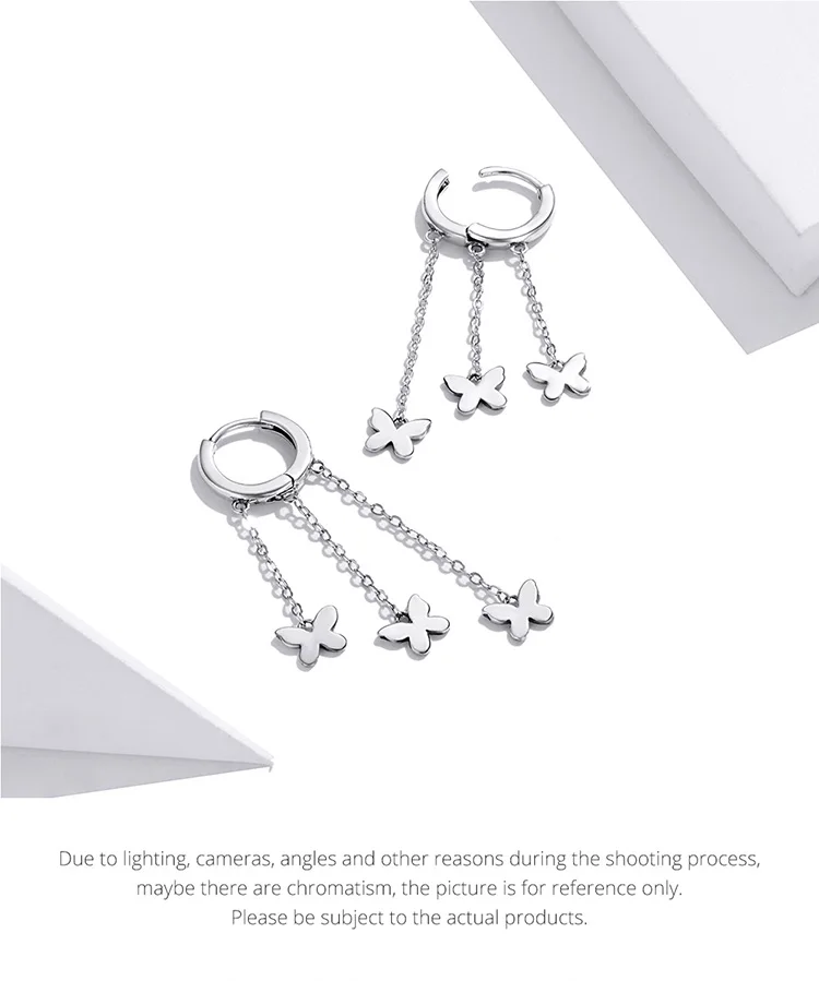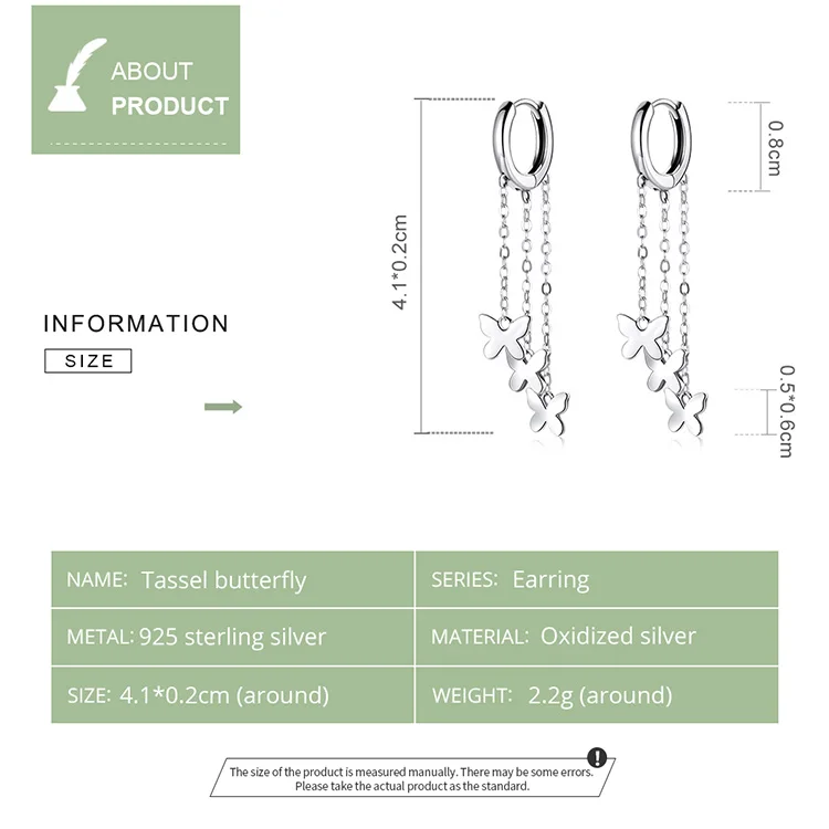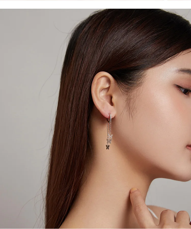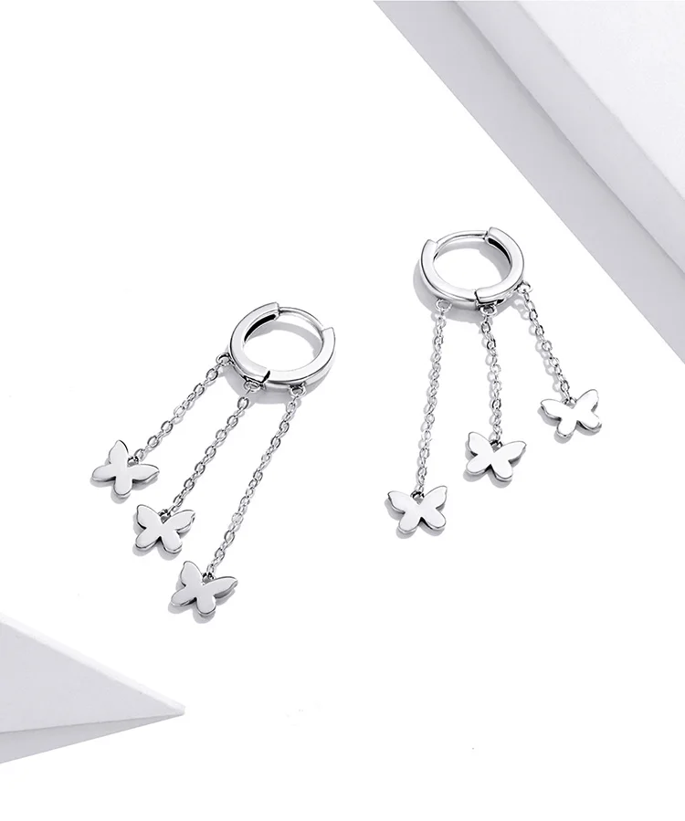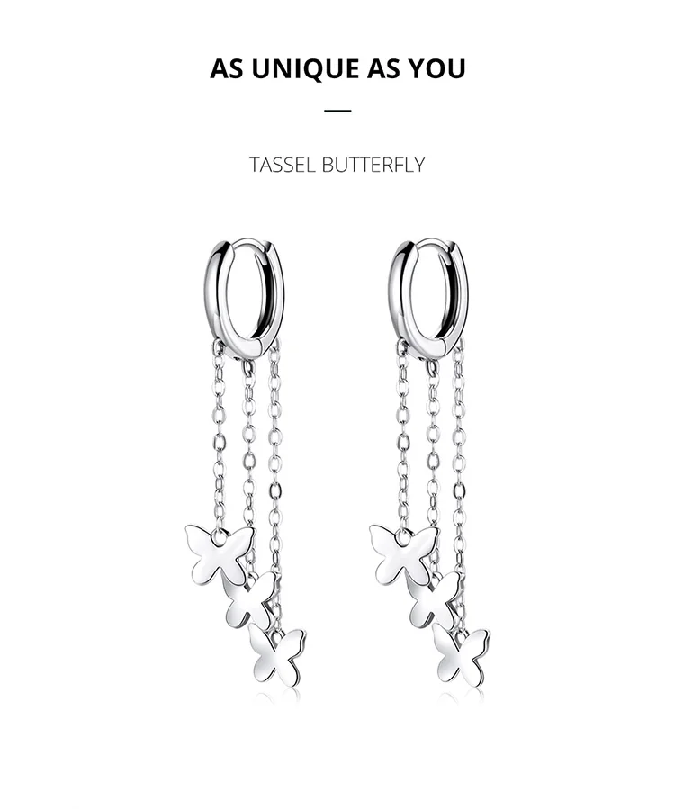 WOSTU 925 Sterling Silver Tassel Earrings Simple Butterfly Simple Line Drop Earrings For Women Fashion Silver Jewelry CQE1173