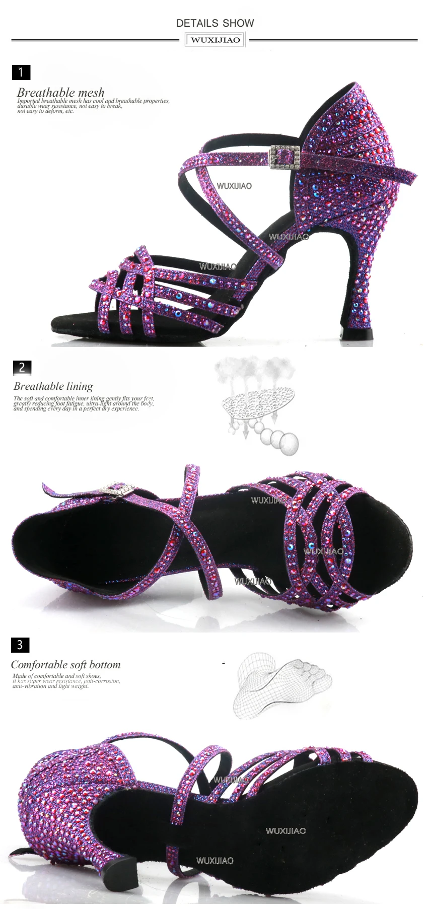 Step into style and confidence! 💜 What it is – Introducing the Wuxi Women's Purple Latin Dance Shoes, designed specifically for passionate dancers who want to shine on the dance floor. With a unique design featuring sparkling diamond embellishments, these shoes provide both beauty and functionality for salsa dancing. 🌟 Why you need it - - Elevate your dance performance with a secure fit and comfortable support. - Unique design ensures you stand out, making a statement at every event. - High-quality craftsmanship for long-lasting wear and durability. 😍 Why you’ll love it - - Soft and breathable materials keep your feet comfortable during extended wear. - The stylish purple color and diamond details add a touch of glamour to your dance attire. - Perfect fit for various foot shapes, ensuring optimal comfort and stability while dancing. 💃 How to use it - Simply lace up and adjust the straps for a customizable fit. Perfect for practice sessions or performances, these shoes transition seamlessly to any salsa dancefloor! 🎯 Satisfaction Guaranteed! Take your salsa dancing to the next level with these exquisite shoes. Order now and step into the spotlight with confidence!