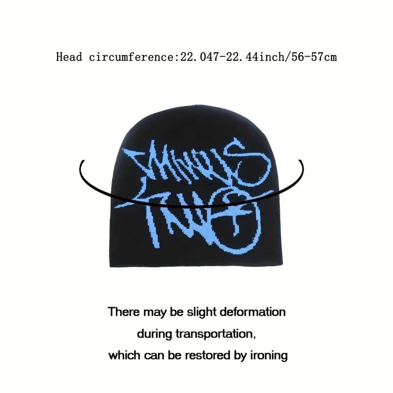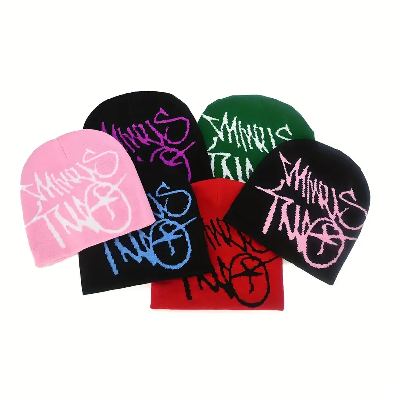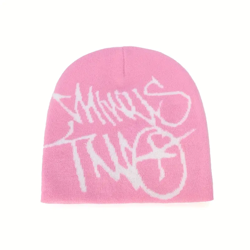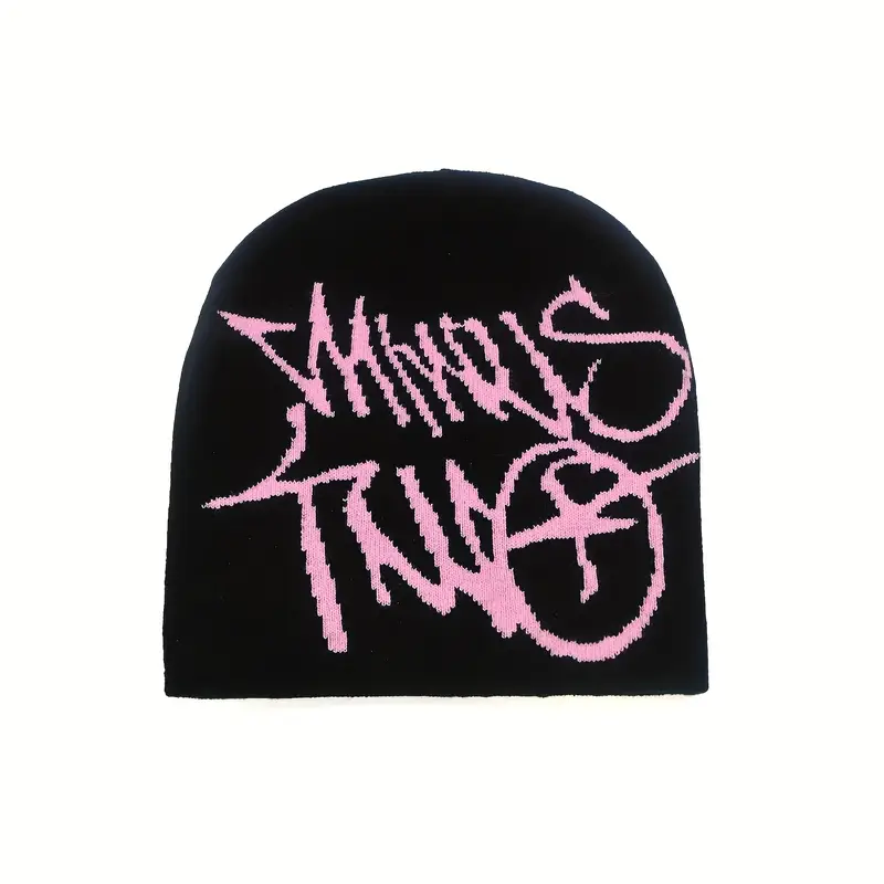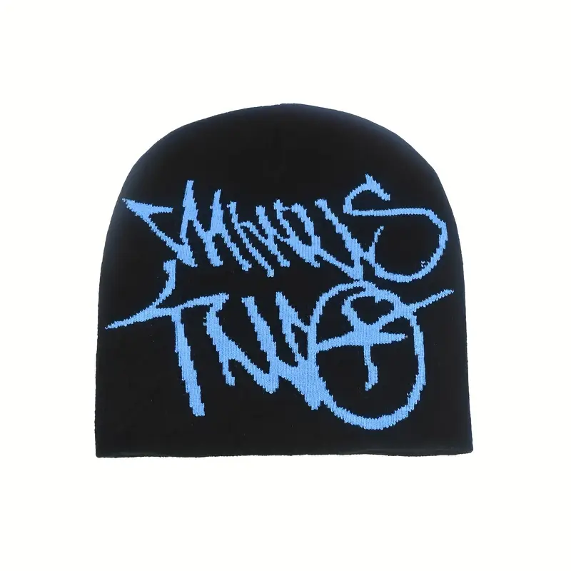 Elevate your street style with our Y2K Stretch Knit Beanie featuring a unique graffiti letter design - a must-have accessory for any trendsetter.