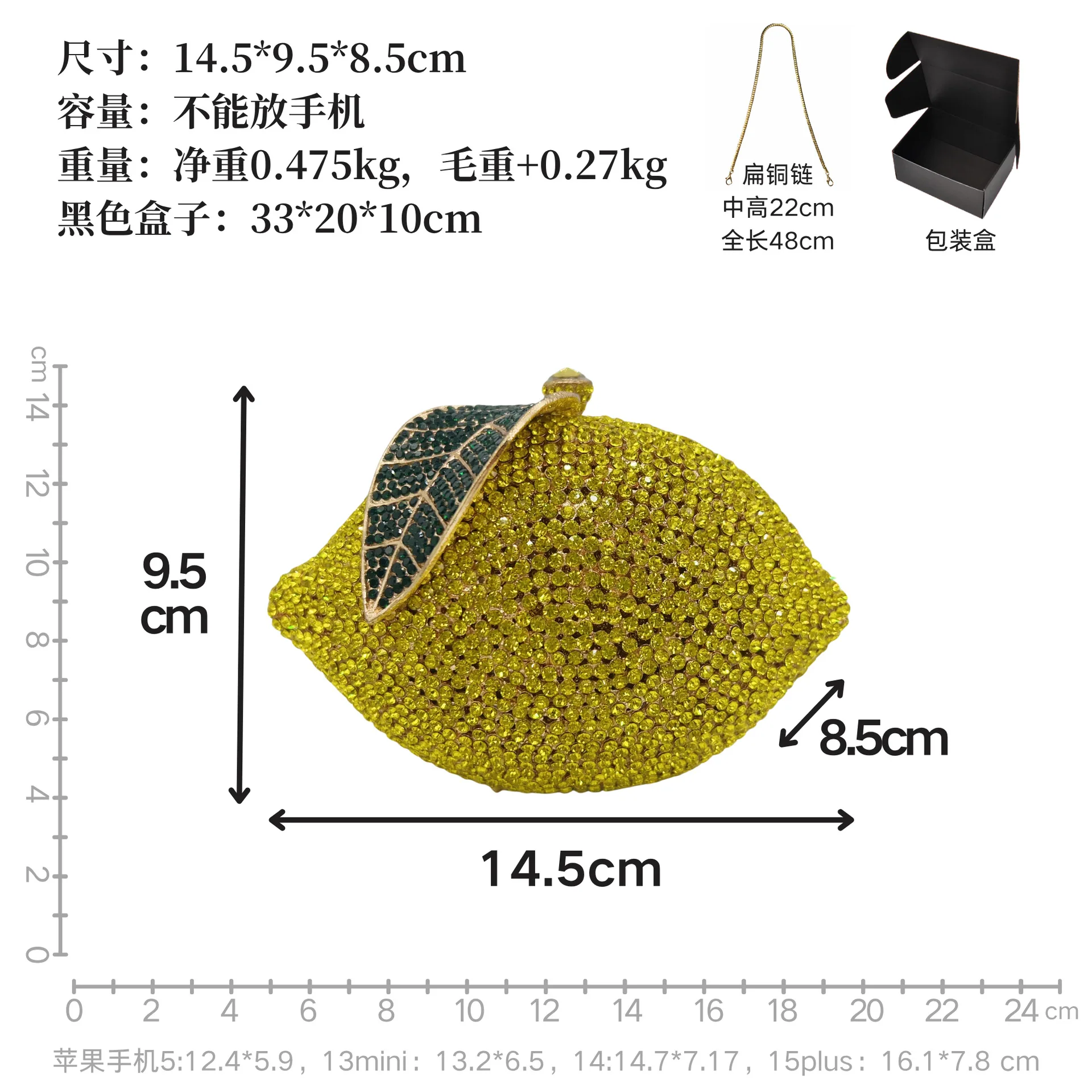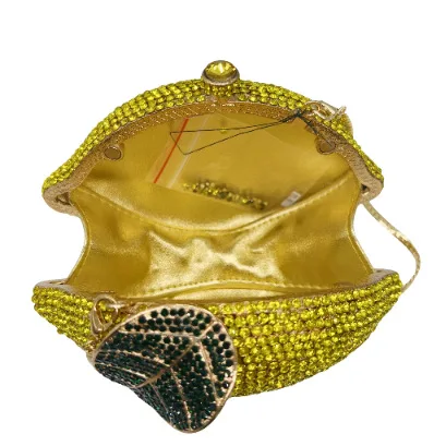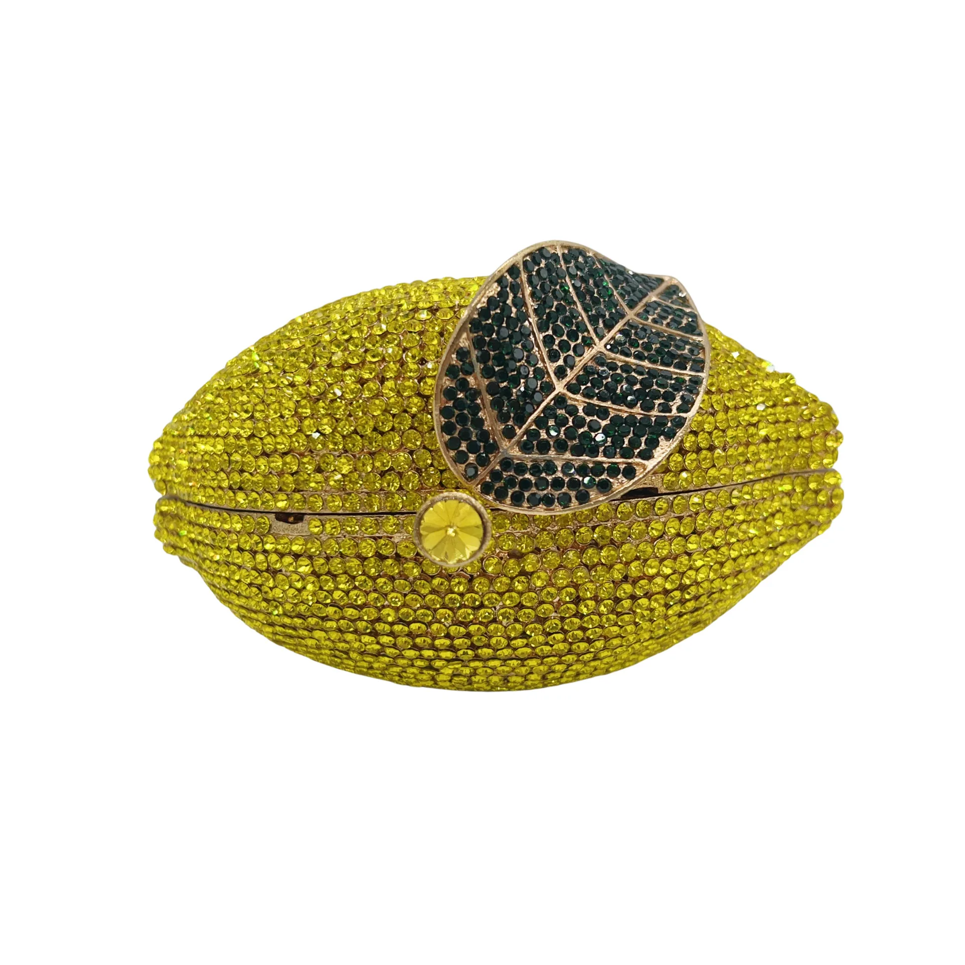 Yellow Lemon Shape Crystal Evening Bag Clutches Bridal Luxury Diamond Clutch Purse Wedding Party Rhinestone Handbag Prom Pouch