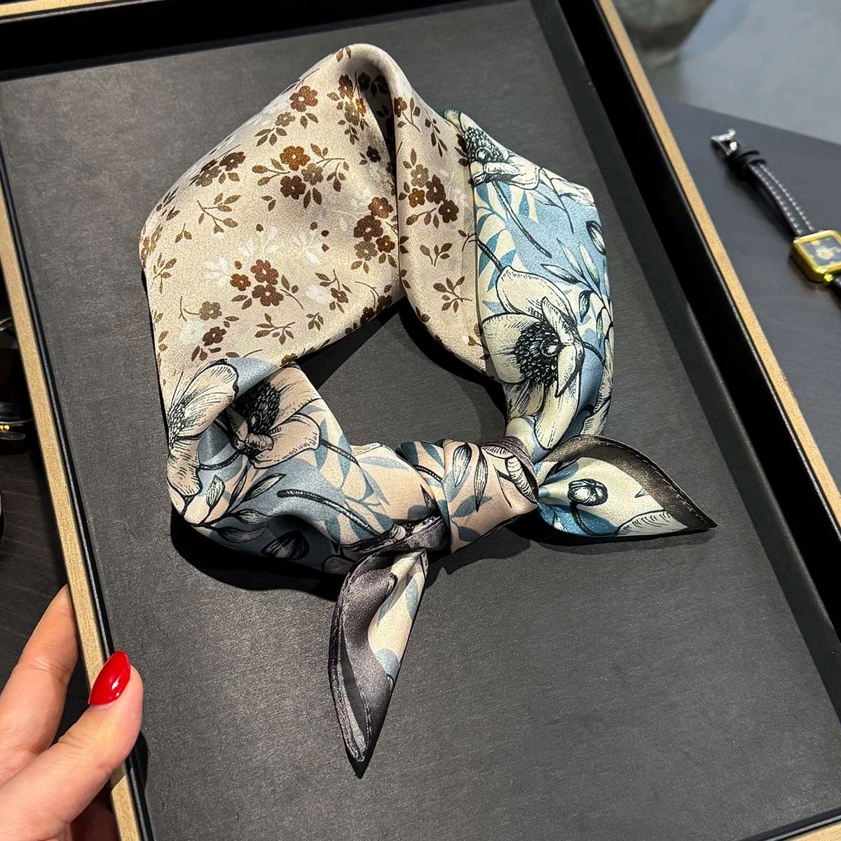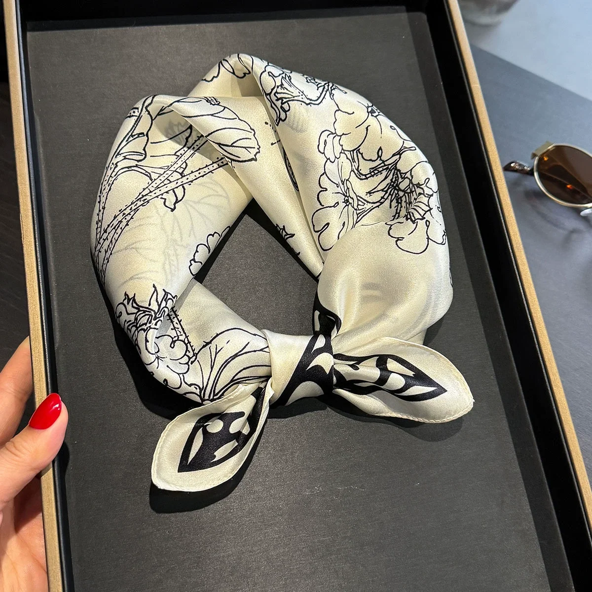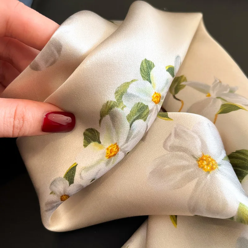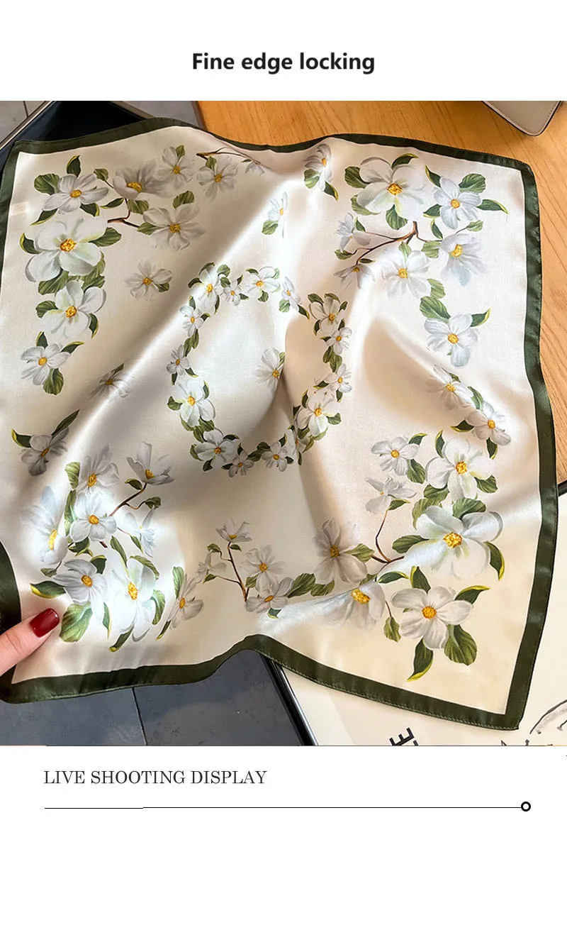 Elevate your style! 🌸 What it is - Discover our luxurious 53*53cm flower print silk scarf, crafted from 100% pure silk for an elegant touch. Ideal for neck tying, head wrapping, or as a chic hair accessory, this scarf brings a fresh look to any outfit. Its premium quality ensures a soft, smooth feel against your skin while adding a splash of color and sophistication.✨ Why you need it - This exquisite scarf:- Transforms any outfit with its vibrant floral design.- Offers versatile usage as a necktie, headband, or wrist accessory.- Provides a touch of luxury that supports your fashion statement.💖 Why you love it - Customers are raving about this scarf because:- Its 100% silk construction provides unmatched softness and durability.- The beautiful floral print is timeless and on-trend; it matches effortlessly with spring and summer wardrobes.- It’s perfect for gifting or treating yourself, making you feel special every day.To use, simply tie it around your neck, style it in your hair, or drape it over your shoulder. Feel free to experiment with different tying techniques for a unique look!💯 Satisfaction guaranteed! Add this must-have accessory to your collection today and enjoy a touch of luxury in your everyday style!