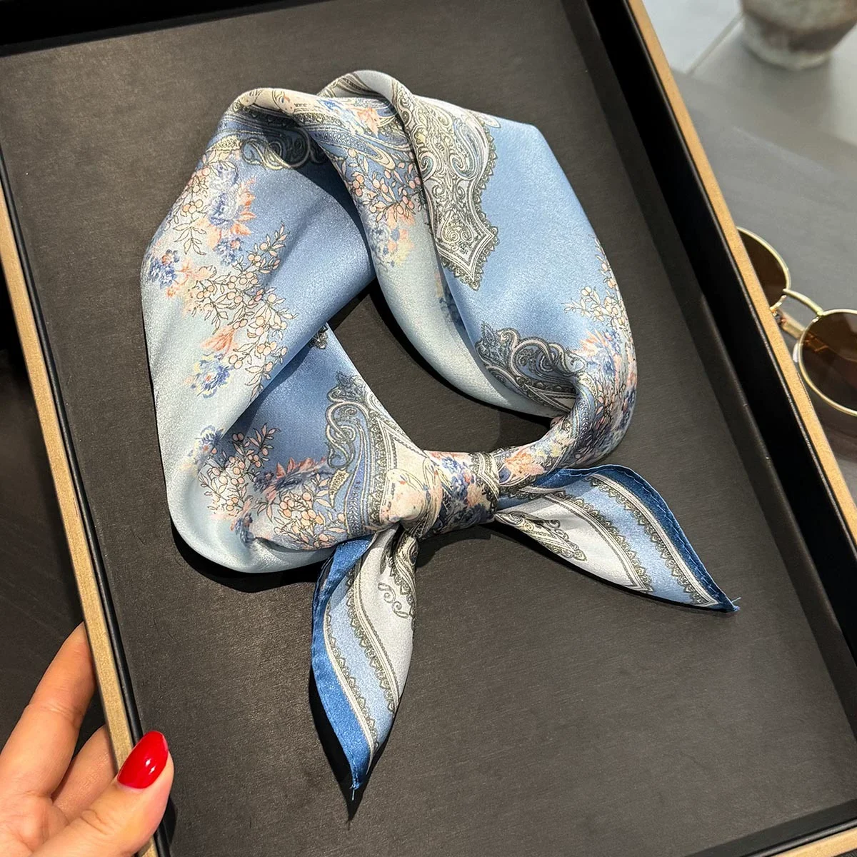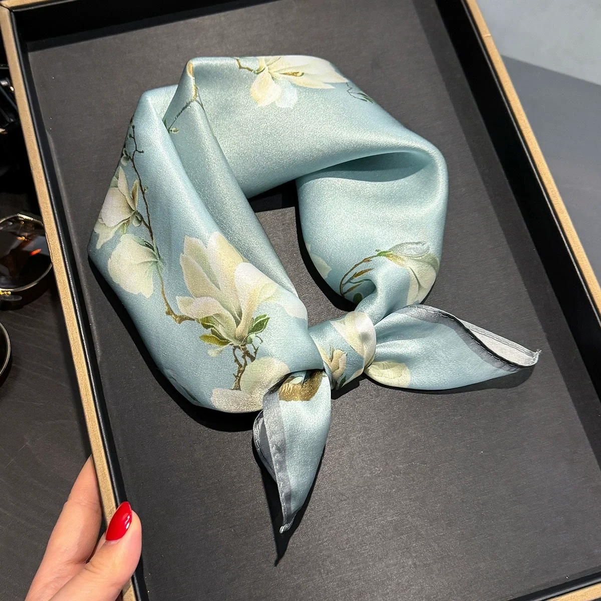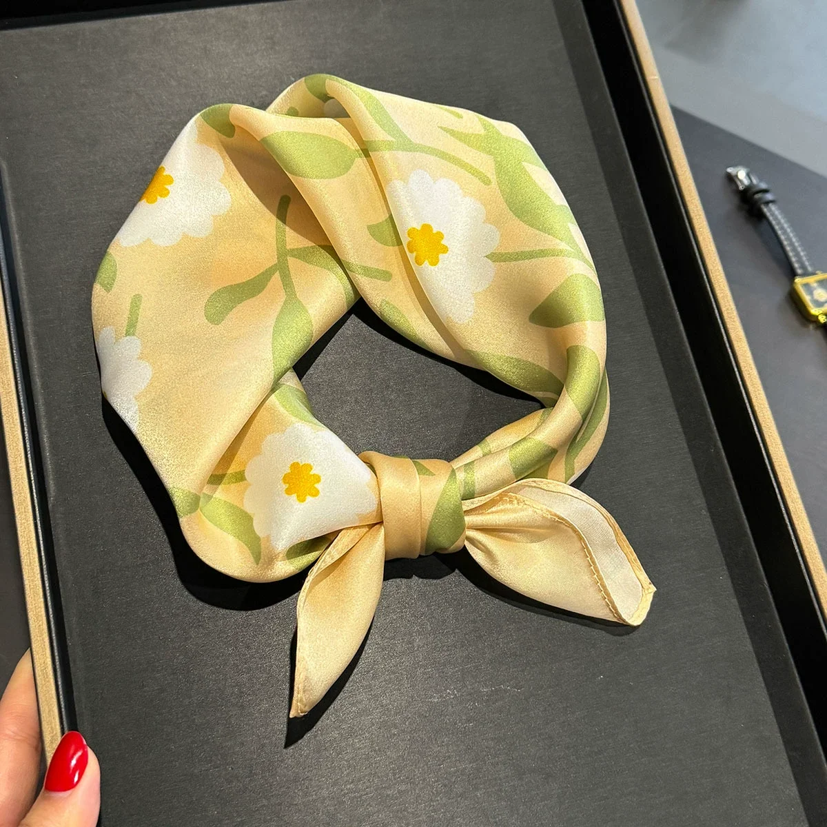 Elevate your style! 🌸 What it is - Discover our luxurious 53*53cm flower print silk scarf, crafted from 100% pure silk for an elegant touch. Ideal for neck tying, head wrapping, or as a chic hair accessory, this scarf brings a fresh look to any outfit. Its premium quality ensures a soft, smooth feel against your skin while adding a splash of color and sophistication.✨ Why you need it - This exquisite scarf:- Transforms any outfit with its vibrant floral design.- Offers versatile usage as a necktie, headband, or wrist accessory.- Provides a touch of luxury that supports your fashion statement.💖 Why you love it - Customers are raving about this scarf because:- Its 100% silk construction provides unmatched softness and durability.- The beautiful floral print is timeless and on-trend; it matches effortlessly with spring and summer wardrobes.- It’s perfect for gifting or treating yourself, making you feel special every day.To use, simply tie it around your neck, style it in your hair, or drape it over your shoulder. Feel free to experiment with different tying techniques for a unique look!💯 Satisfaction guaranteed! Add this must-have accessory to your collection today and enjoy a touch of luxury in your everyday style!
