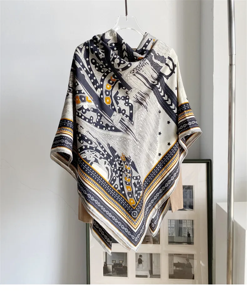 135cm Luxury Brand Twill Silk Scarf Women Bandana Square Scarf Design Kerchief Scarves For Ladies Fashion Shawl Echarpe