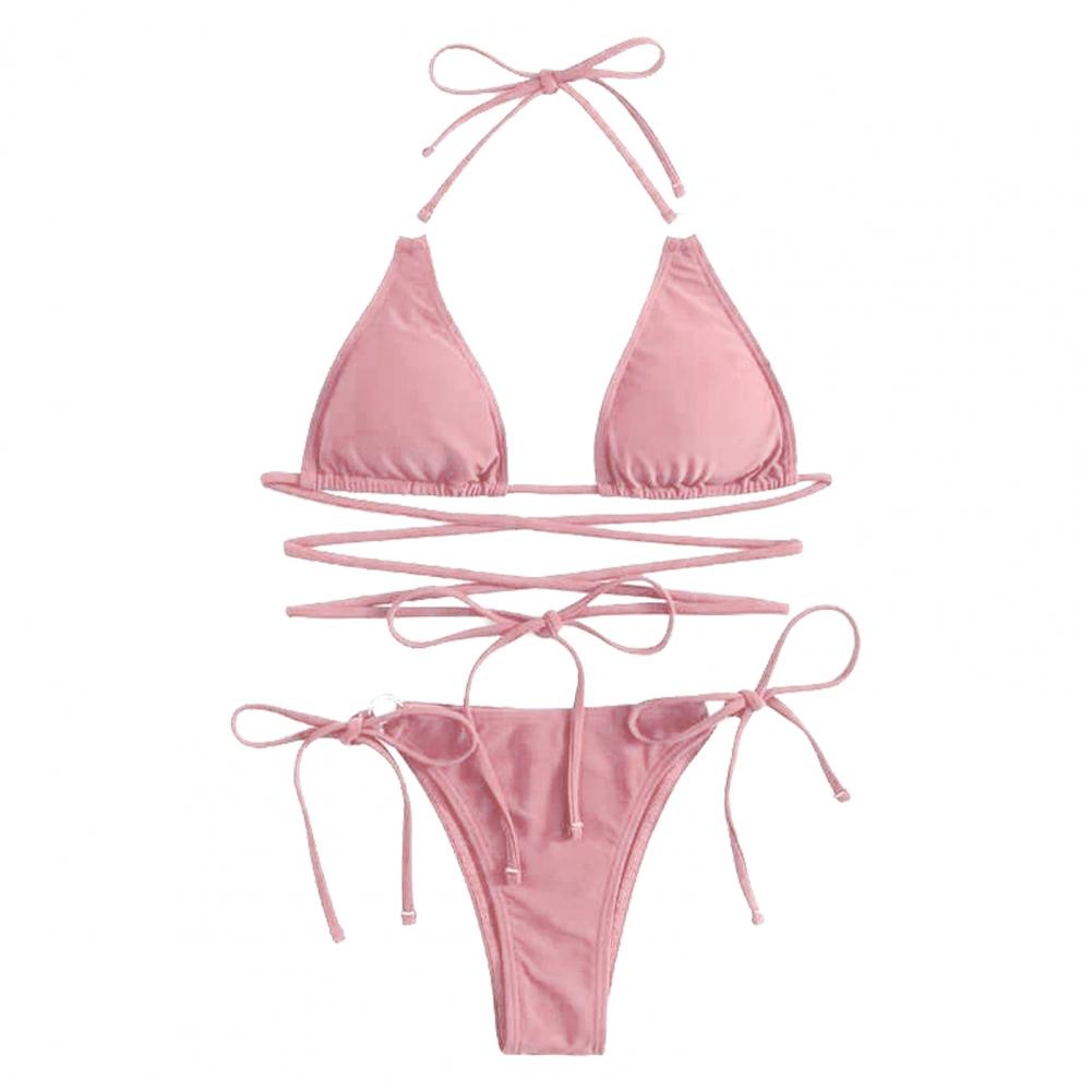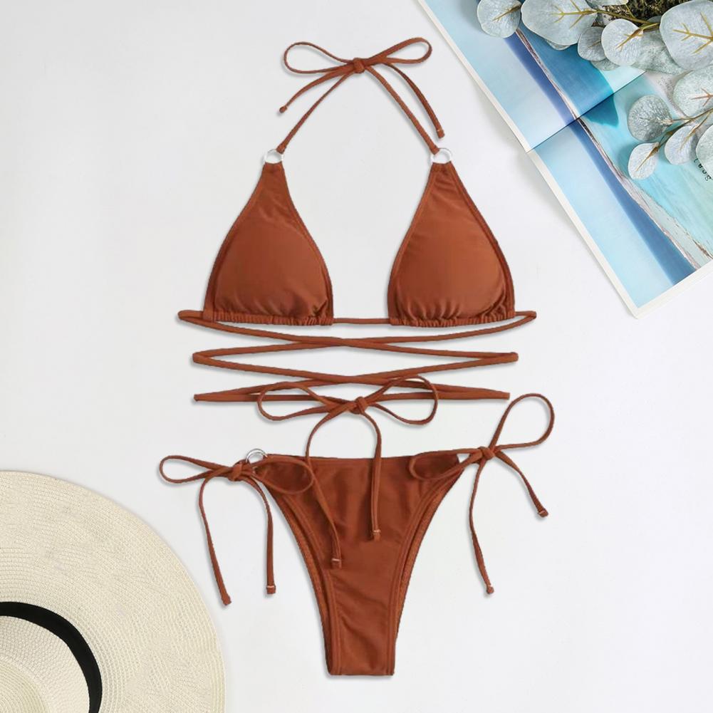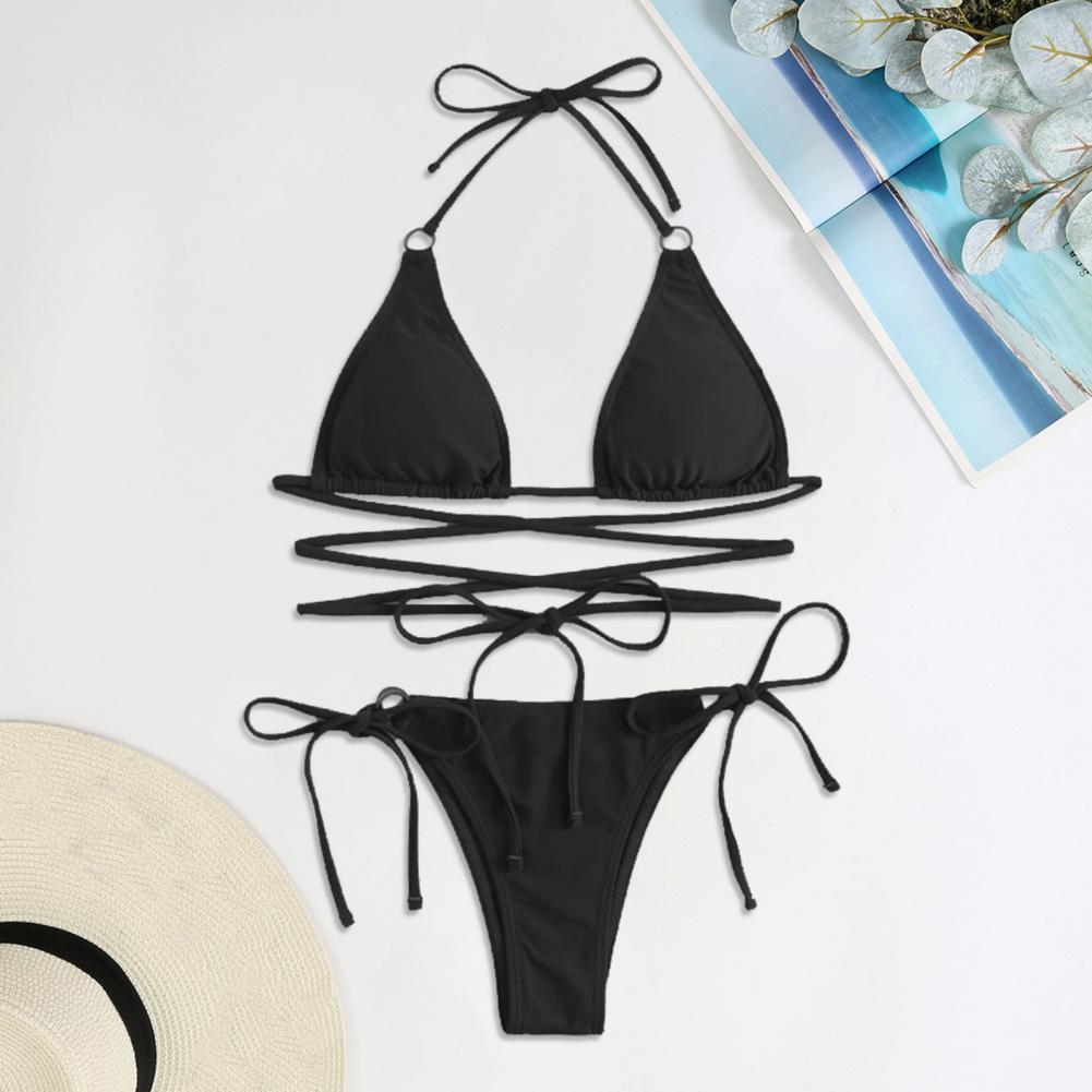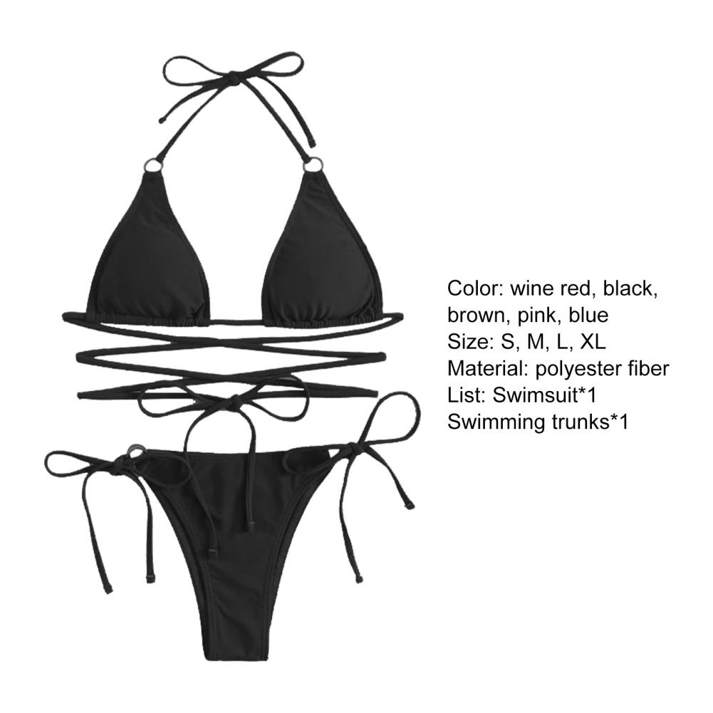2 Pcs/Set Bikini Set Halter Neck Cross Strap Slim Fit Backless Summer Women Swimsuit for Beach