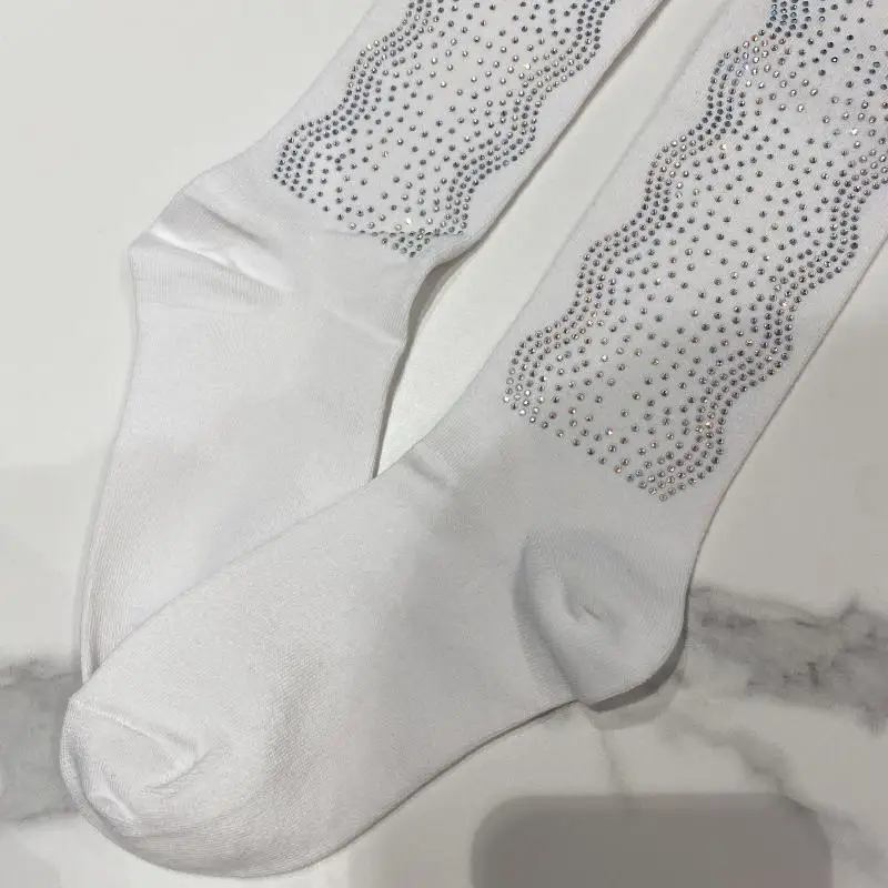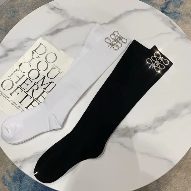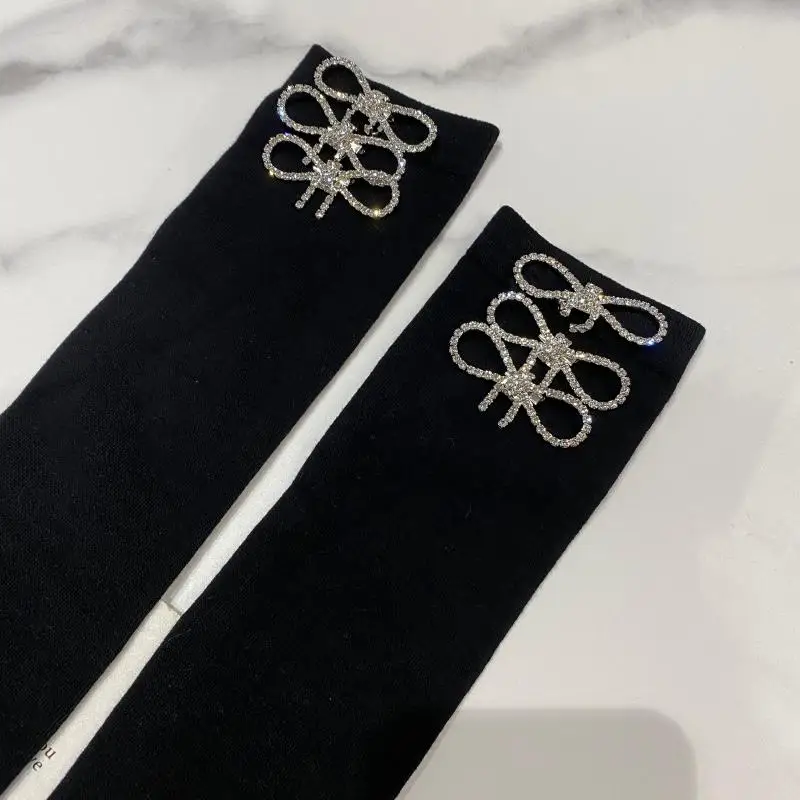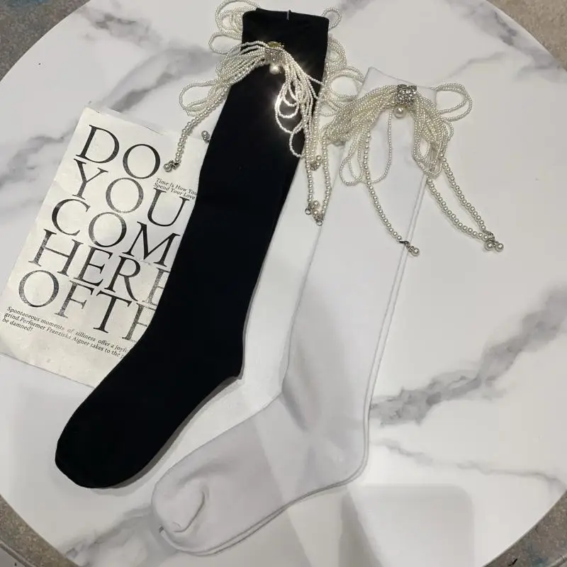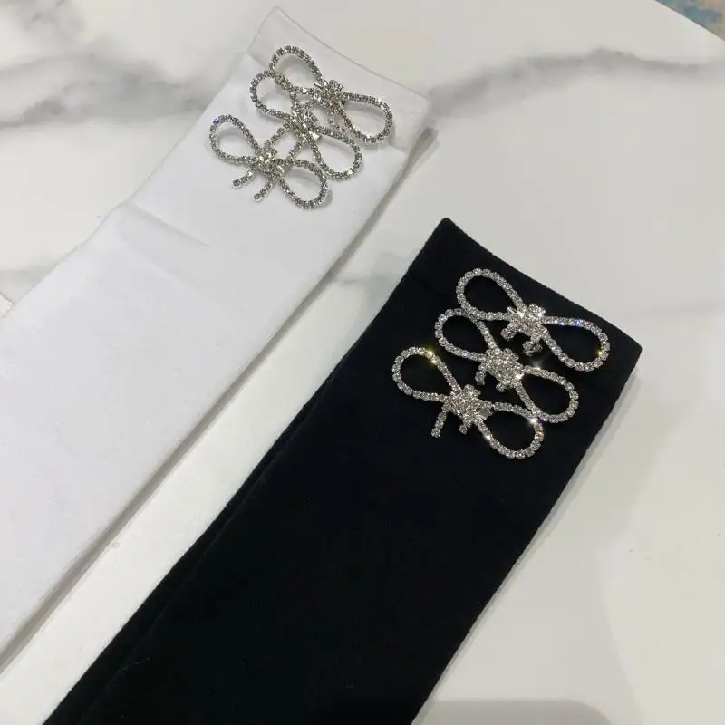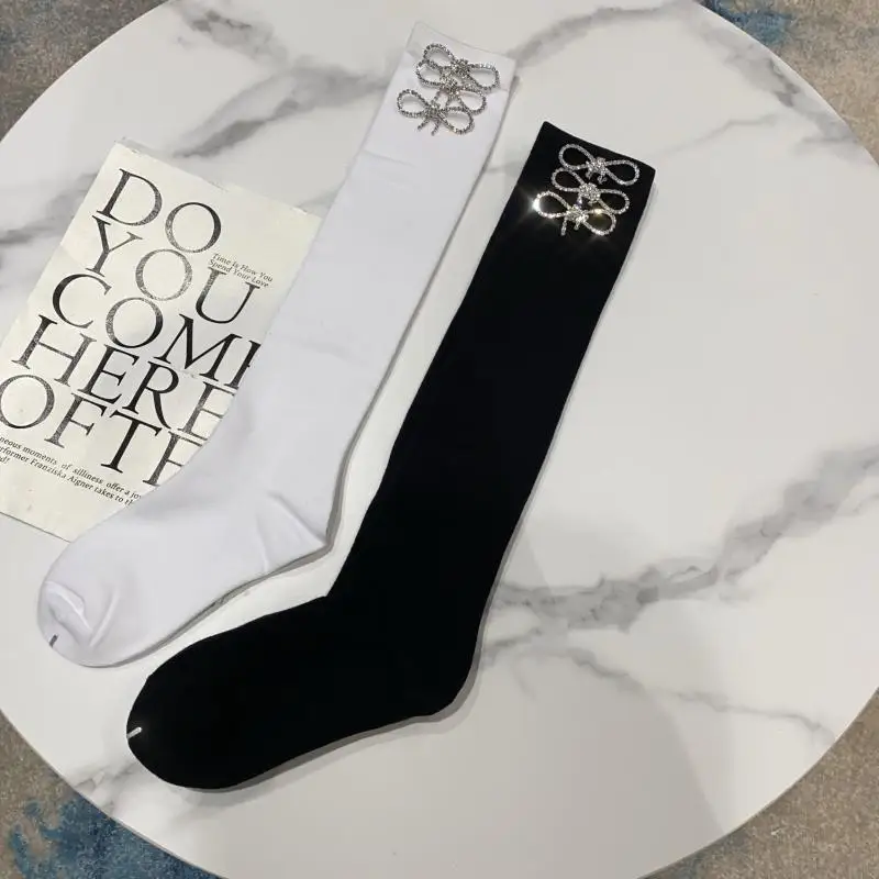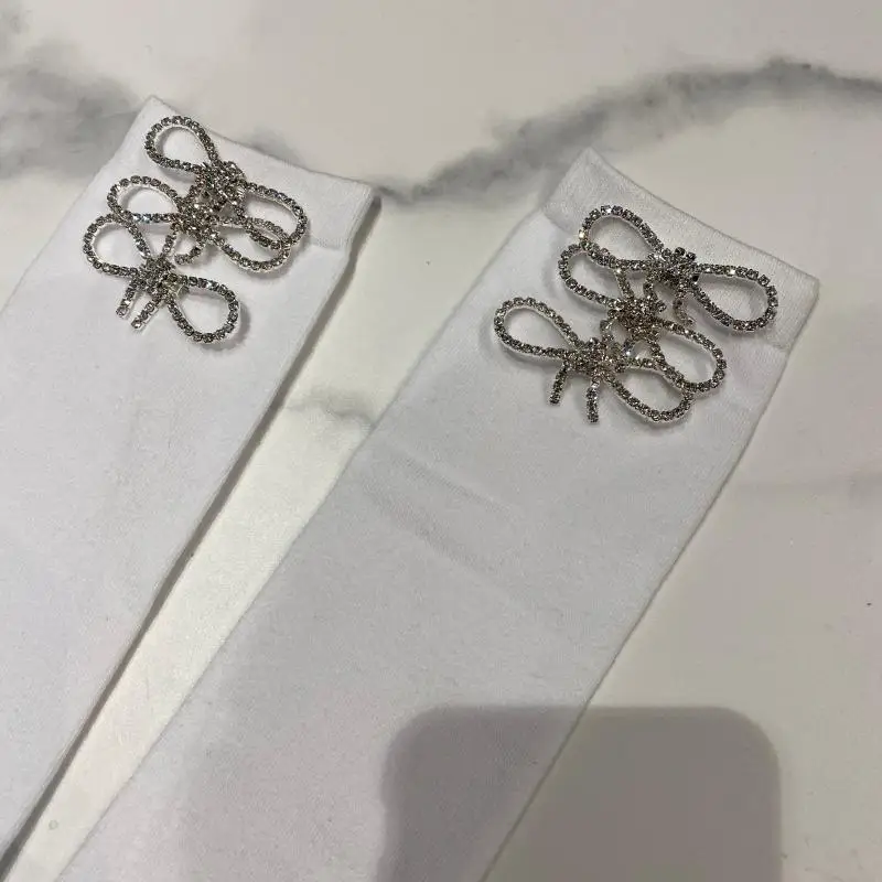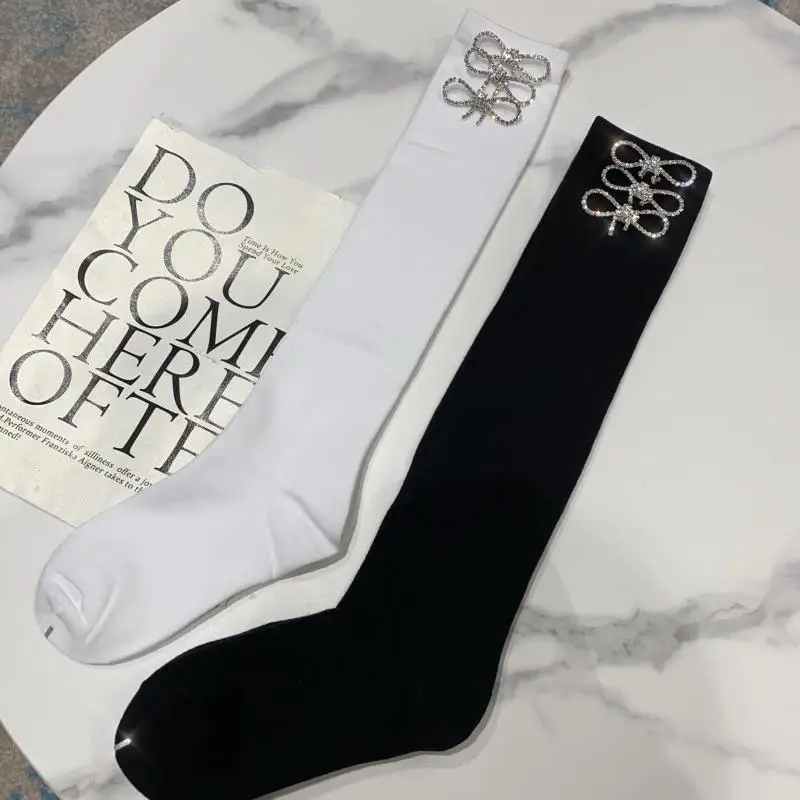 2022 Autumn Spring New Fashion Water Drill Rhinestone Bow Socks Women Girls Hot Drill Diamond Tassel High Stockings Cotton Socks