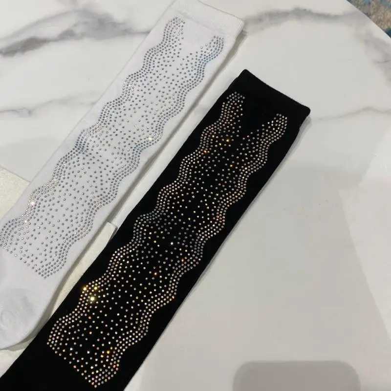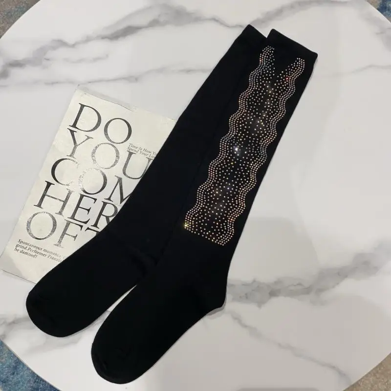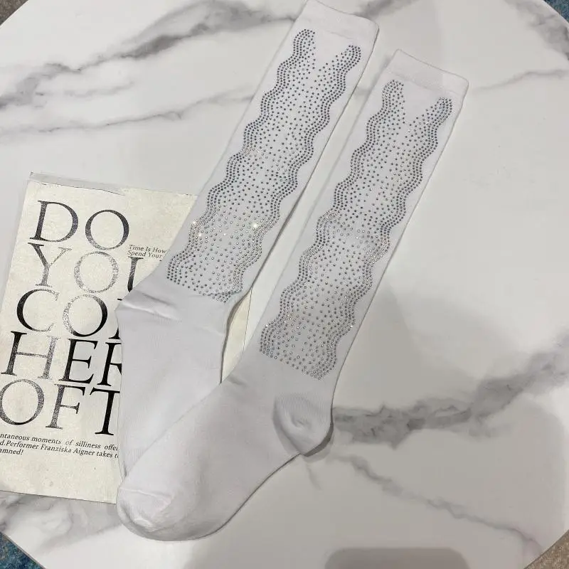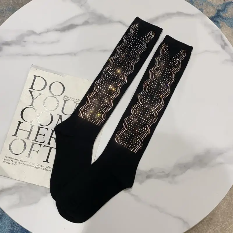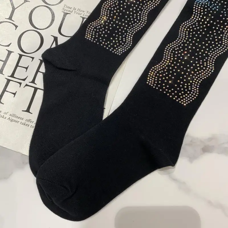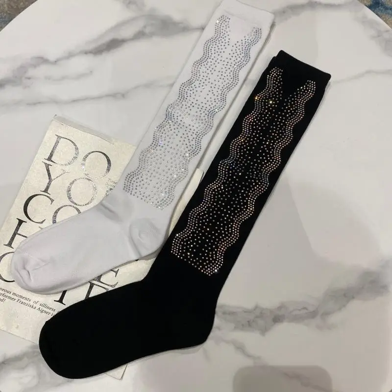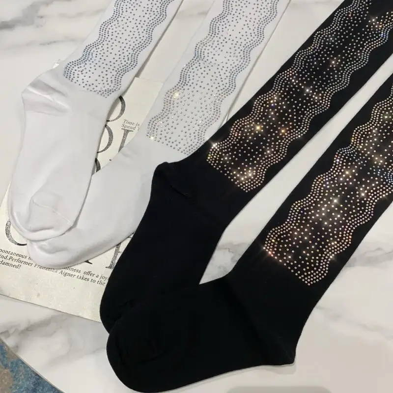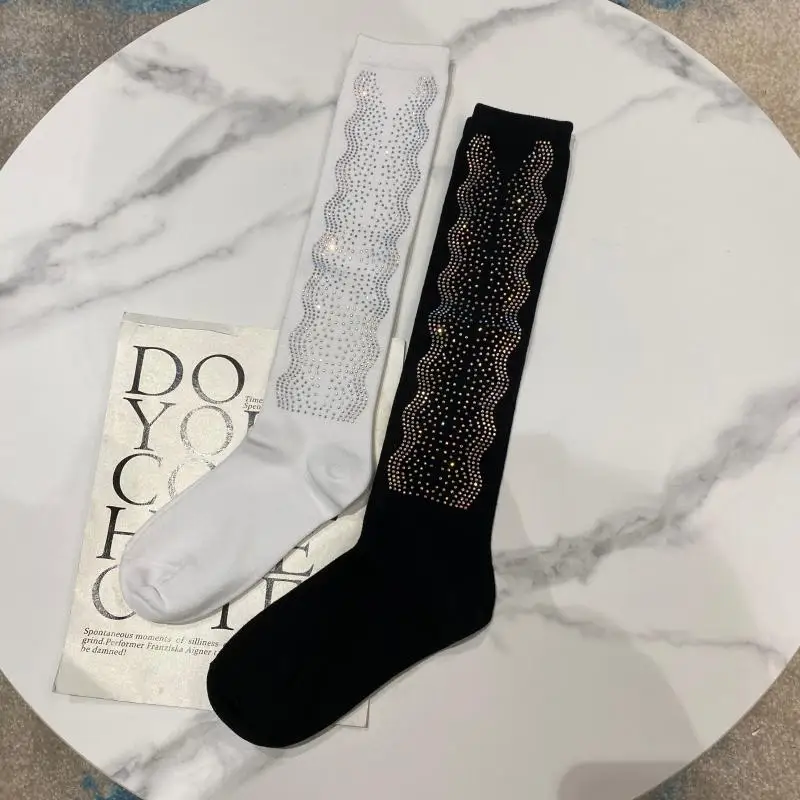 2022 Autumn Spring New Fashion Water Drill Rhinestone Bow Socks Women Girls Hot Drill Diamond Tassel High Stockings Cotton Socks