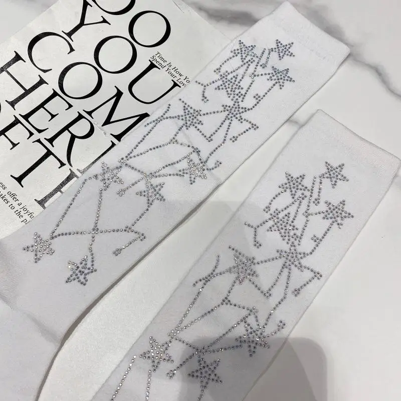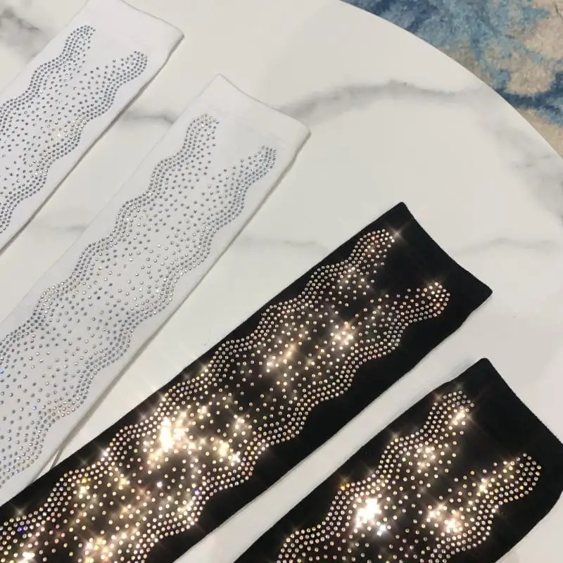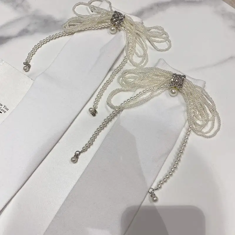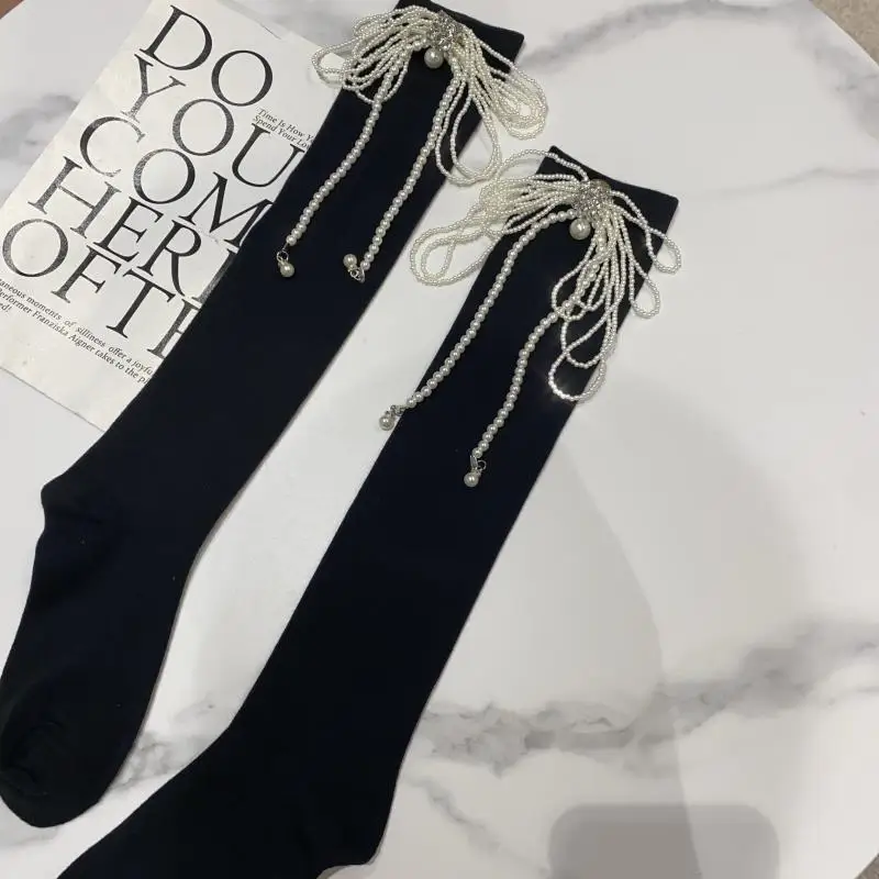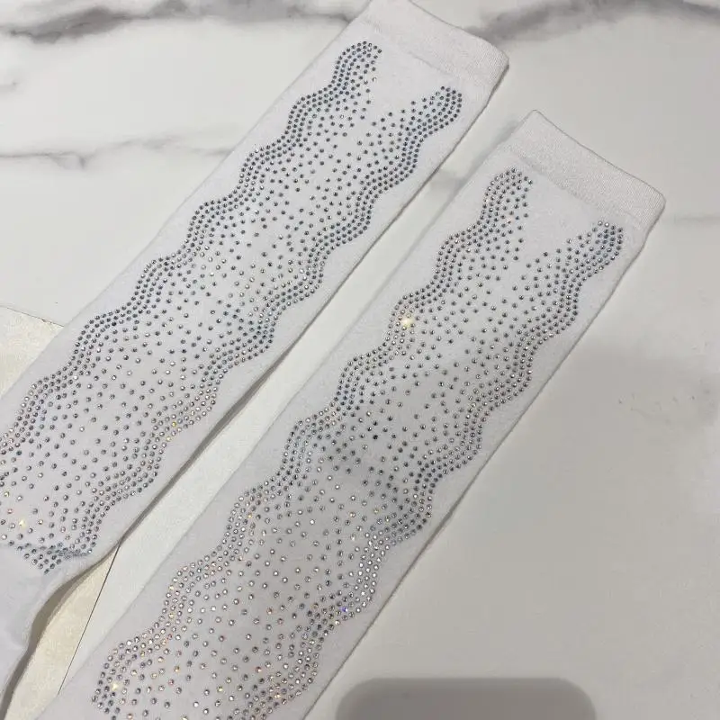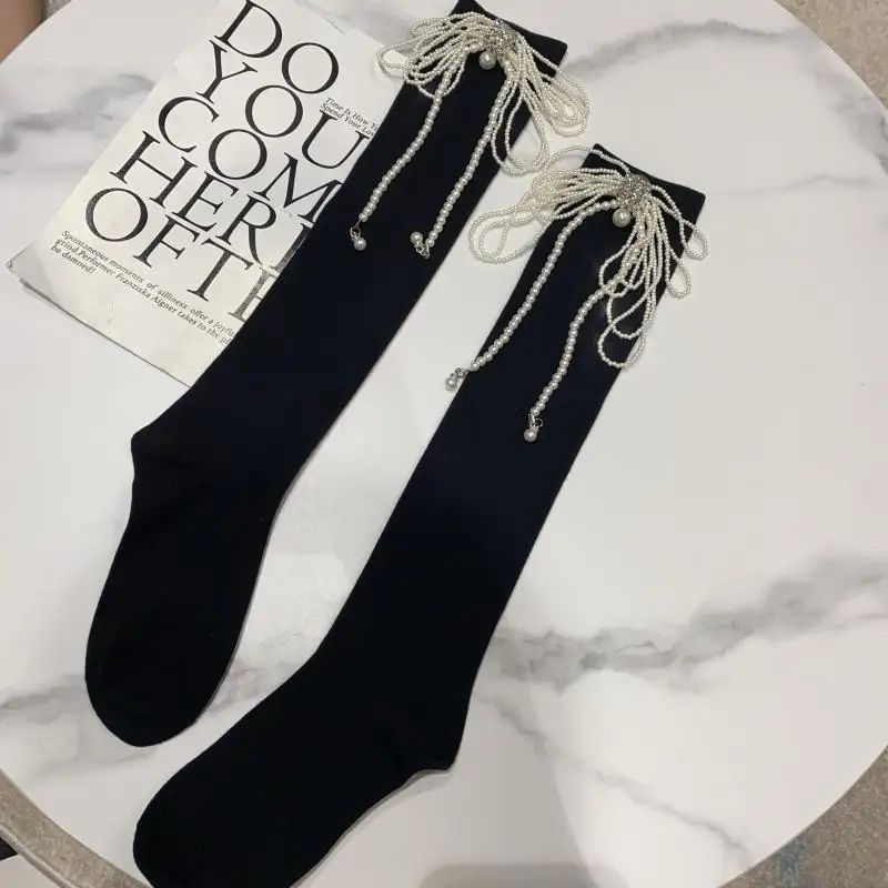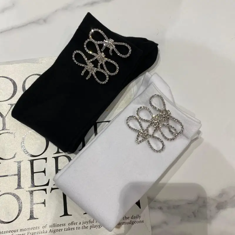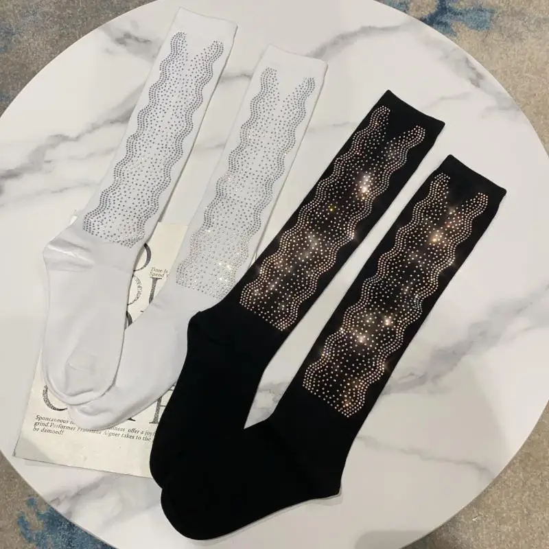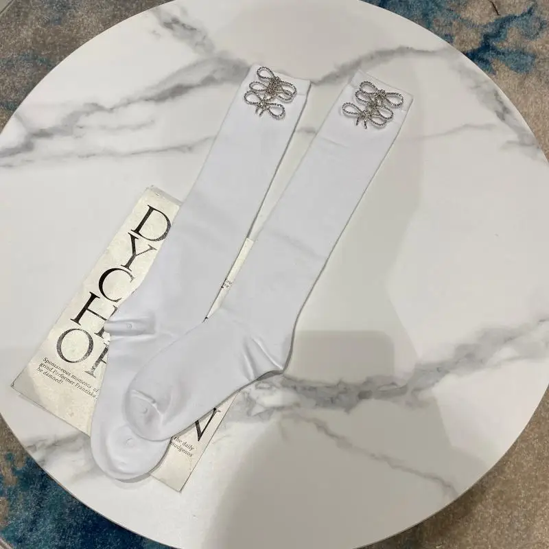 2022 Autumn Spring New Fashion Water Drill Rhinestone Bow Socks Women Girls Hot Drill Diamond Tassel High Stockings Cotton Socks