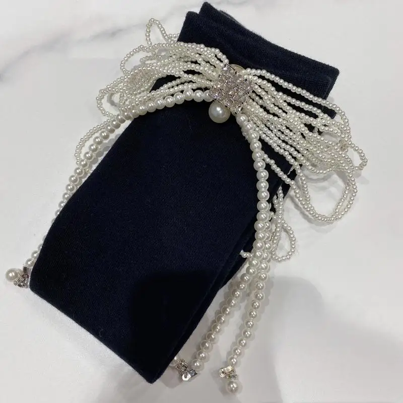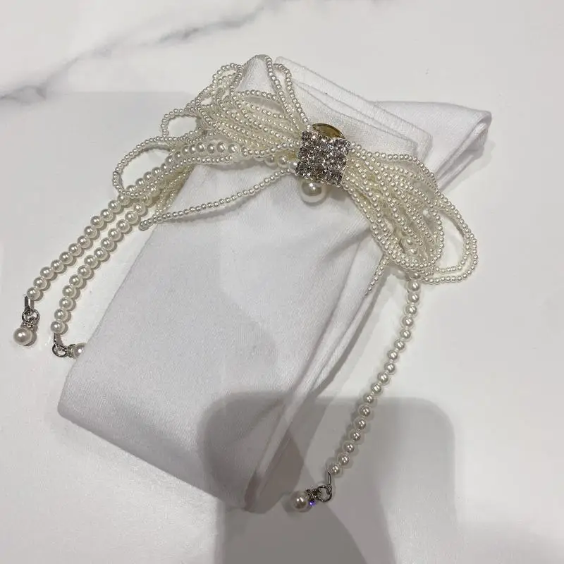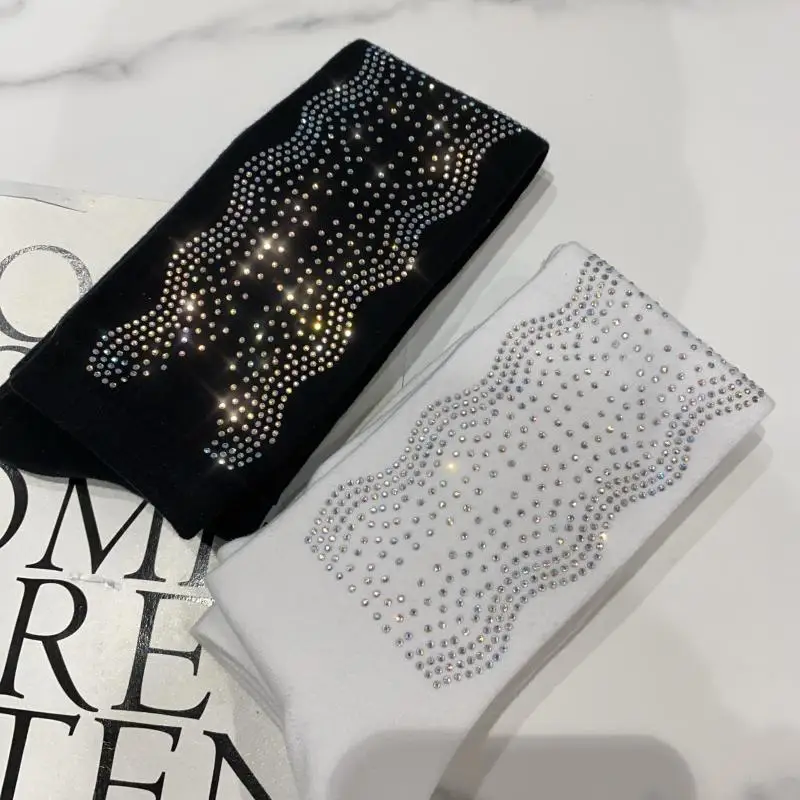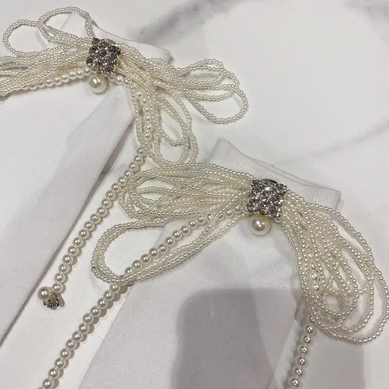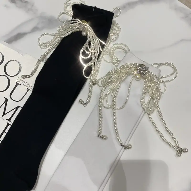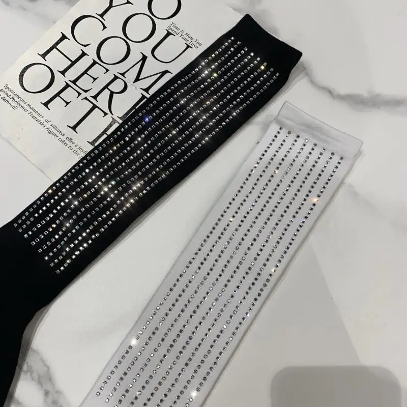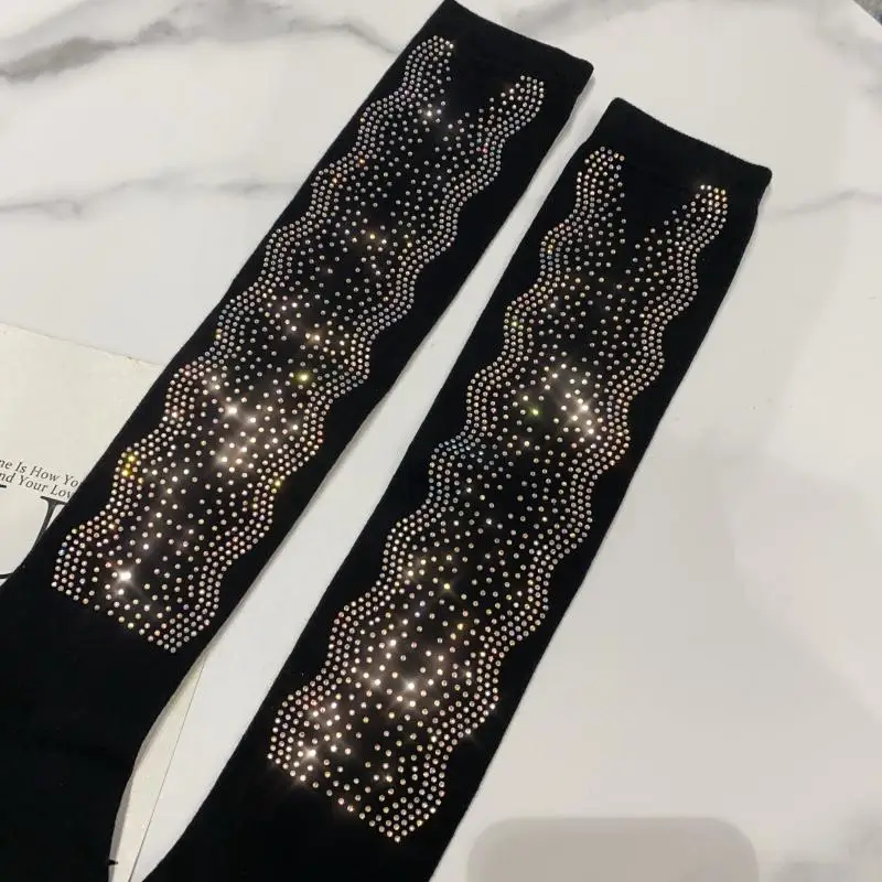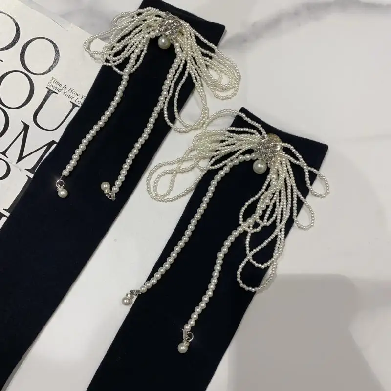 2022 Autumn Spring New Fashion Water Drill Rhinestone Bow Socks Women Girls Hot Drill Diamond Tassel High Stockings Cotton Socks