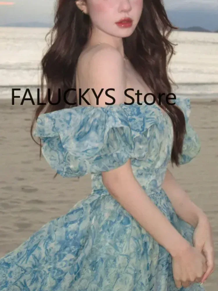 2023 Summer Elegant Evening Party Dress Short Puff Sleeve Khaki Print Organza Women Floor-Length Overlength Princess Long Dress