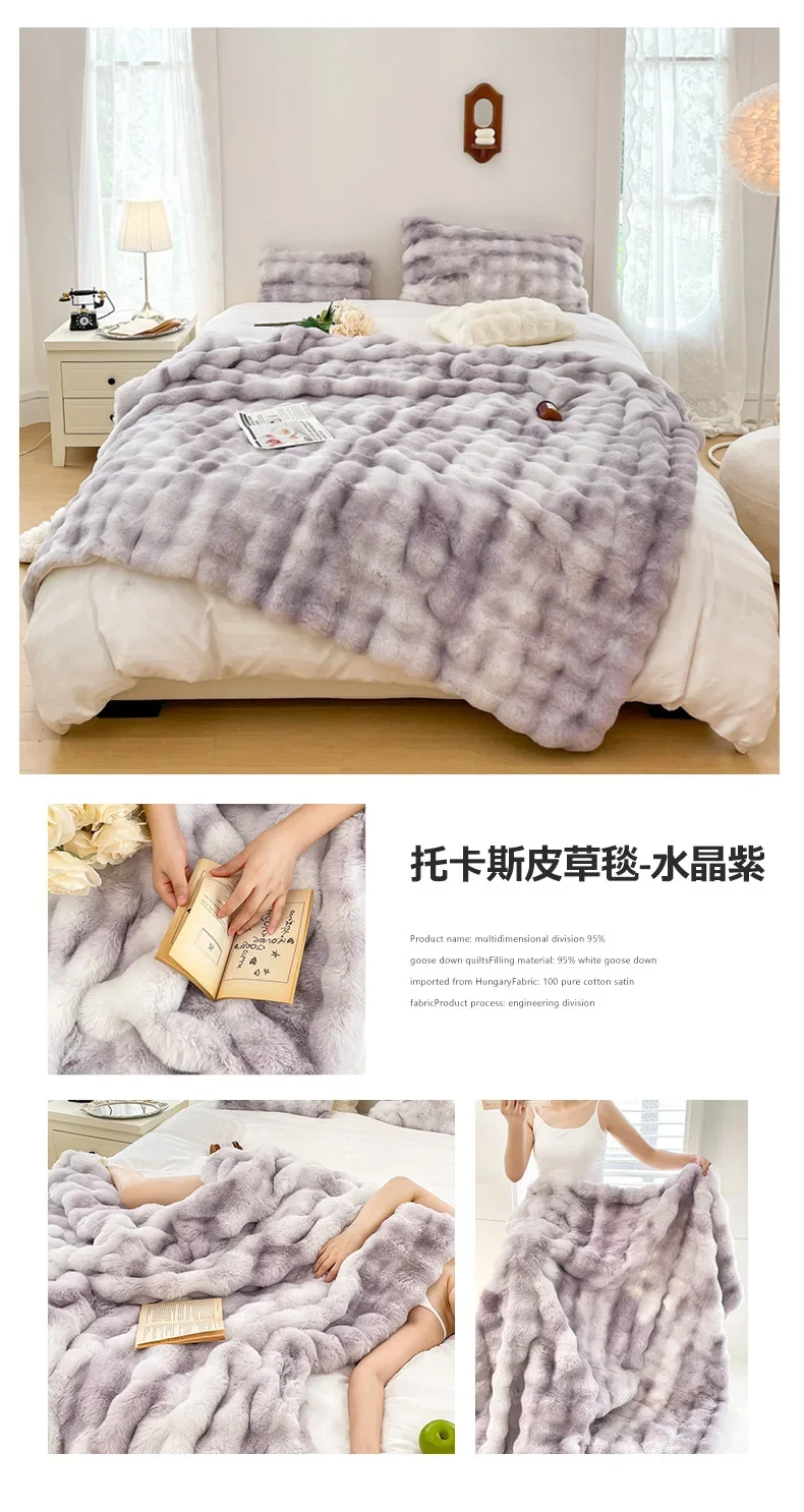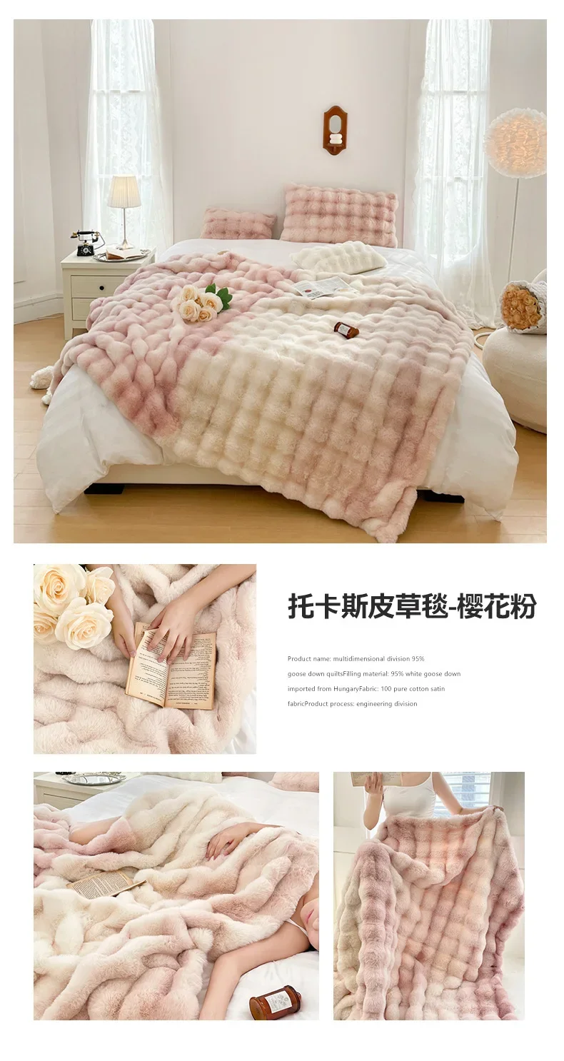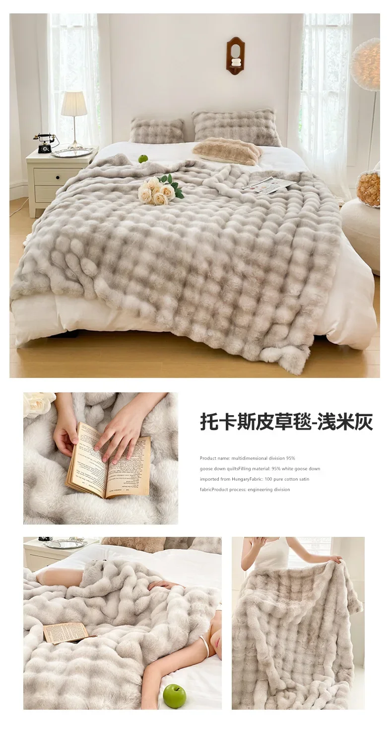 2024 New Tokasfur Grass Blanket Rabbit Plush Blanket Long Fur Office Shawl Blanket
