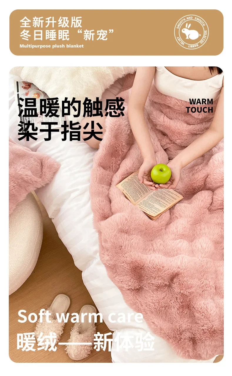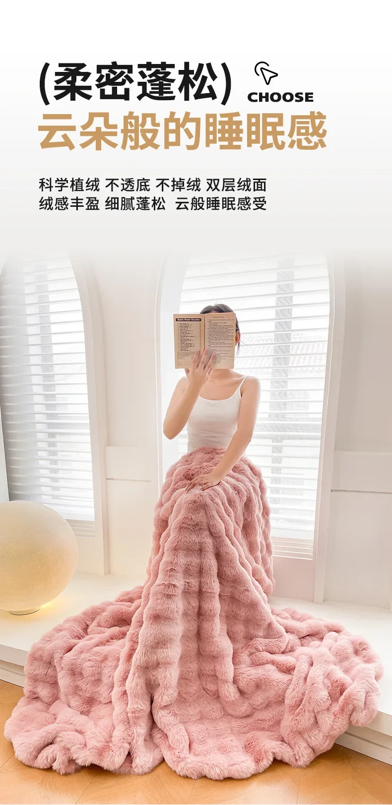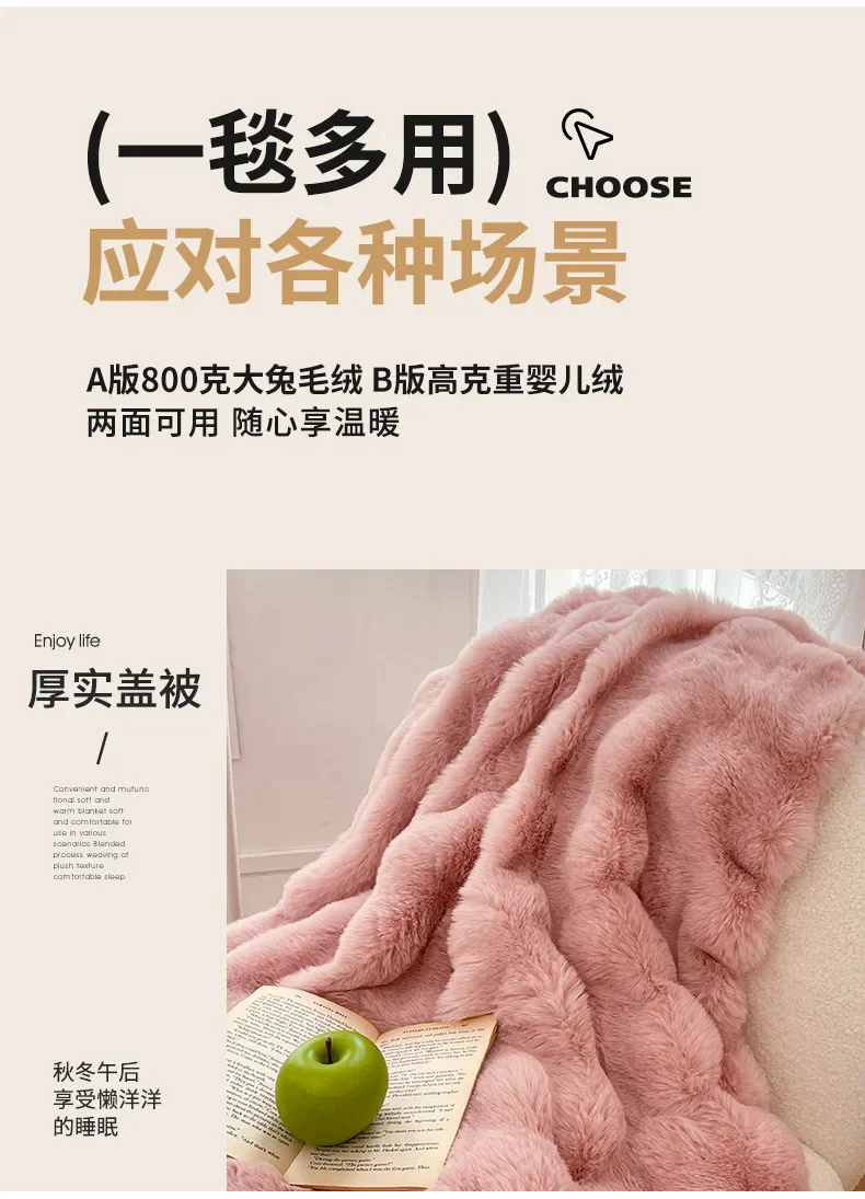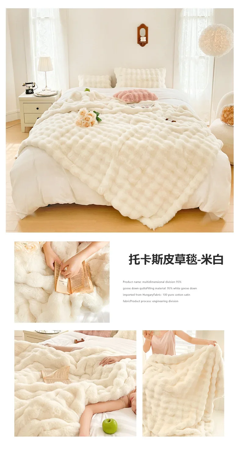 2024 New Tokasfur Grass Blanket Rabbit Plush Blanket Long Fur Office Shawl Blanket