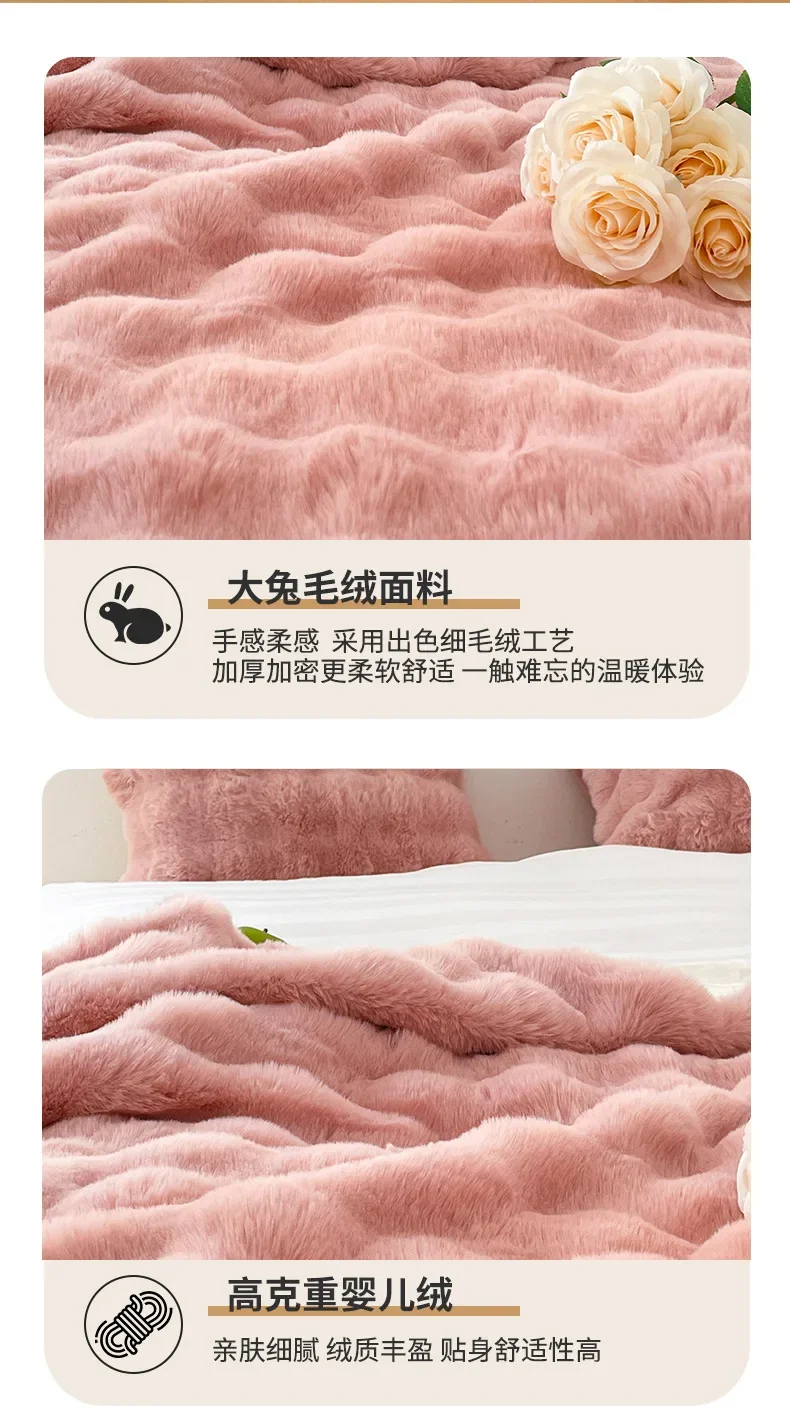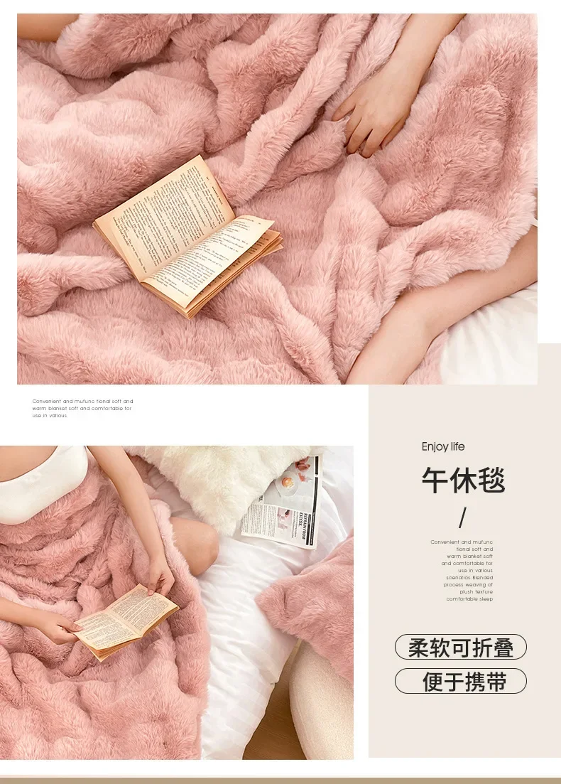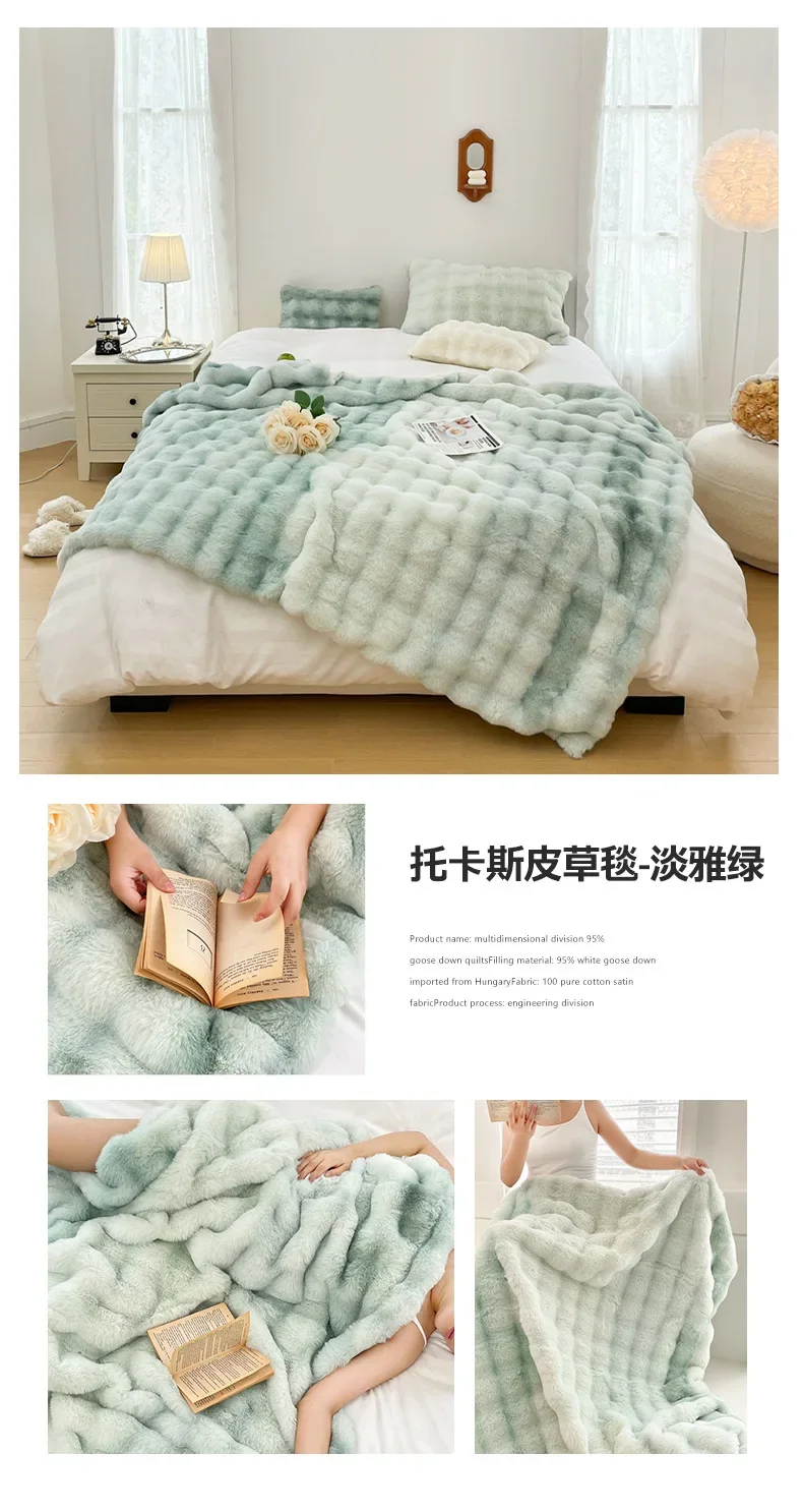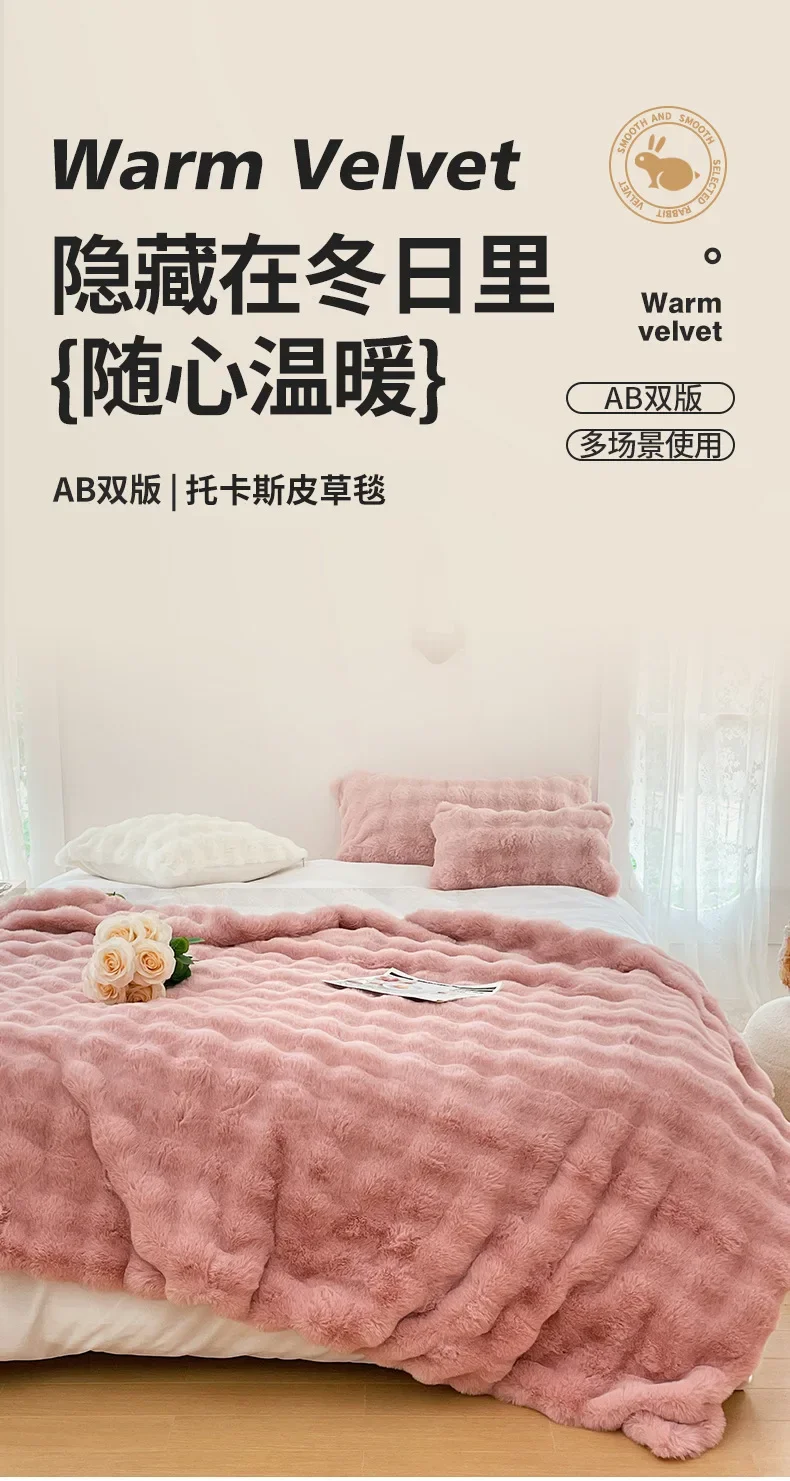 2024 New Tokasfur Grass Blanket Rabbit Plush Blanket Long Fur Office Shawl Blanket