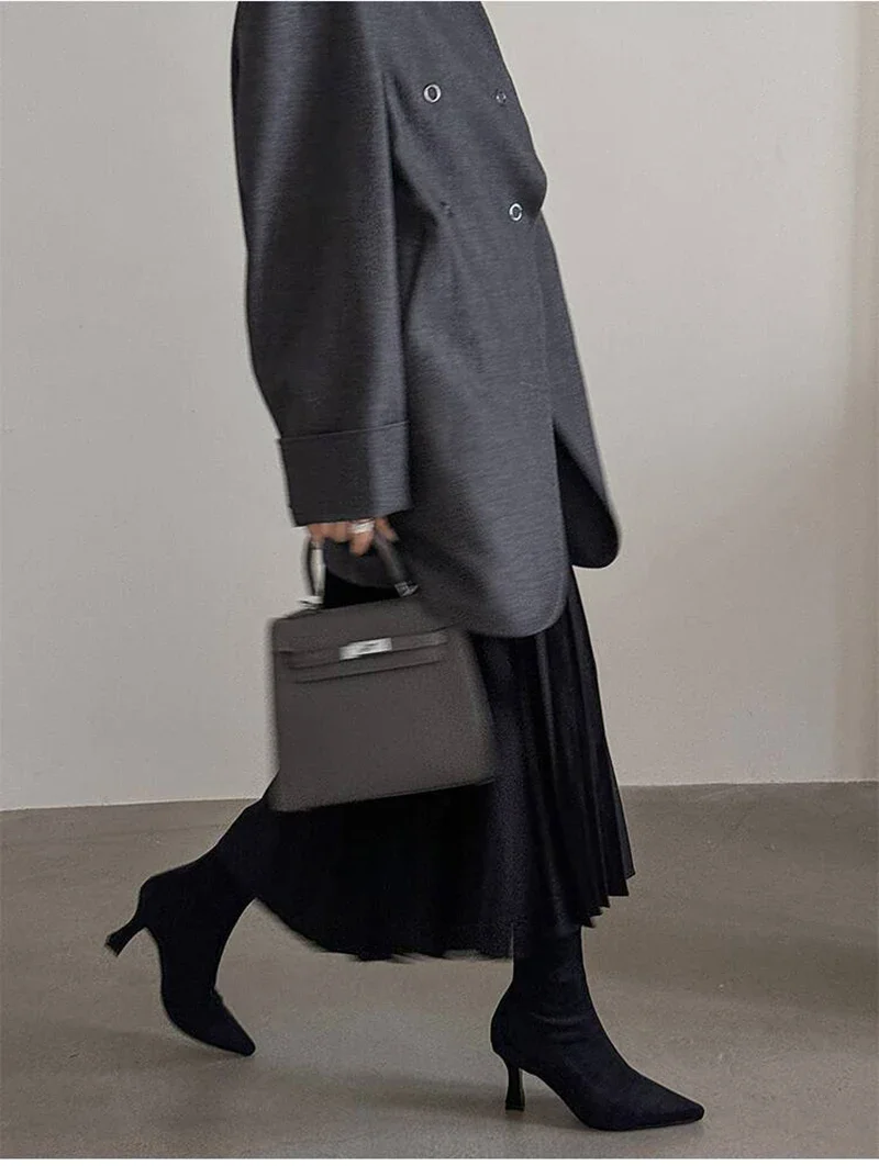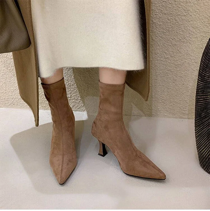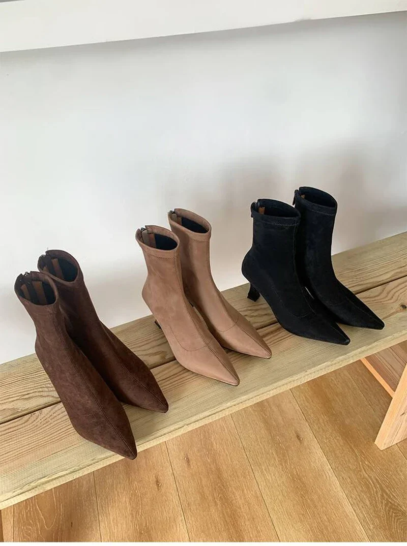 2024 Vintage Women Ankle Boots Fashion Pointed Toe Shoes Autumn Winter High Heel Ladies Elegant Stretch Slim Short Booties
