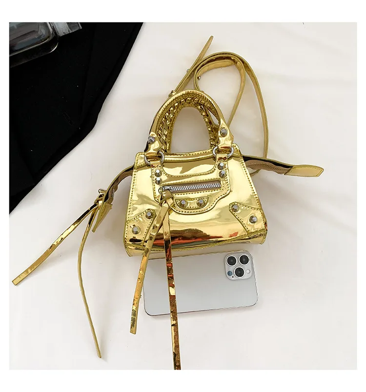 2025 New Korean Fashion Square Bag, Studded PU Leather Crossbody Shoulder Bag for Women, Viral Shiny Instagram Purse