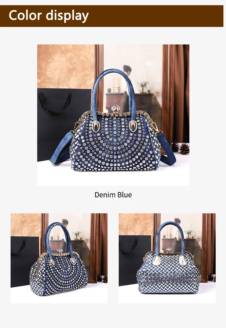 2025 Women's Fashion Washed Denim Tote Bag Large-Capacity Elegant Diamond-Etched Single-Shoulder Crossbody Bag