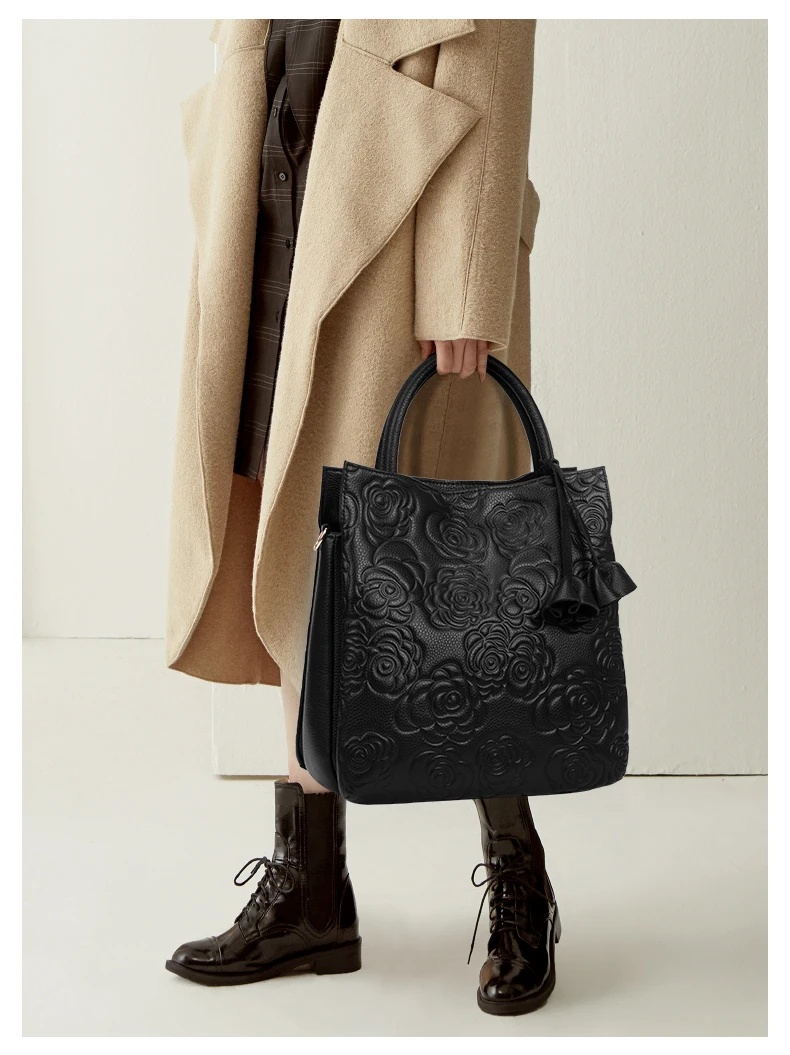 Aidrani Fashion Genuine Leather Women's Bag Large Capacity Women's Handbag Black Embossed Cowhide Shoulder Bag