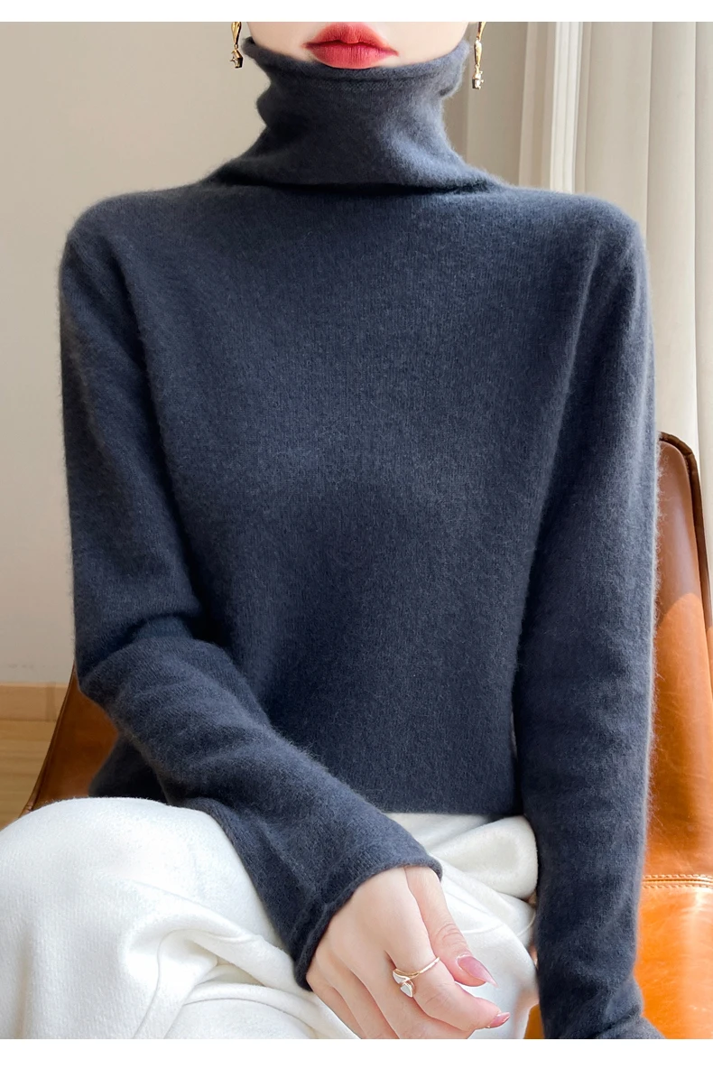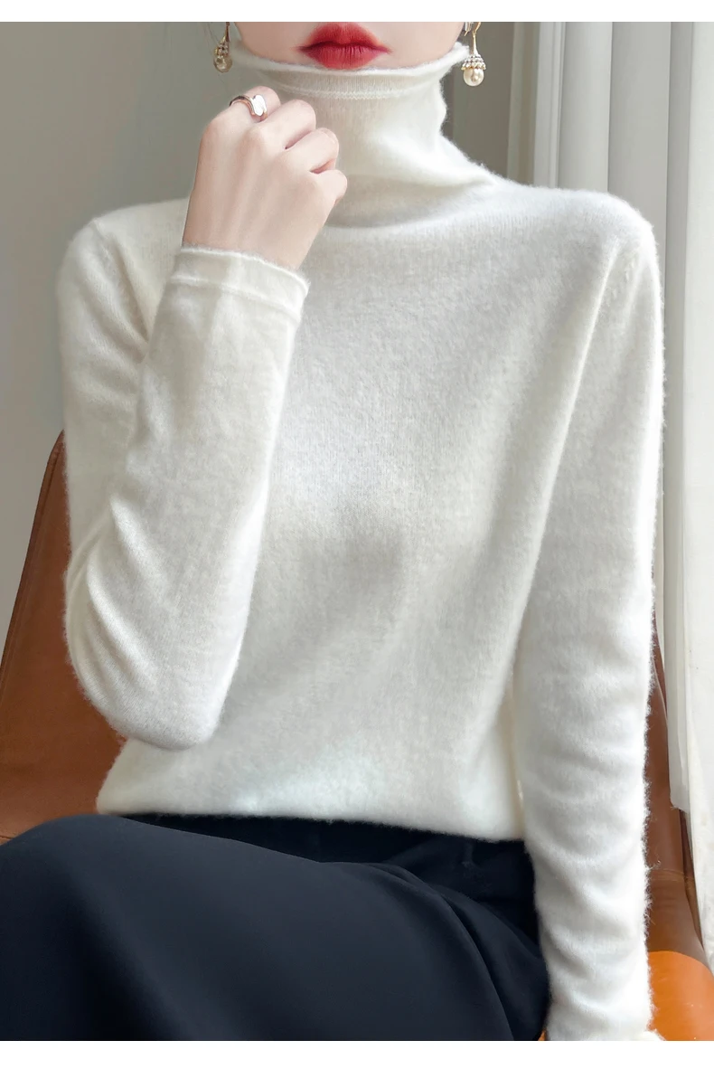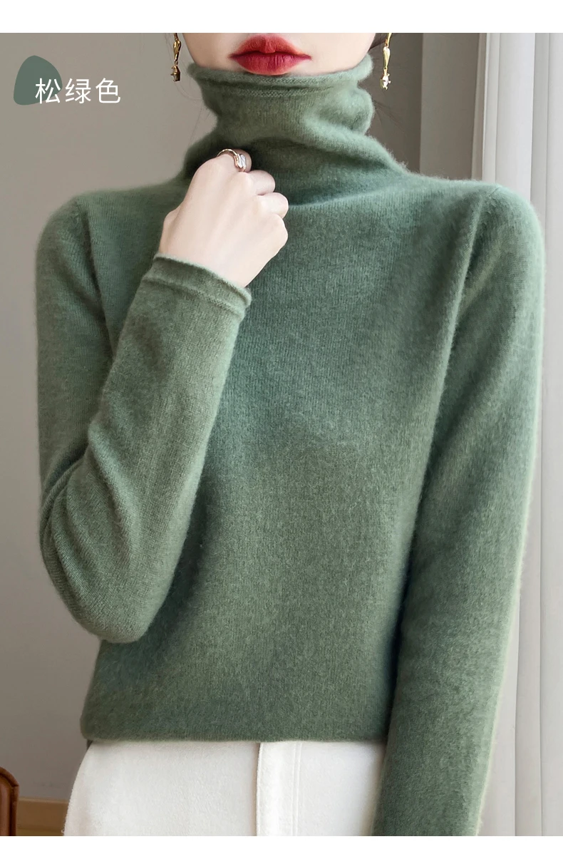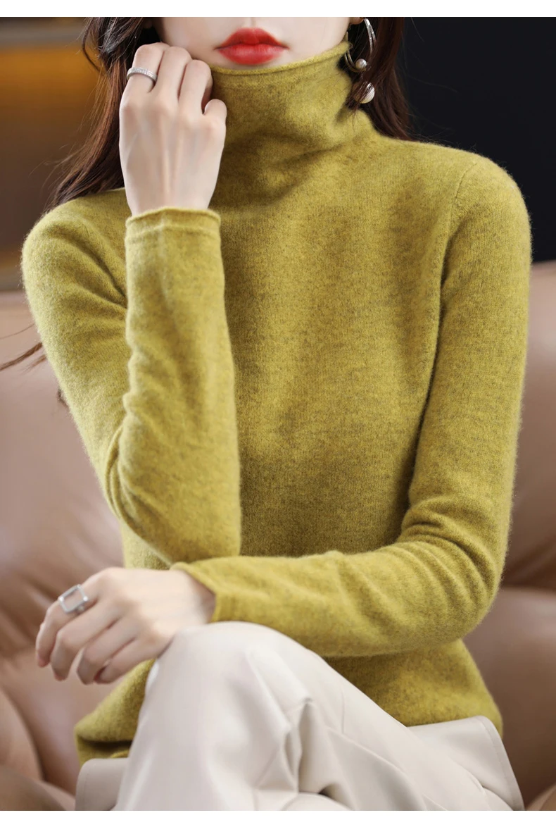 Turtleneck 100% Wool Sweater Women Autumn Winter Elegent Sweater Solid Color Long Sleeve Top Fashion Knit Female Pullover Pull Jumper