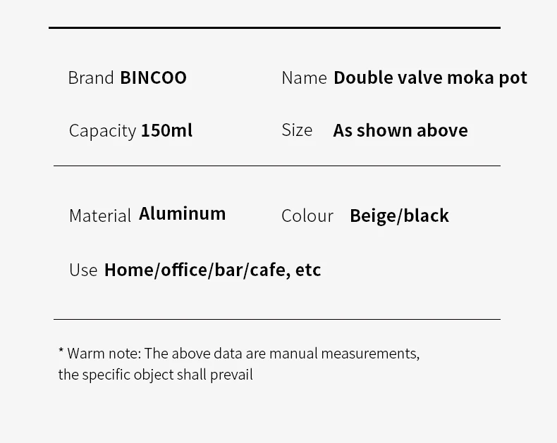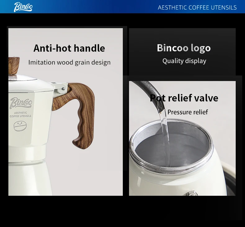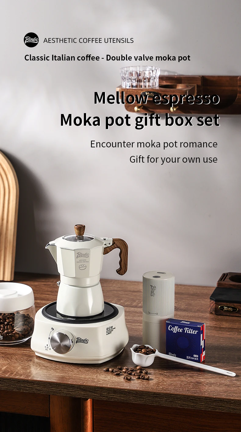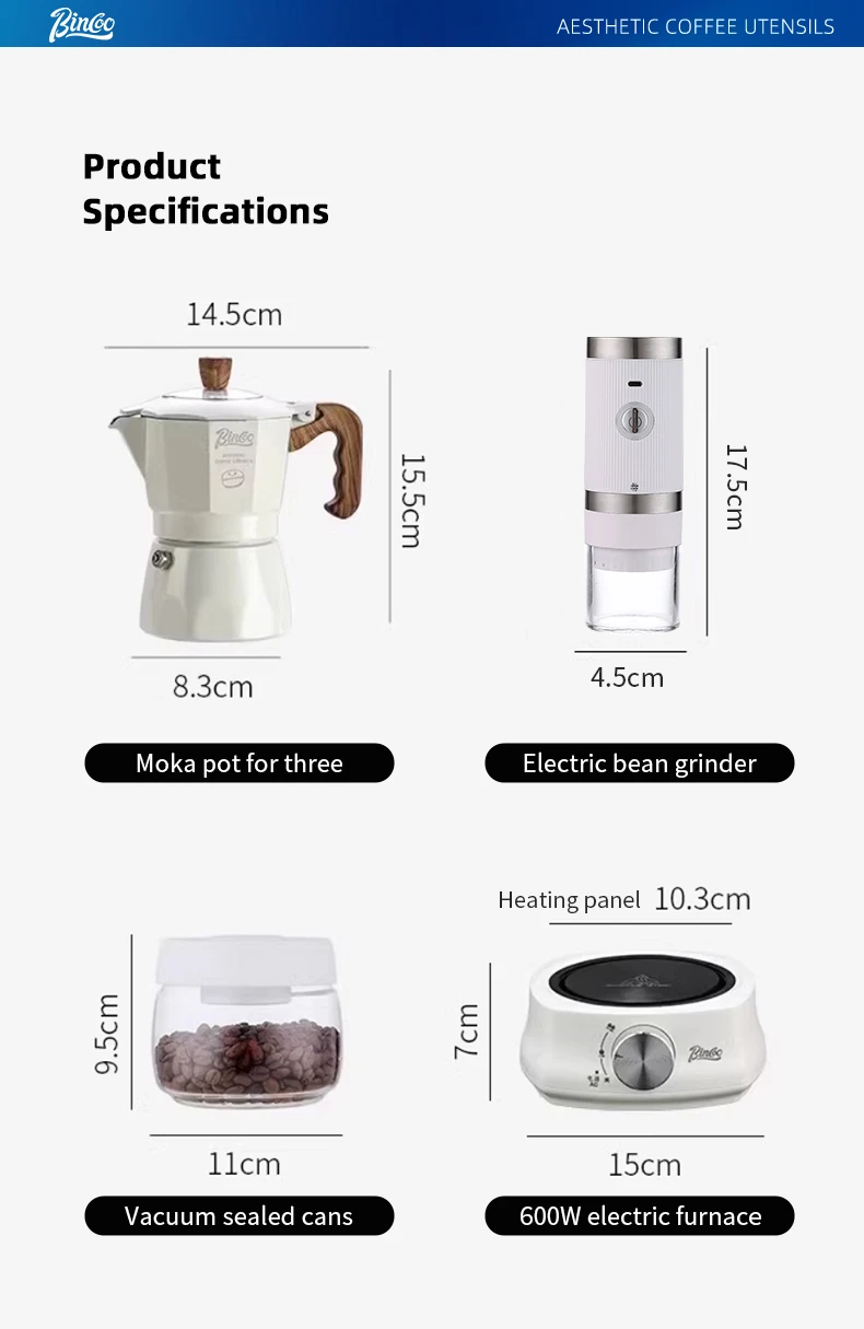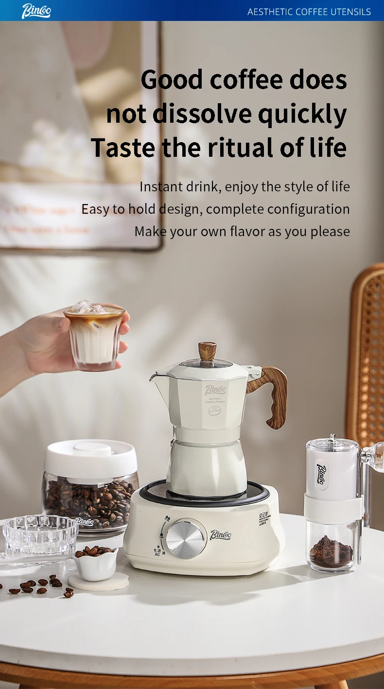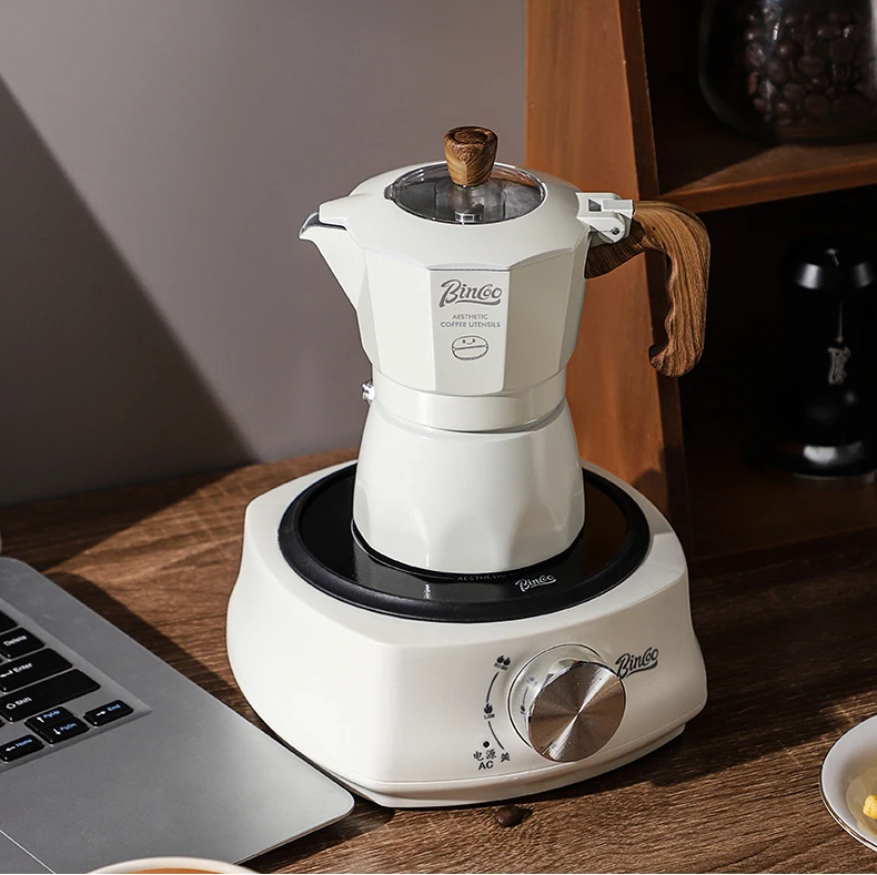 Bincoo Moka Pot Double Valve Italian Cafe Brewing Tool Mini Electric Ceramic Stove Heating Suitable for Mocha Pot 600W 220V