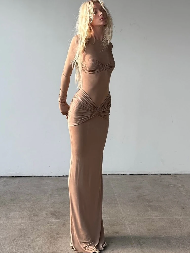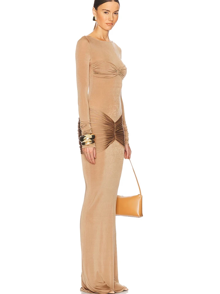 ✨ What is it - Elevate your winter wardrobe with the exclusive JULISSA MO Elegant Round Neck Ruched Maxi Dress. This chic khaki long sleeve dress effortlessly combines grace and style, making it essential for every fashionable woman. Perfect for elegant winter evenings and special party occasions.