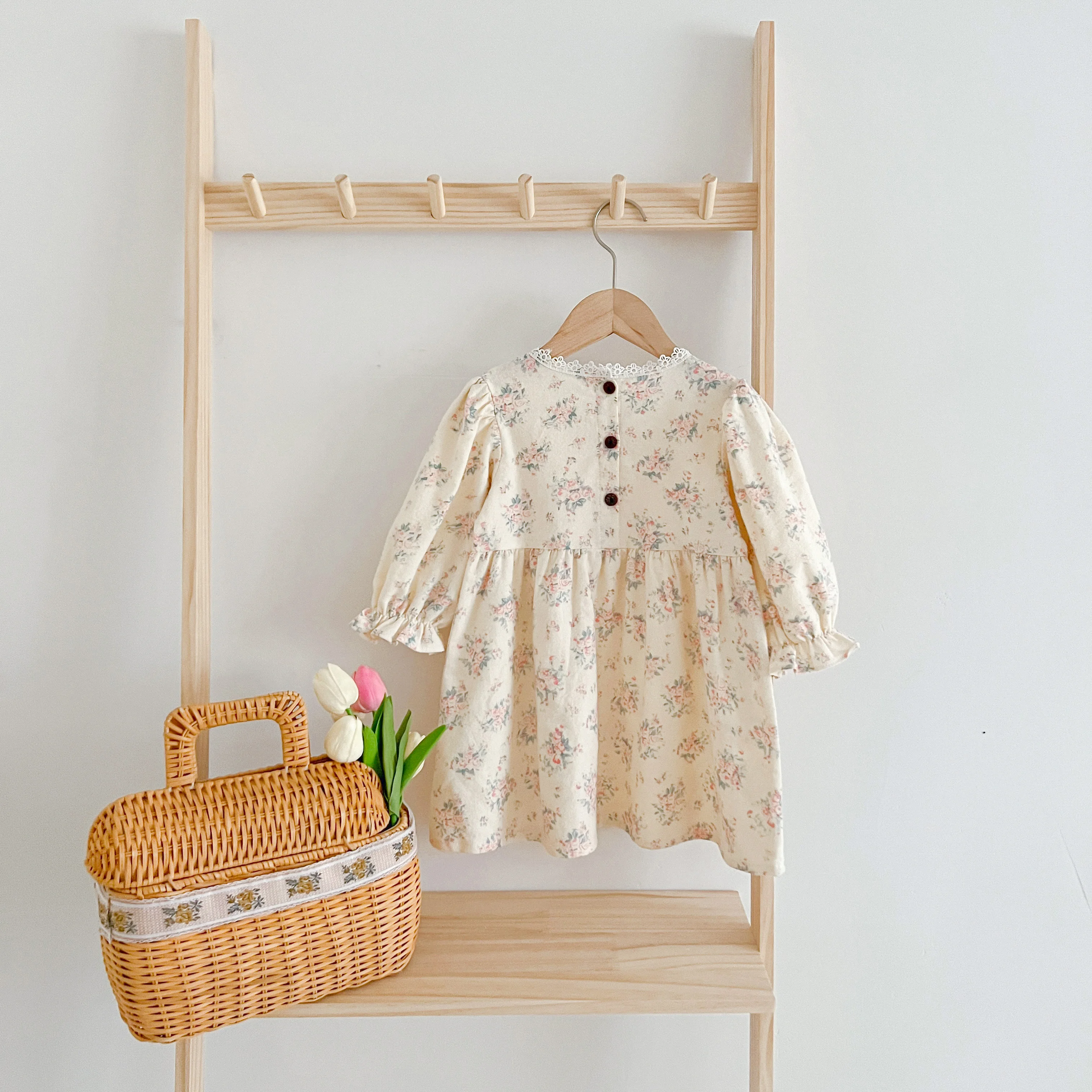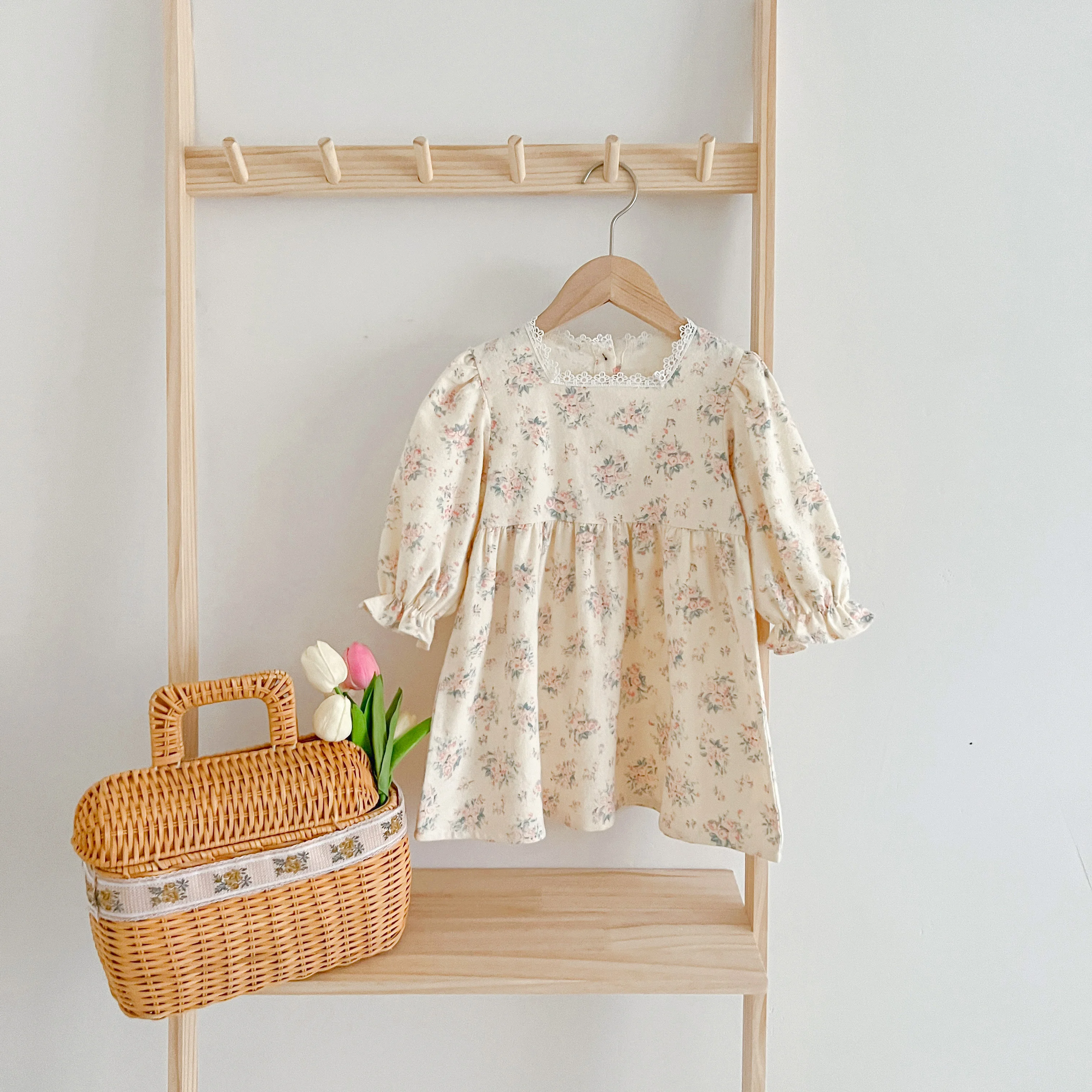 Children Clothes Dress Autumn Kids Baby Girls Dress Long Sleeve Sweet Flower Print Princess Dress Spring Casual Baby Girls Dress