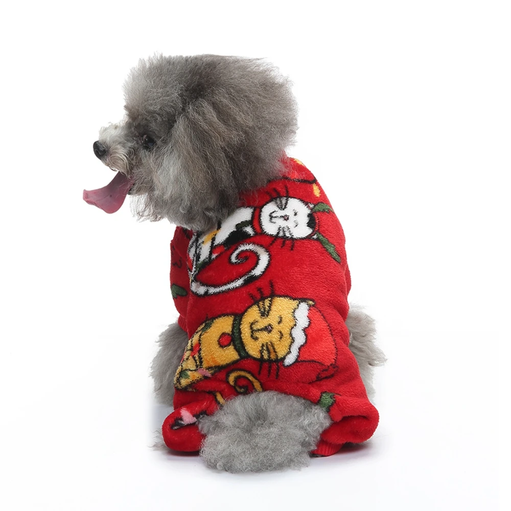 🎅 What is it - Get your furry friend ready for the festive season with our Warm Christmas Pajamas, designed specifically for small dogs and cats! Made from ultra-soft, thick fleece, these adorable jumpsuits keep your pet snug while flaunting a charming holiday print to celebrate the holidays in style.