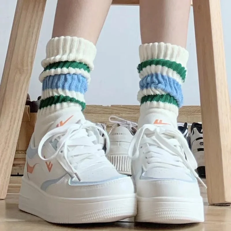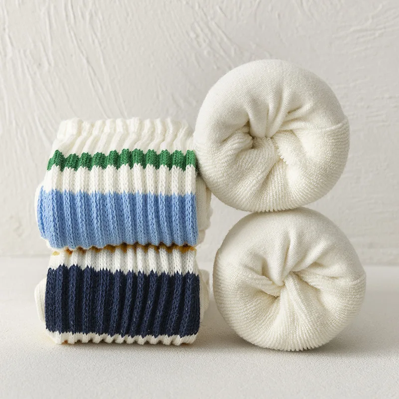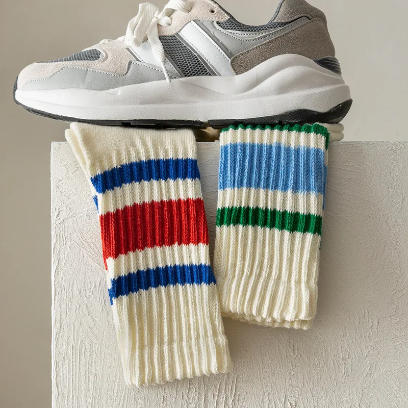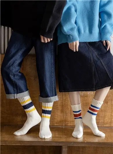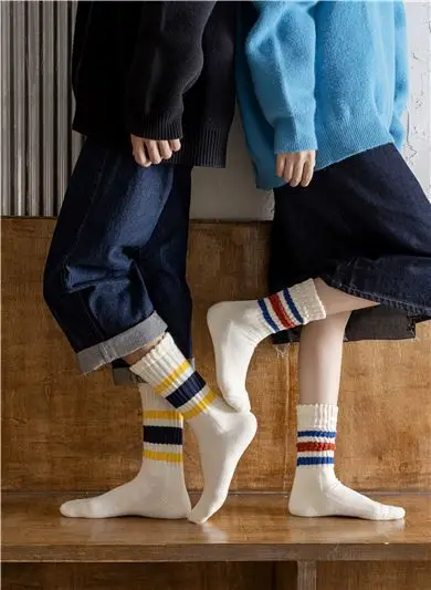 Cityboy Men's Striped Basketball Medium Tube Socks Vintage Unisex Women Couple Cottons Japanese Thick Towel Bottom Sports Socks