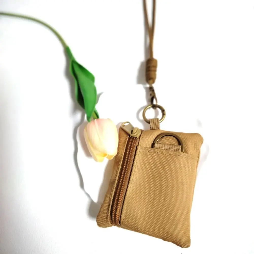 Durable Square Hanging Neck Coin Purse Casual Nylon Oxford Cloth Mini Wallet Zipper with Lanyard Small Card Holder Men
