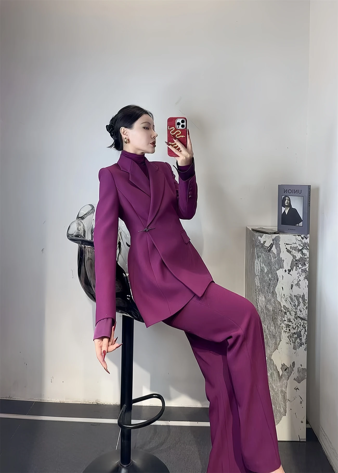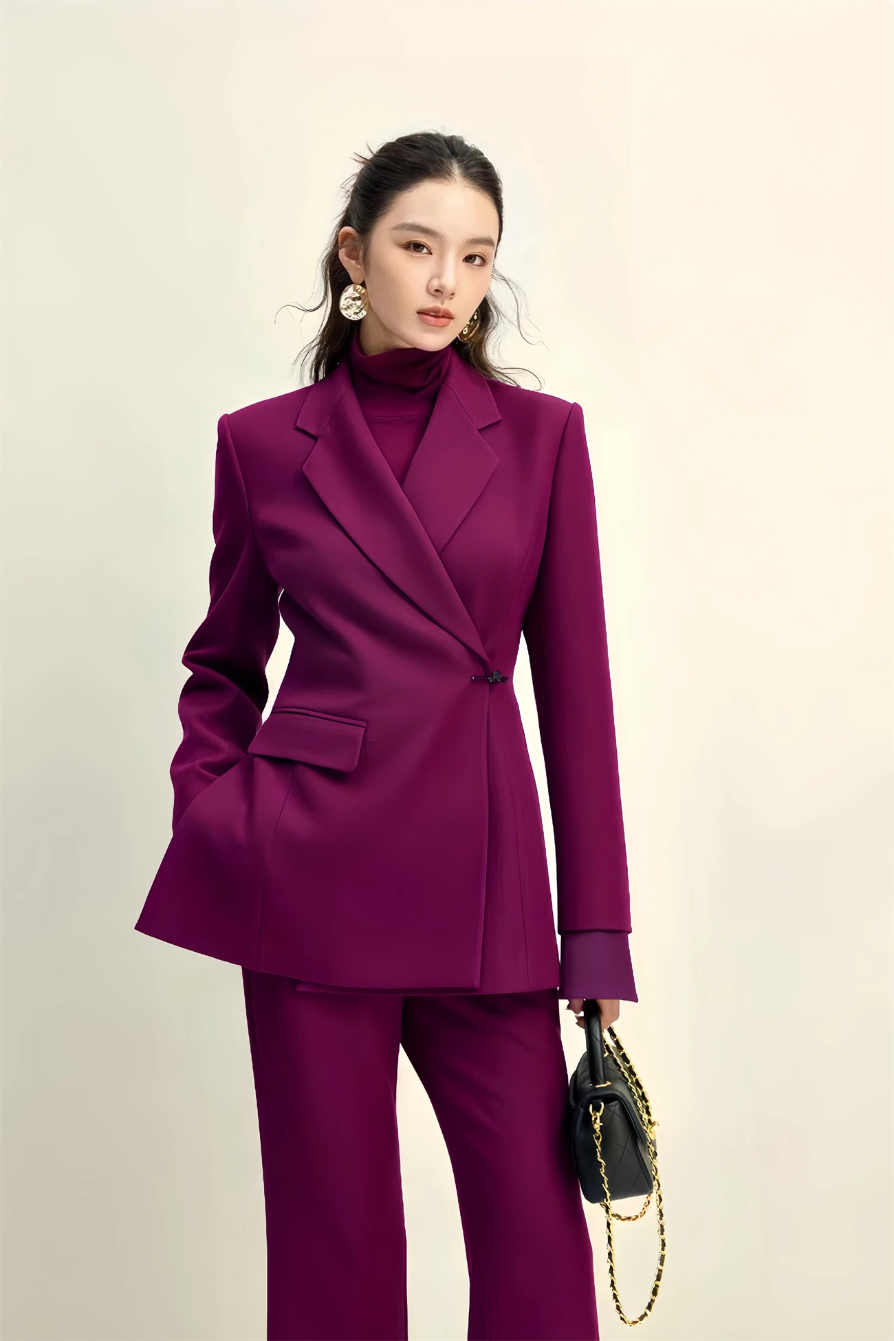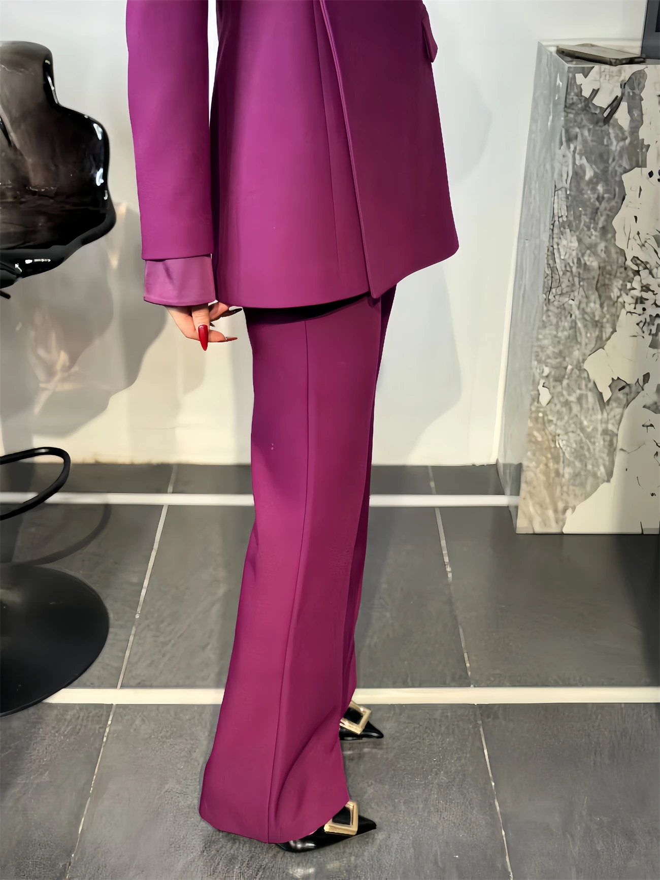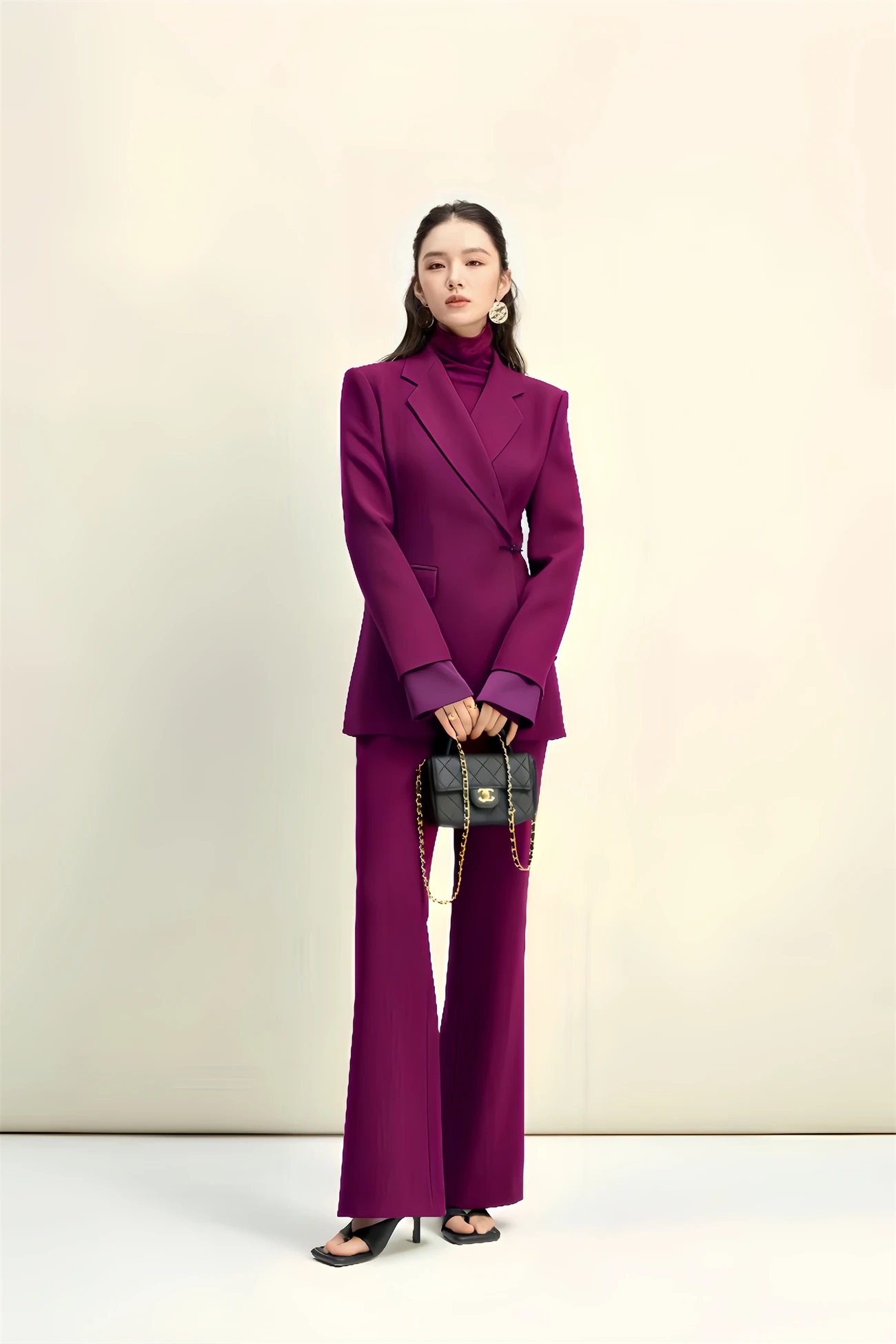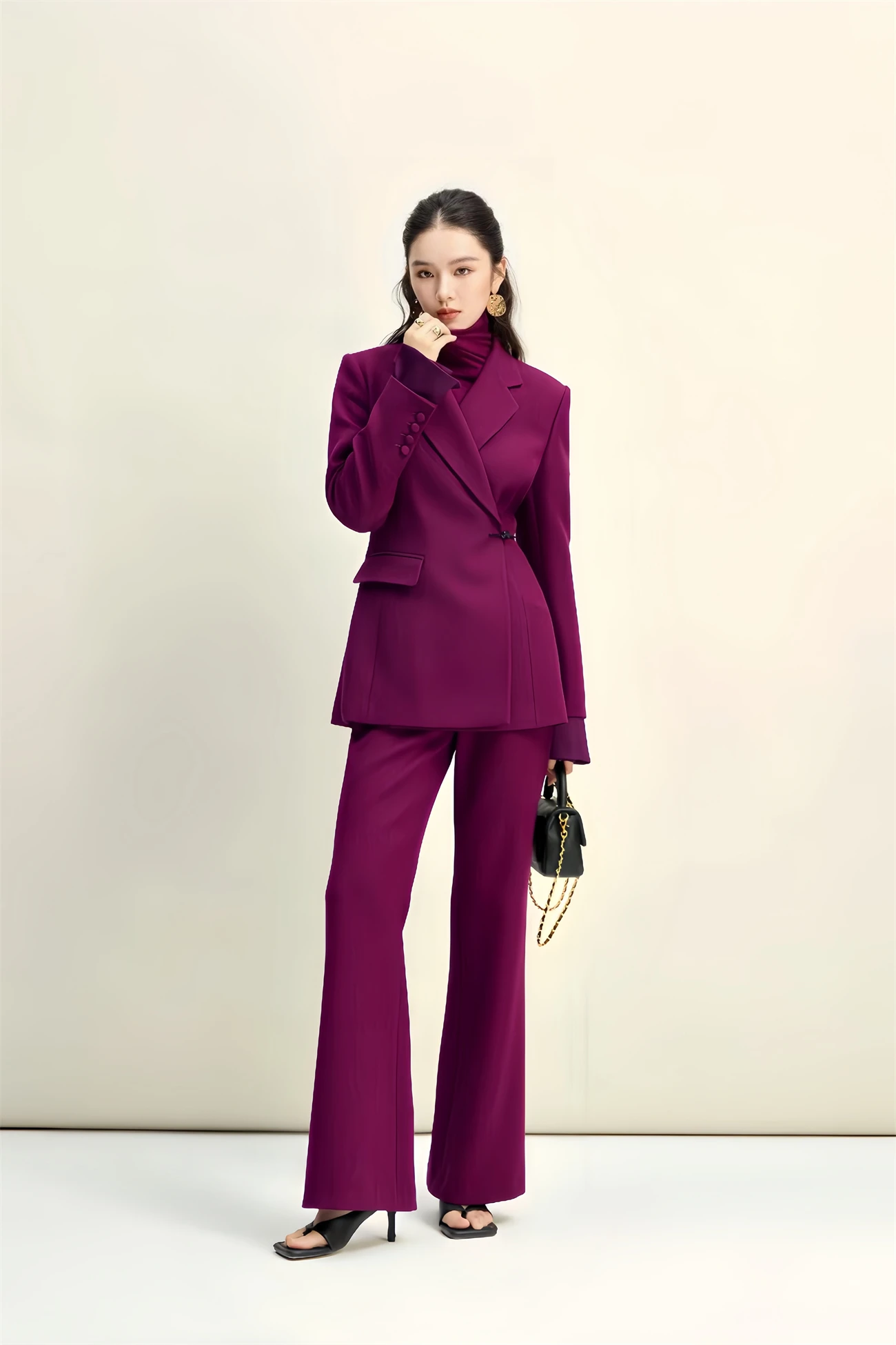 Ele Women's Slim Fit Suit Two-Piece Set Autumn Winter Purple Flared Pants Chinese Sle Faionable Casual Workwear