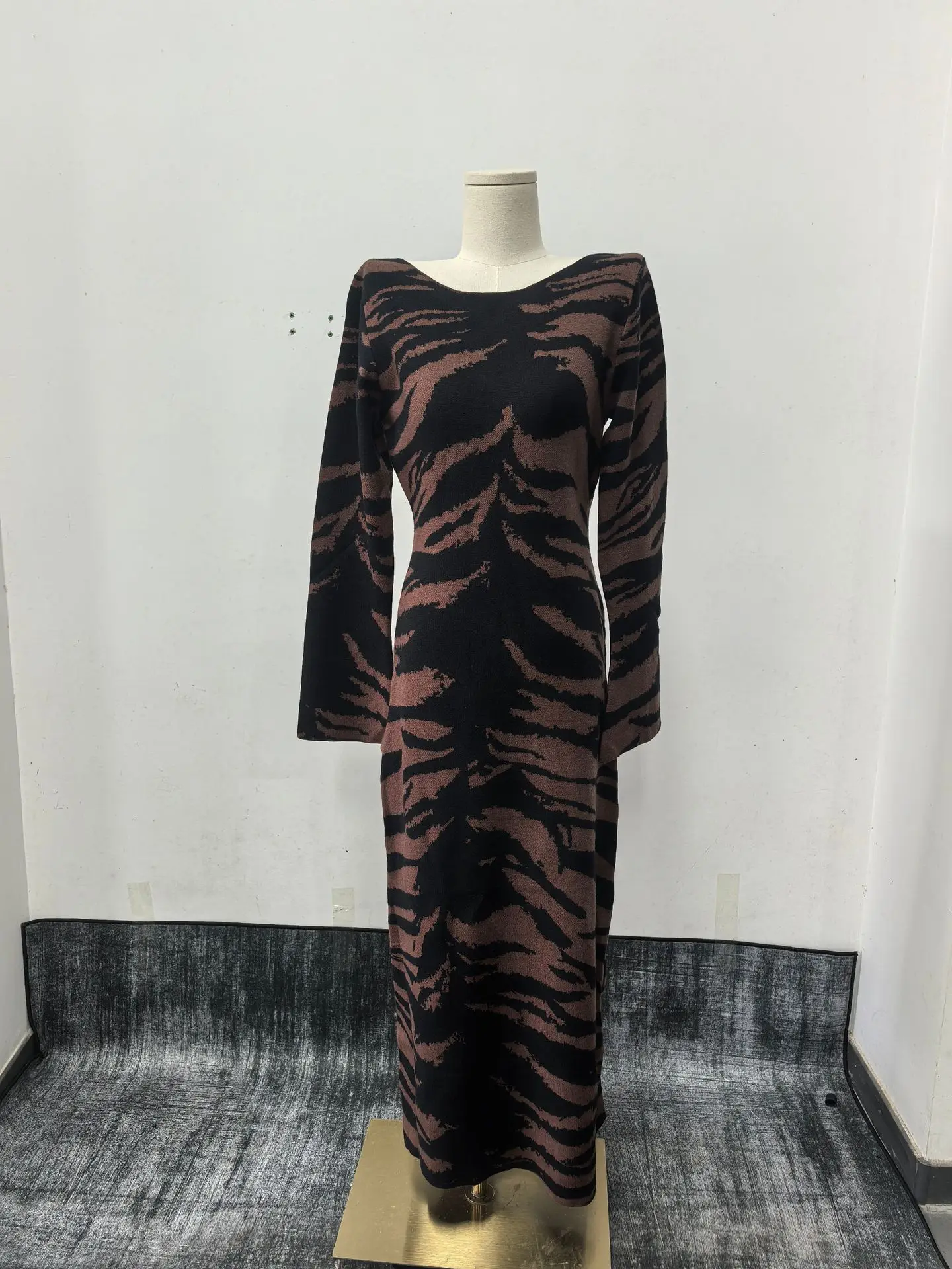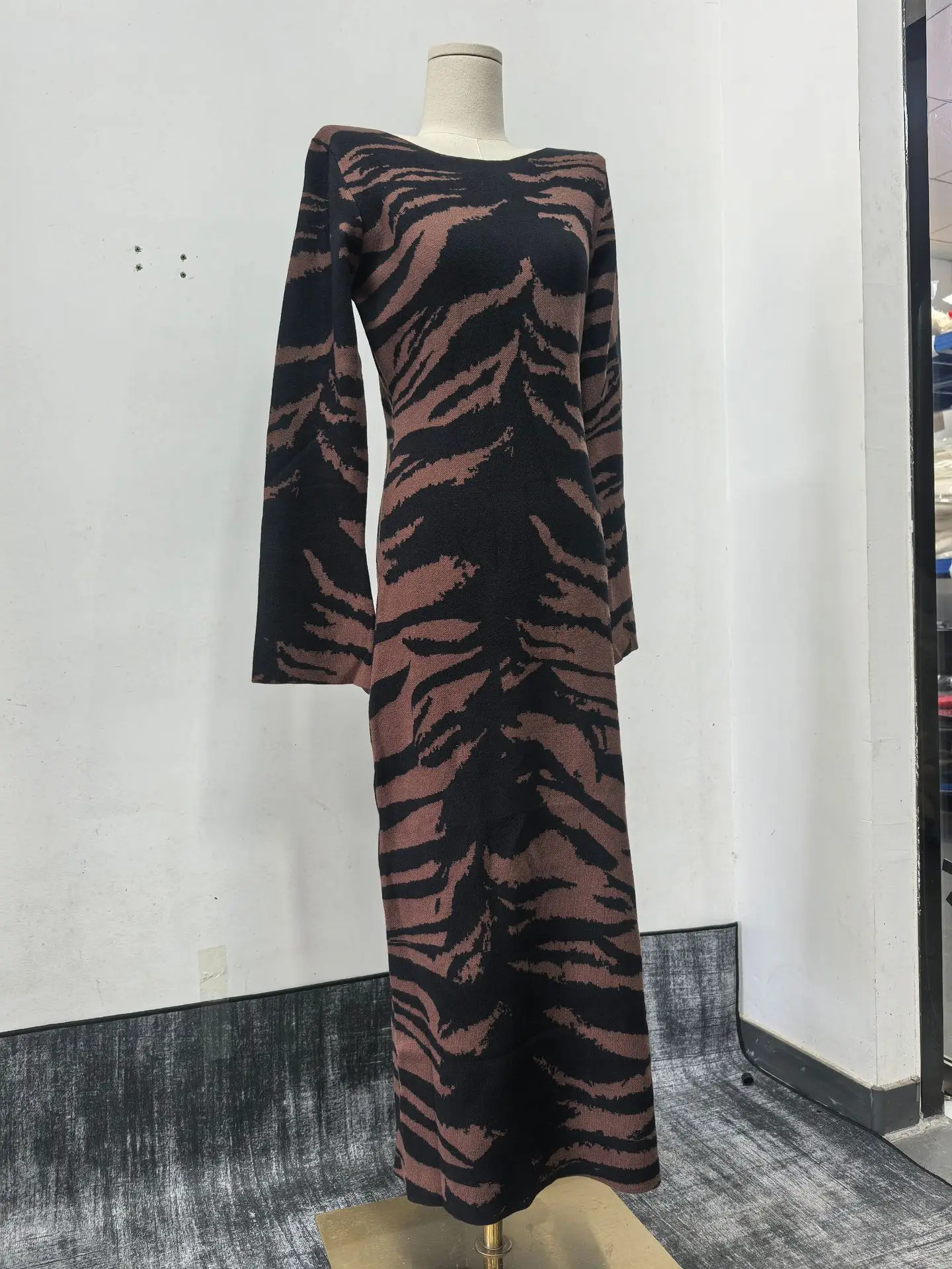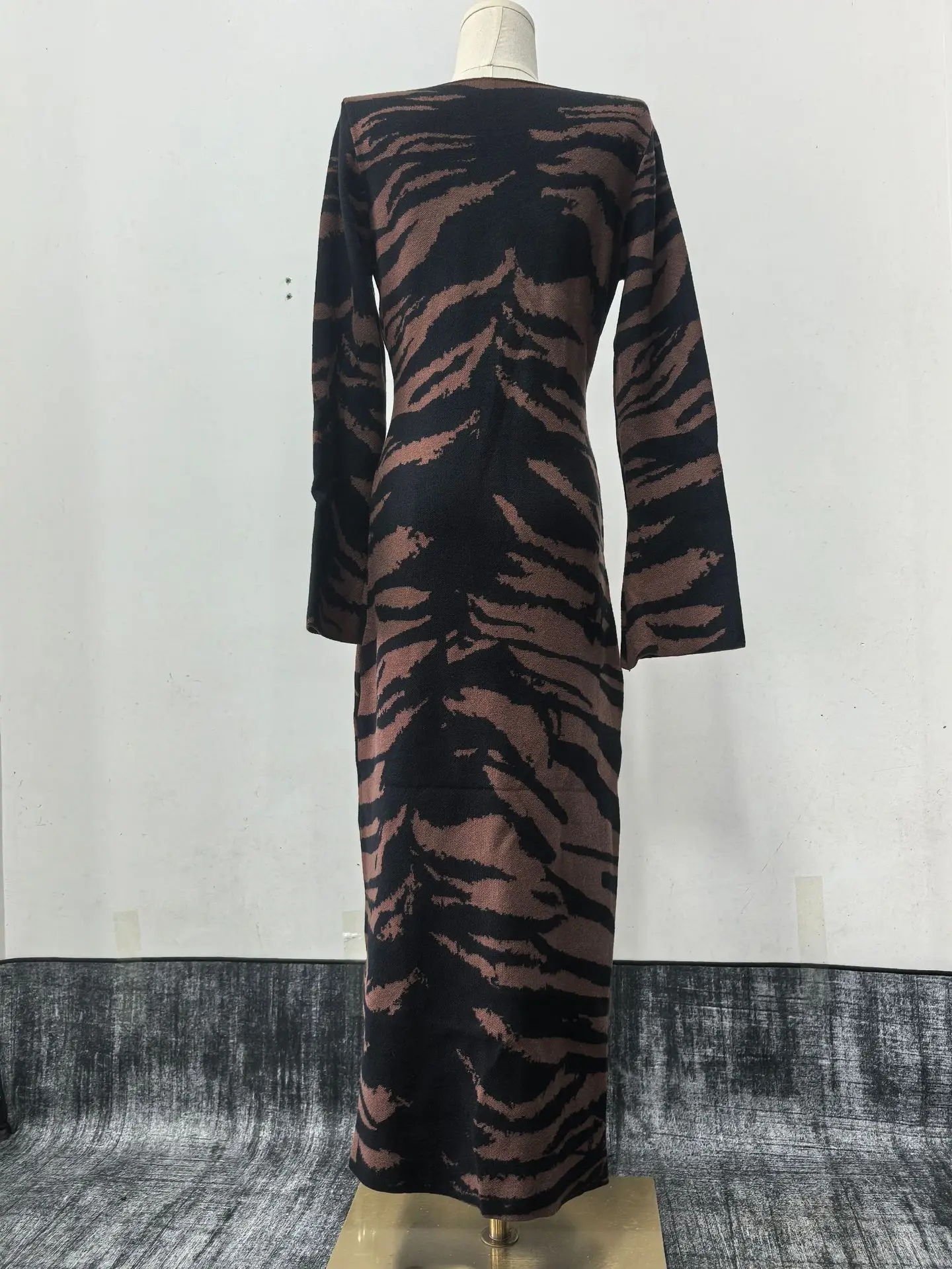 Elegant Dress French Party Dresses Temperament Vestidos Commuting Vestido Bodycon Slim Package Hip Long Sleeves Leopard Print