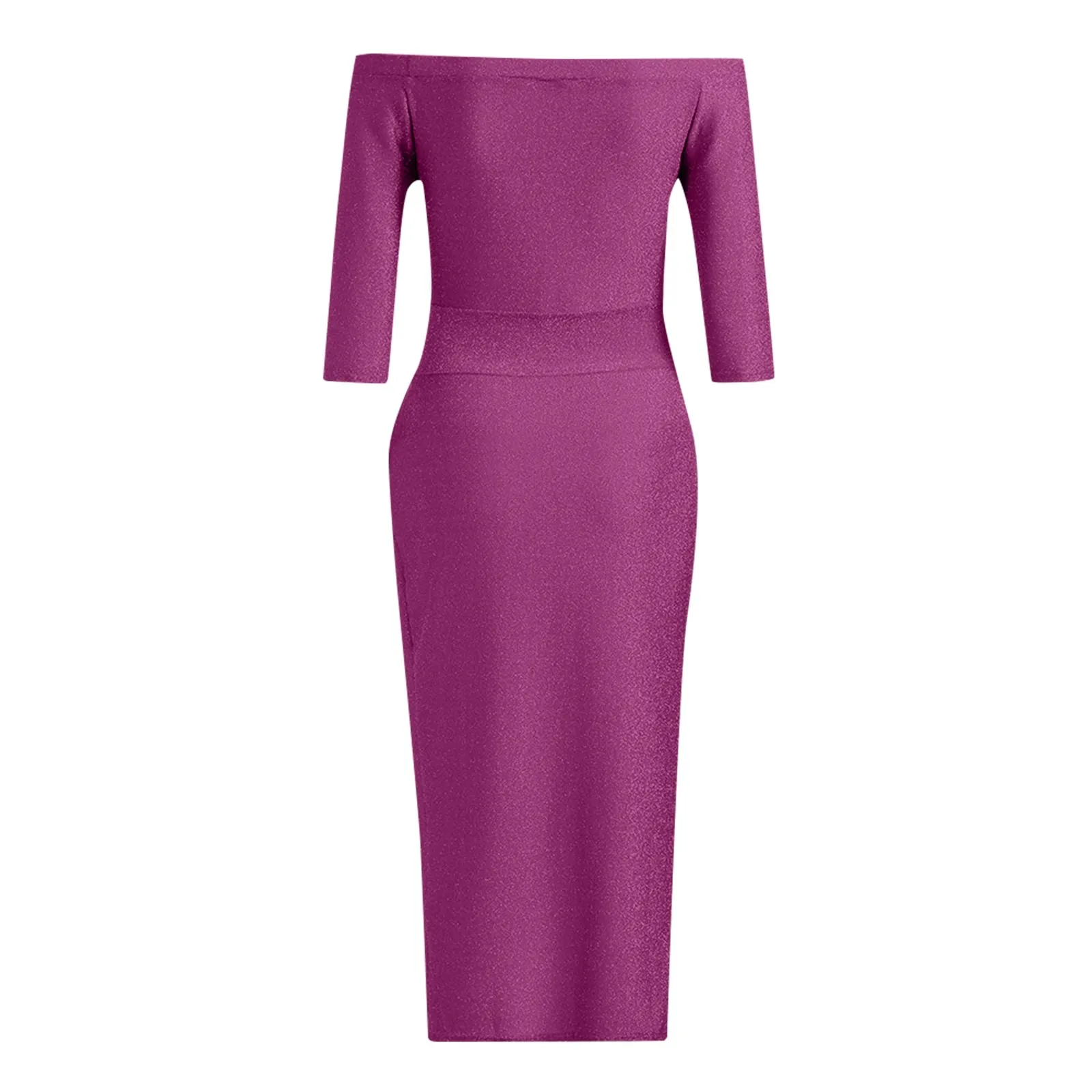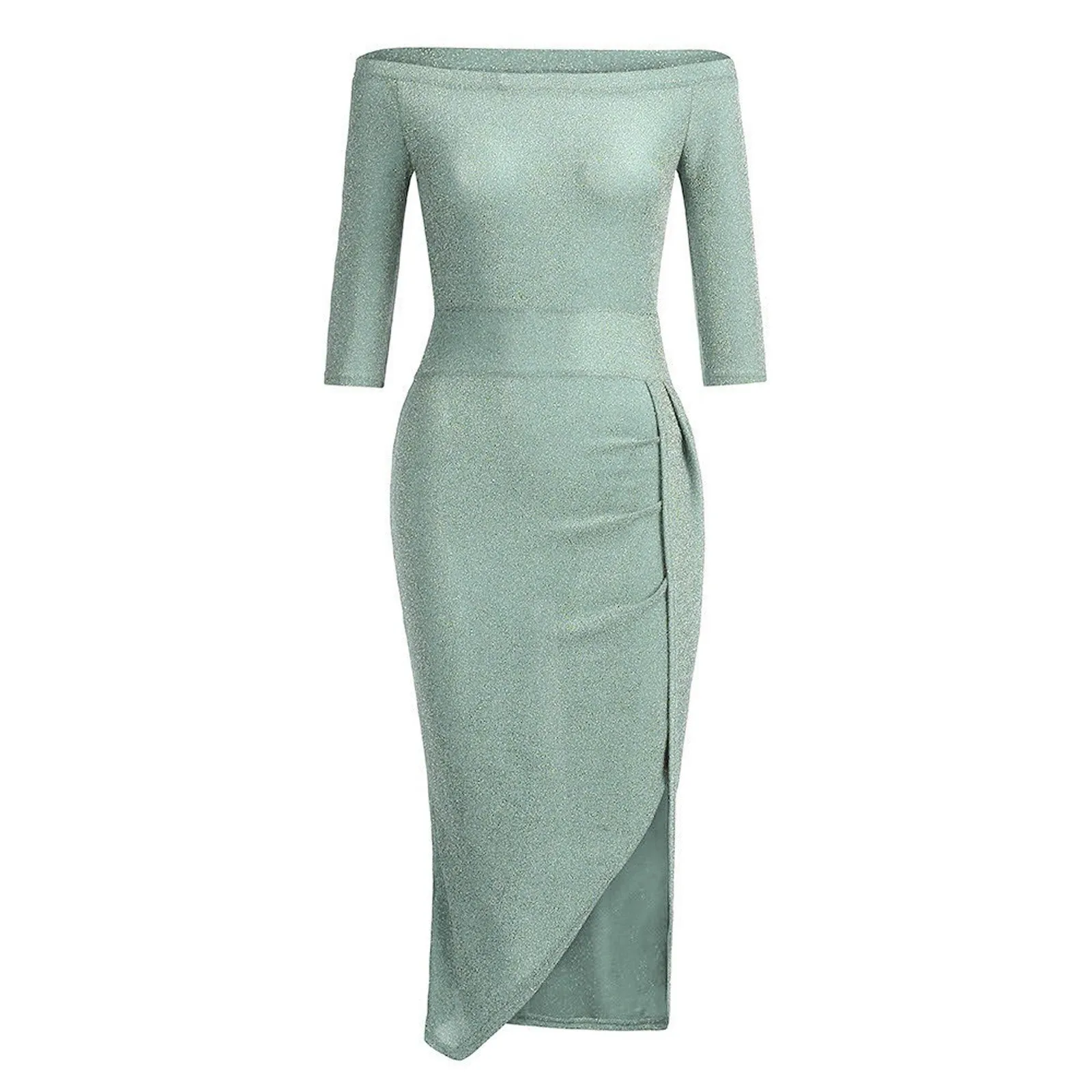 Elegant Midi Bodycon Dress Women Sexy Off-shoulder Side Slit Dress Solid Evening Party Dress Female Fashion Long Sleeve Dress