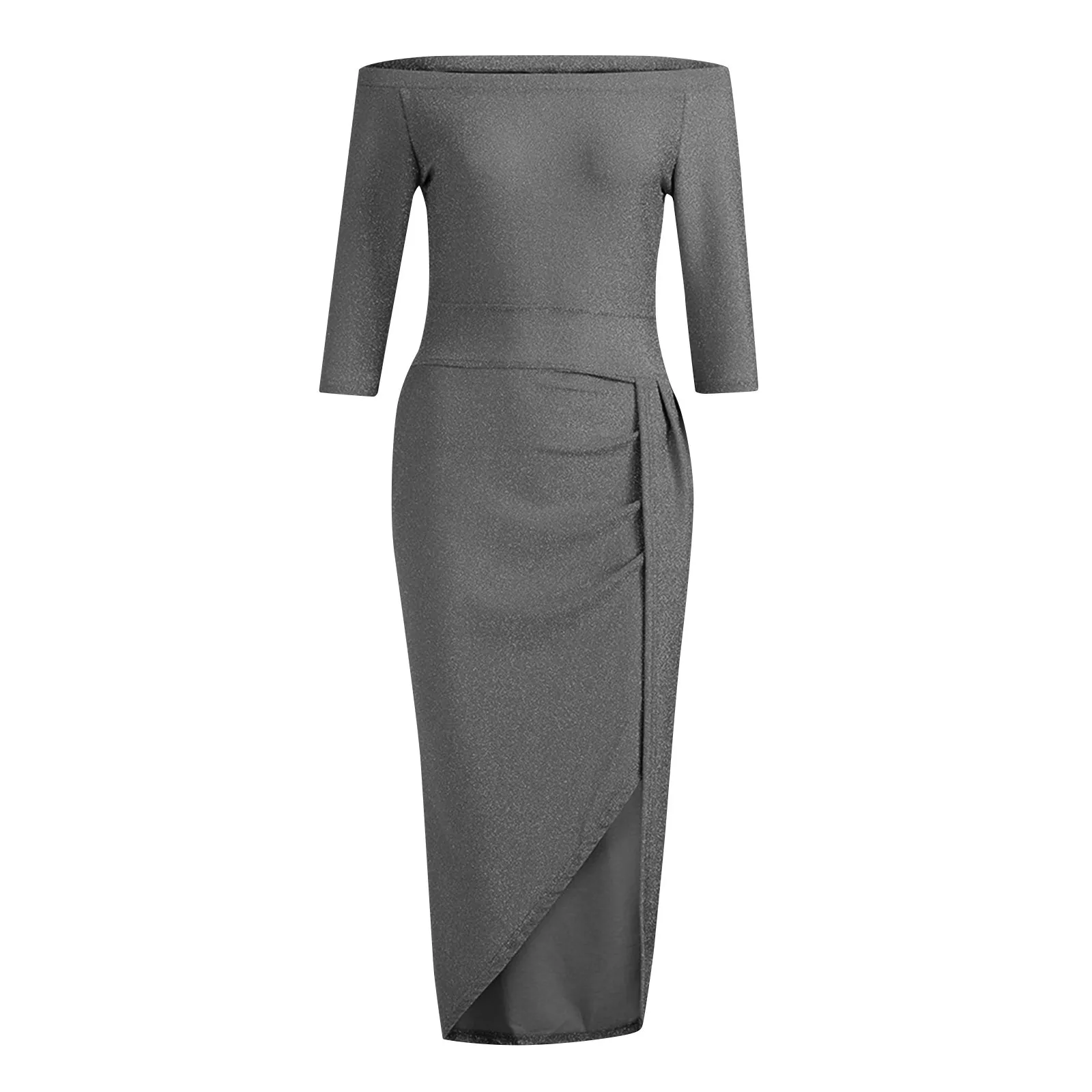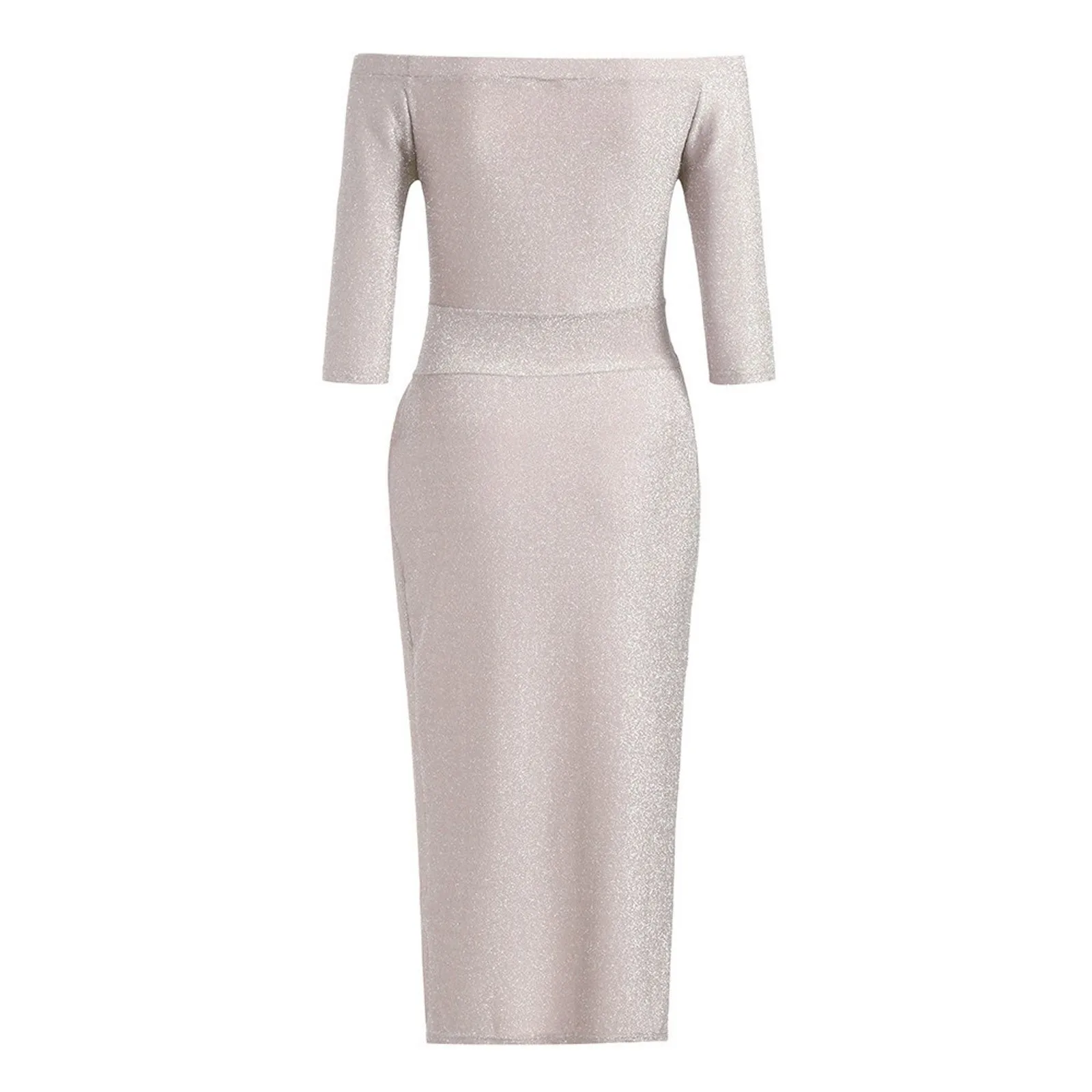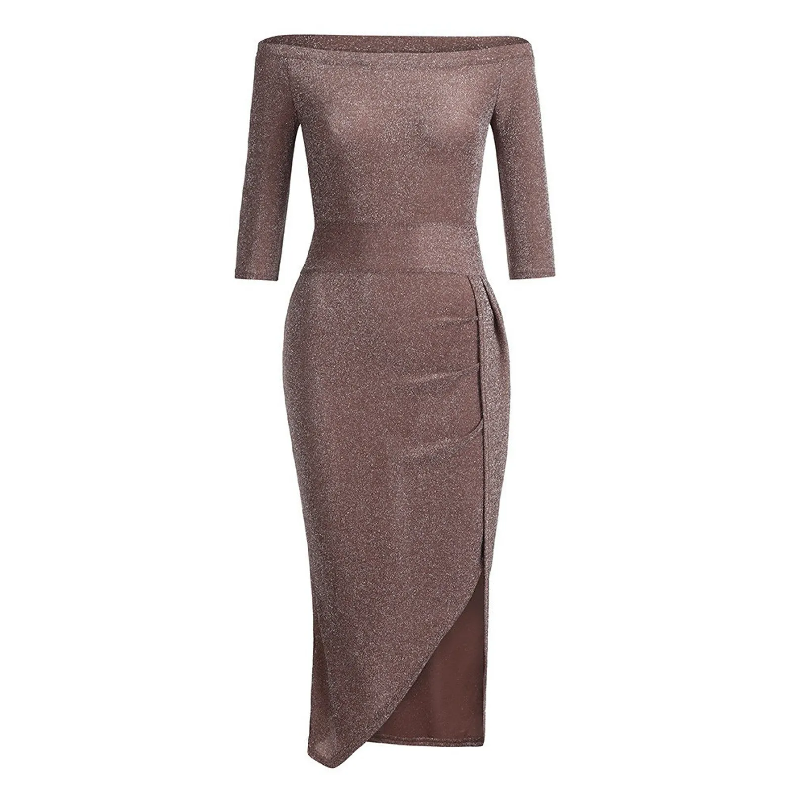 Women's Fashion Sexy Strapless High Slit Tight Dress Half Sleeve Dress