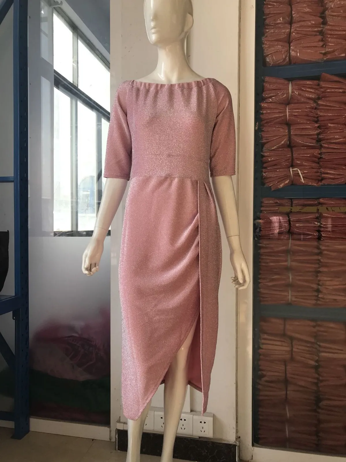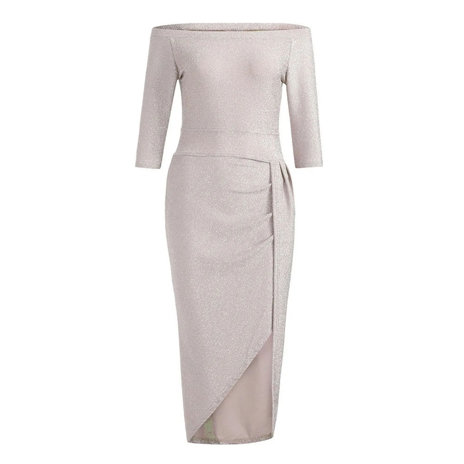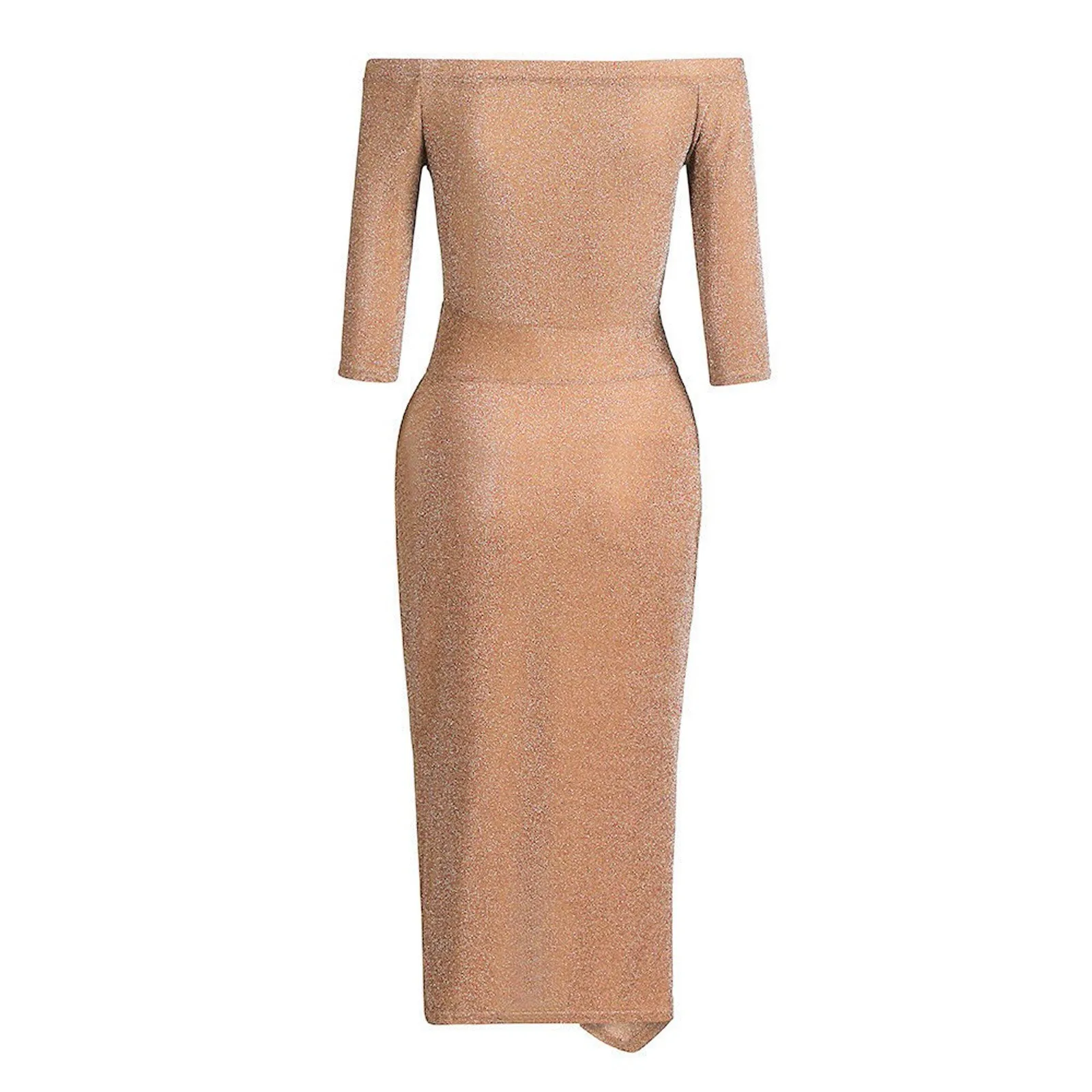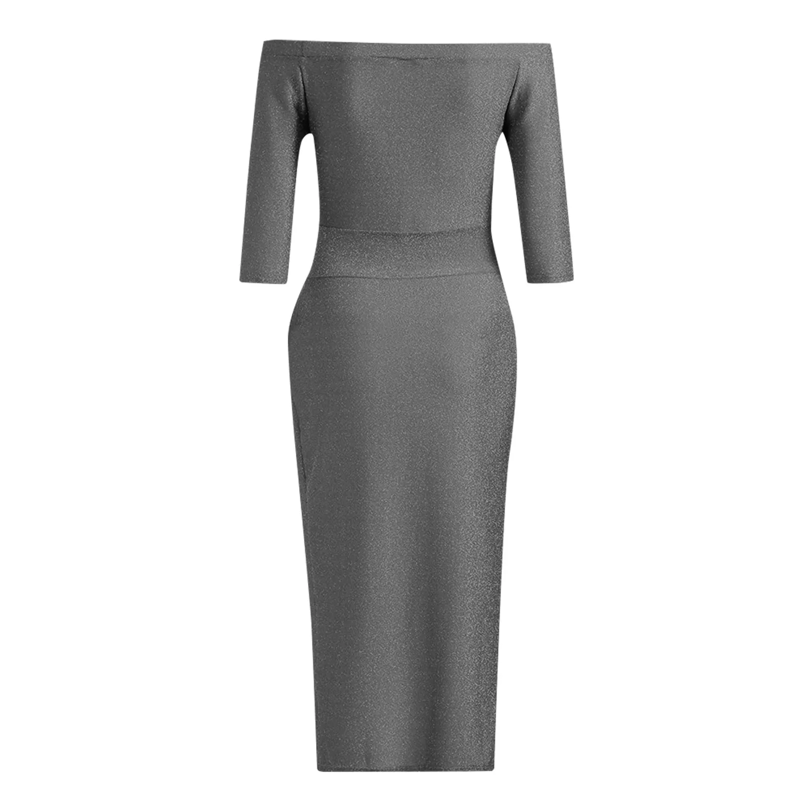 Women's Fashion Sexy Strapless High Slit Tight Dress Half Sleeve Dress