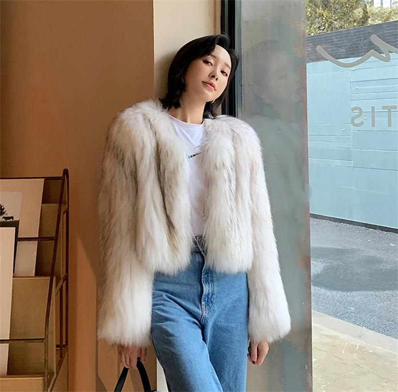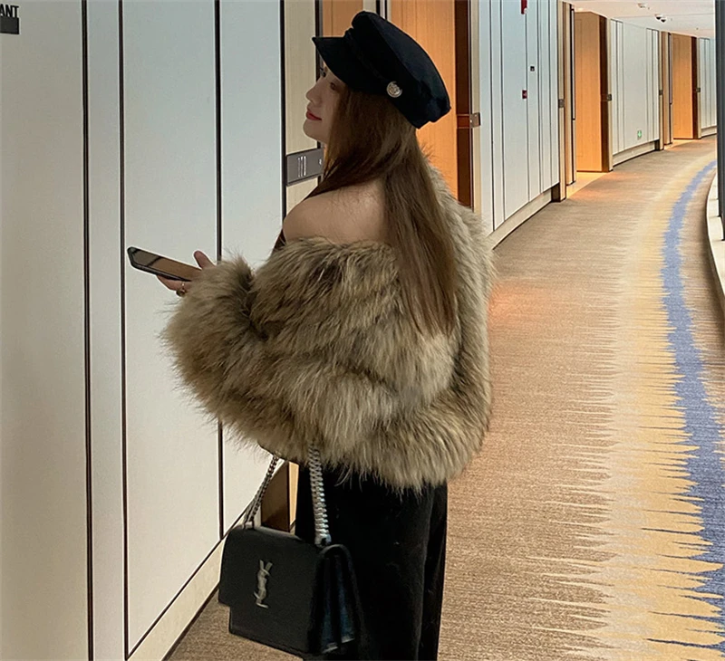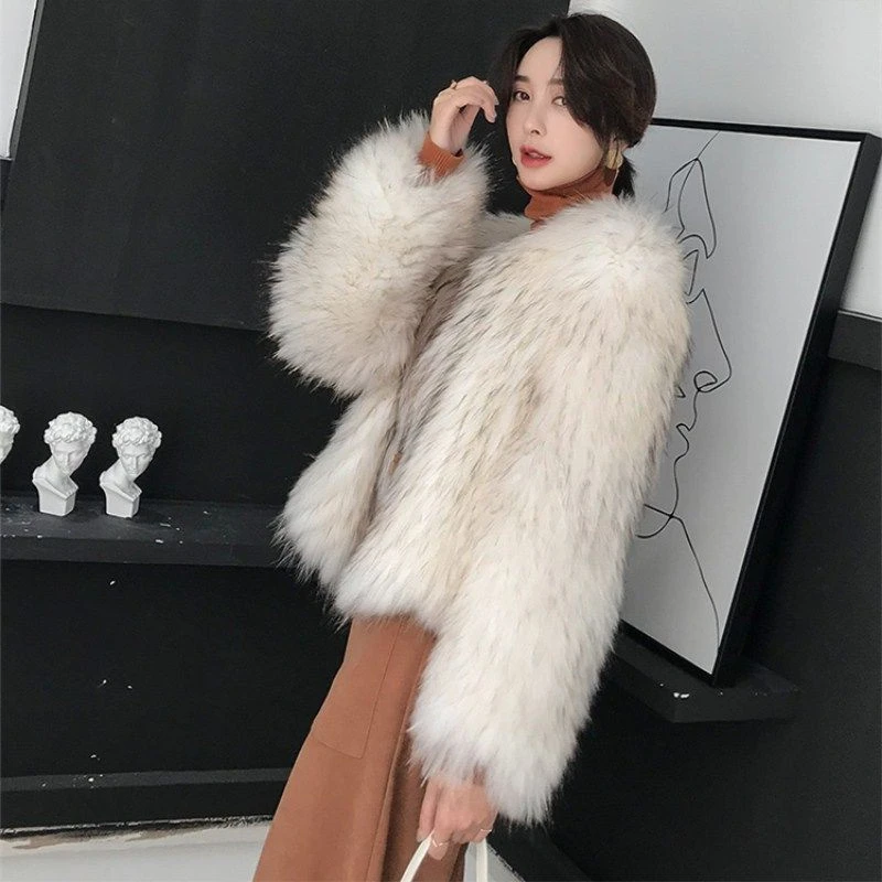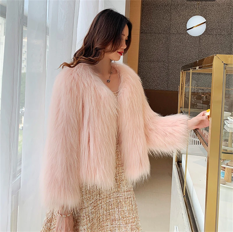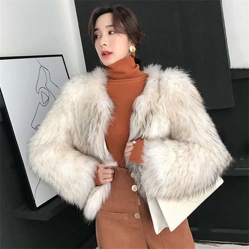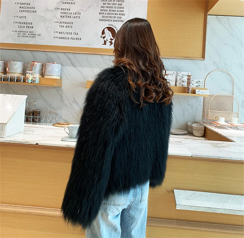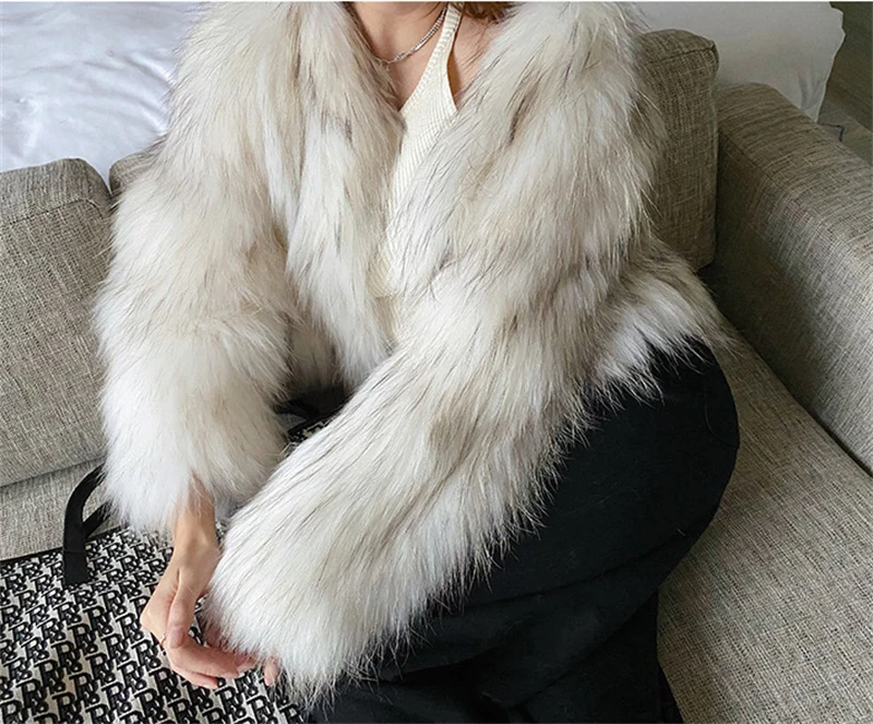 FANIECES Luxury Faux Fur Coats Women Winter Long Sleeve Furry Collarless Cardigan Fluffy Short Artificial Fur Outerweart шуба