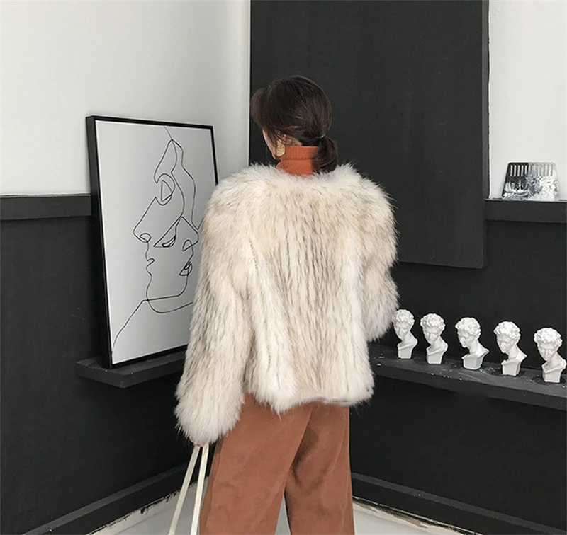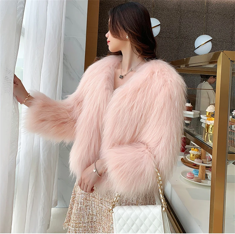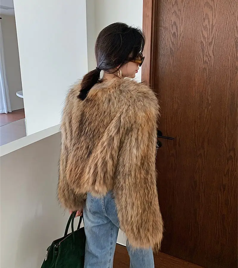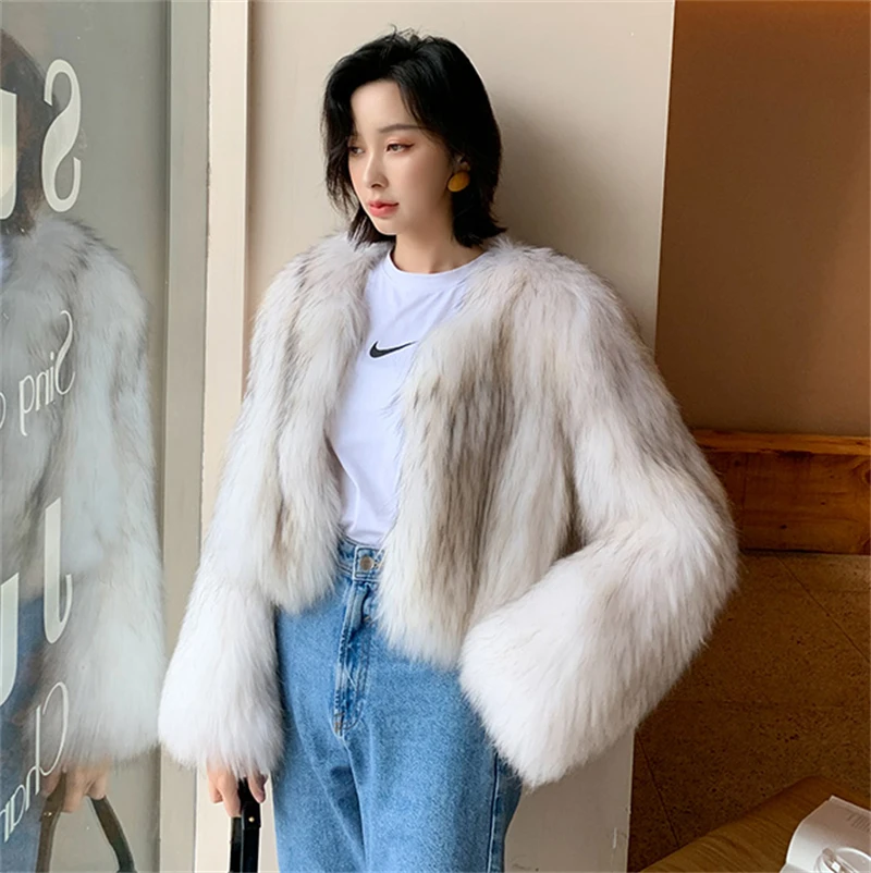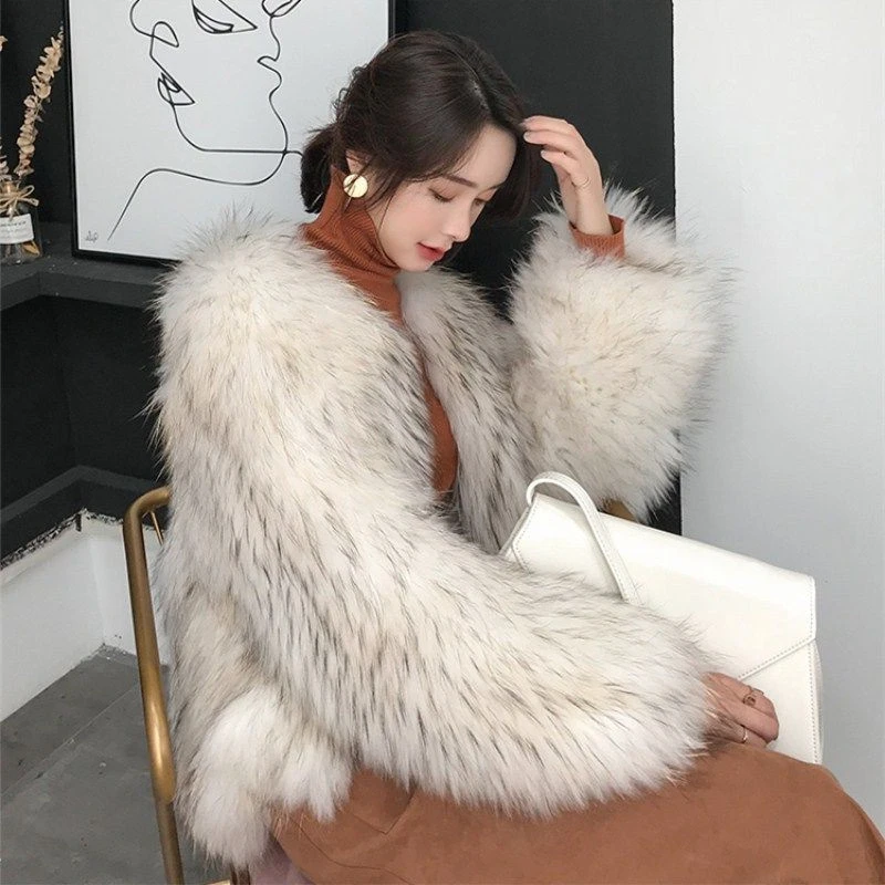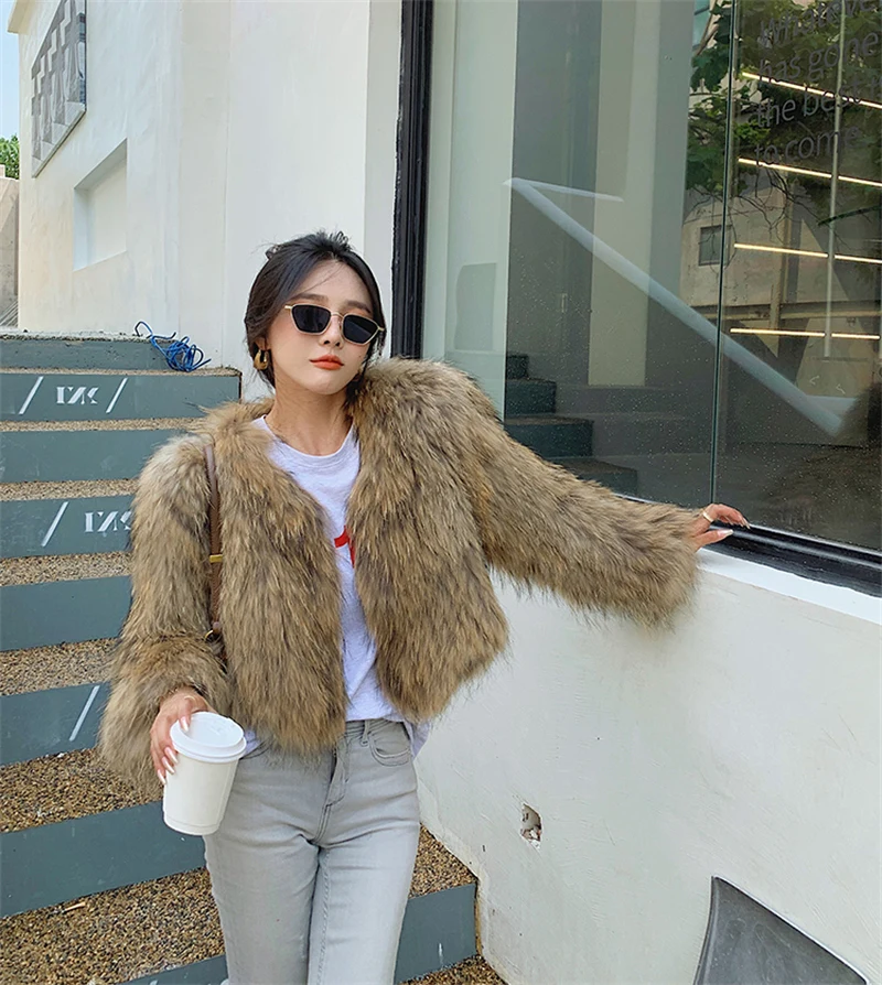 FANIECES Luxury Faux Fur Coats Women Winter Long Sleeve Furry Collarless Cardigan Fluffy Short Artificial Fur Outerweart шуба