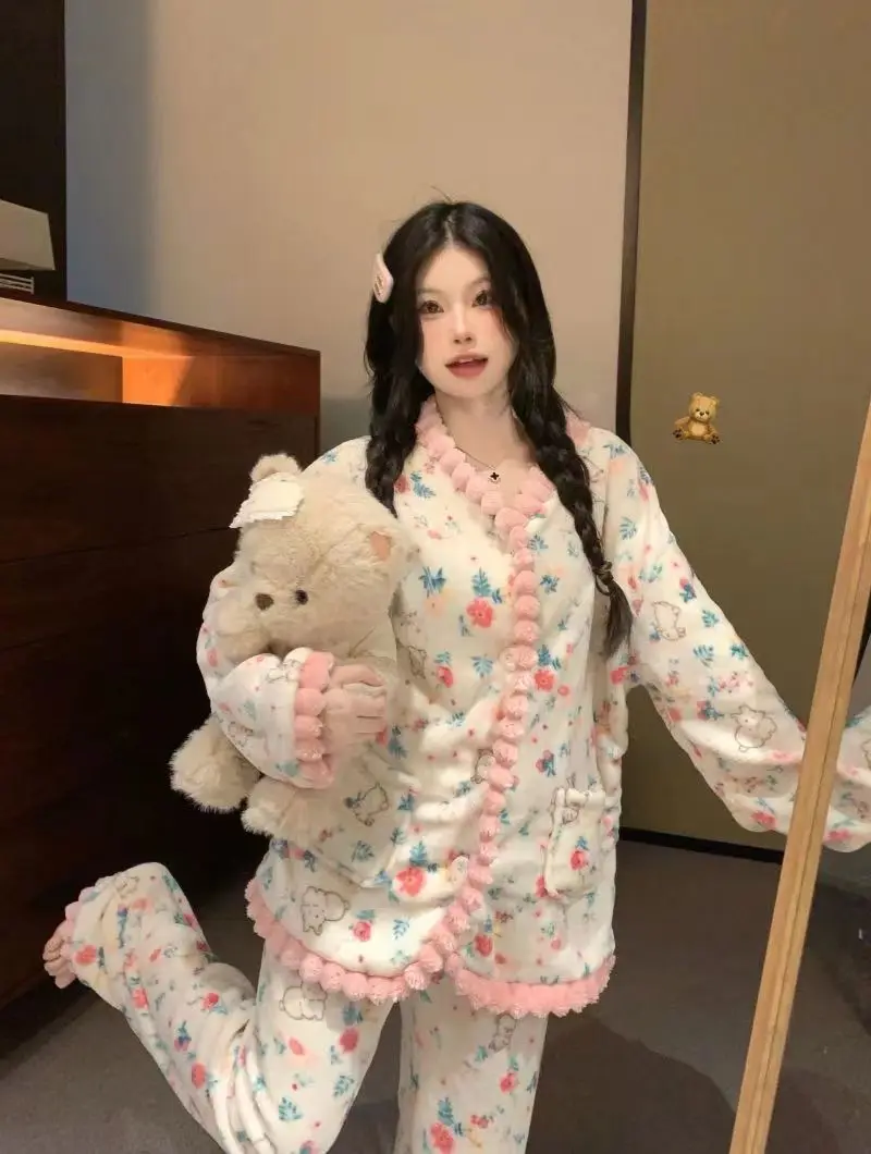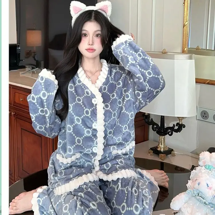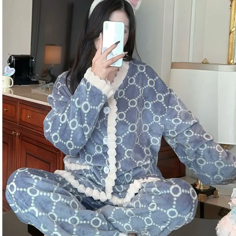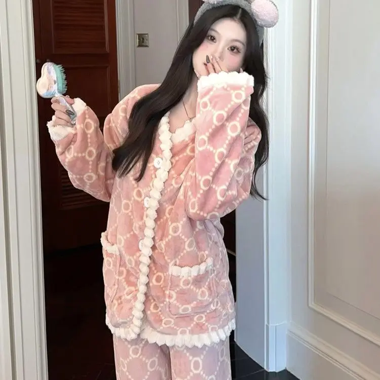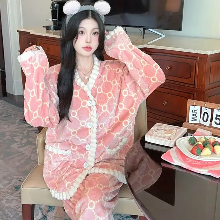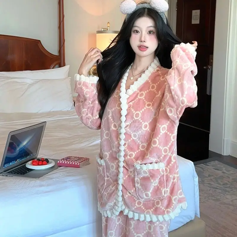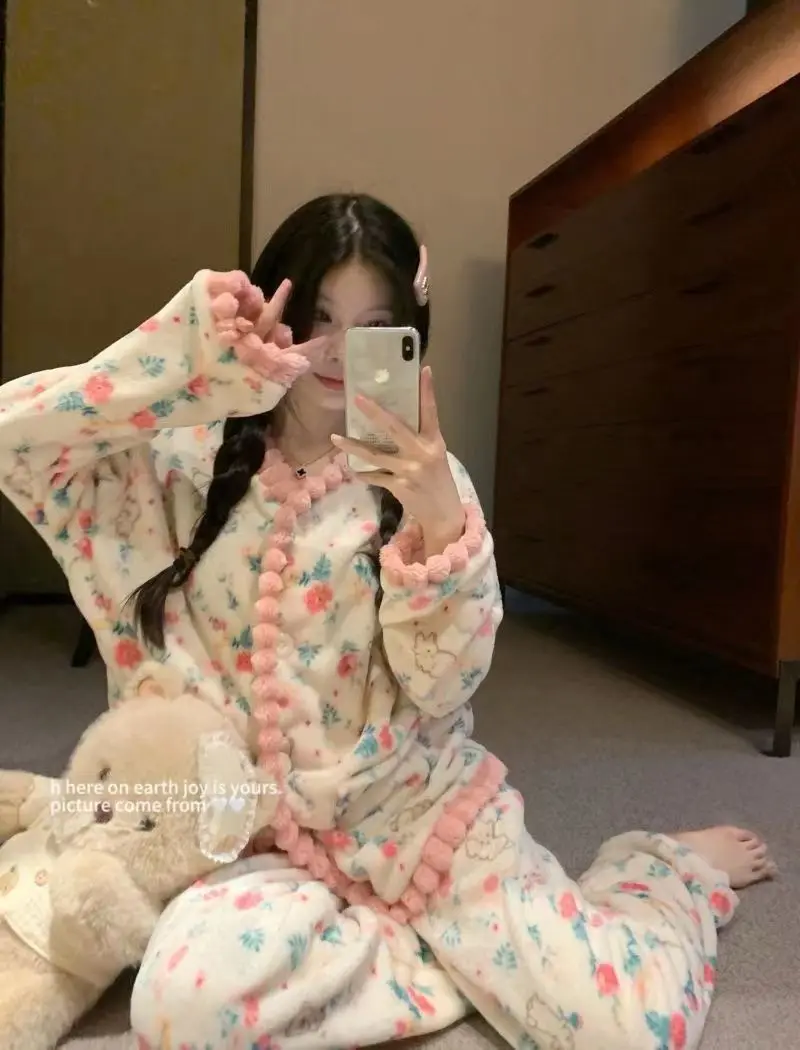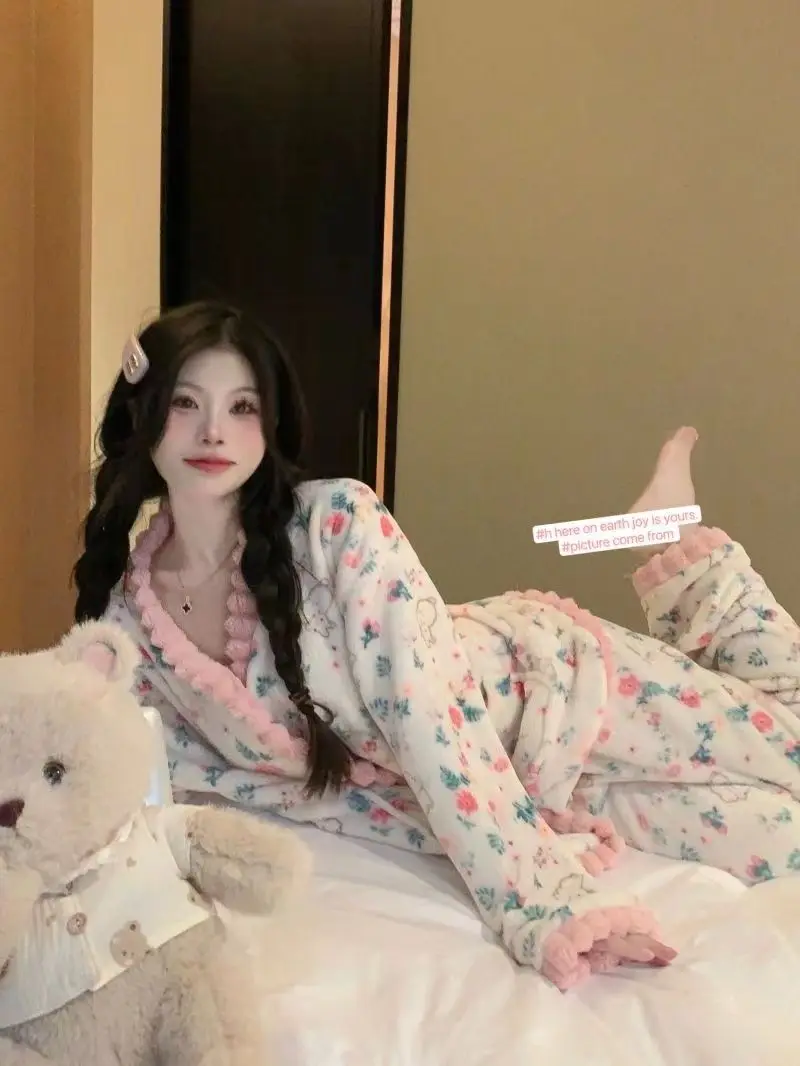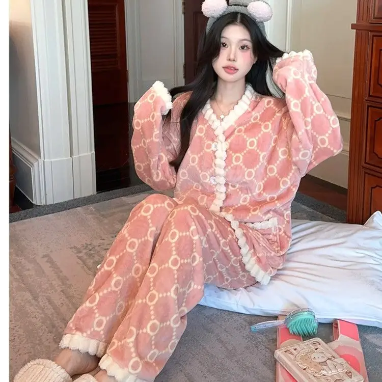 Fashion Homewear Sexy Pajama Set Women's Warm Suit Clothing Trend 2025 Korean Popular Clothes Fall Outfits Woman Sports Pants