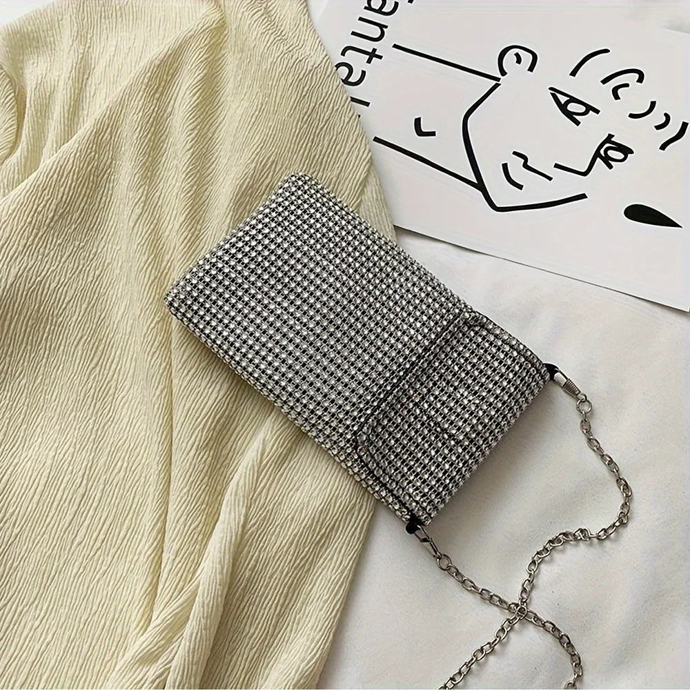 Glittering shoulder bag, crystal evening clutch, hand-held phone wallet